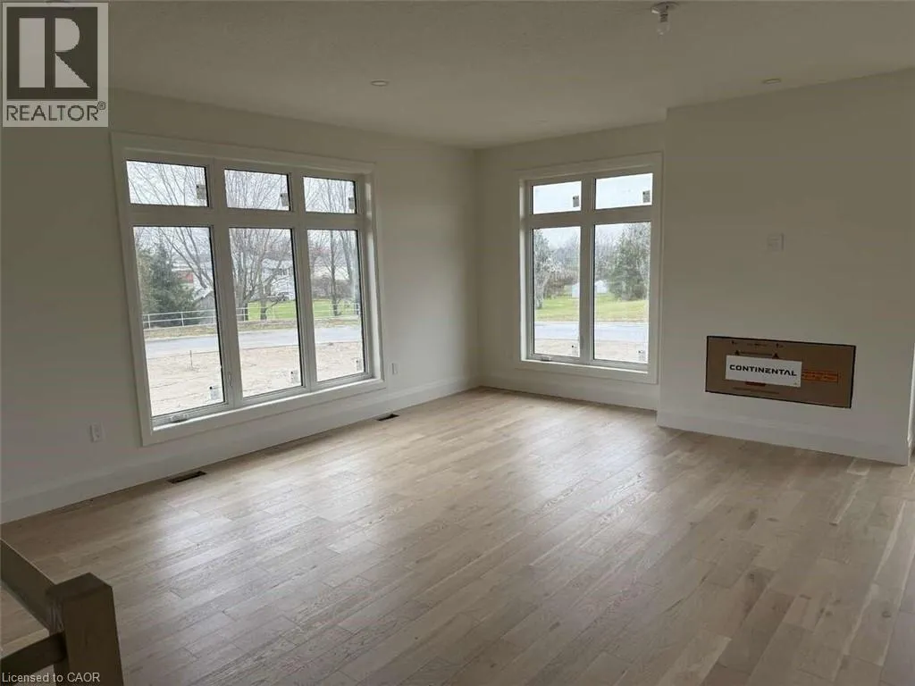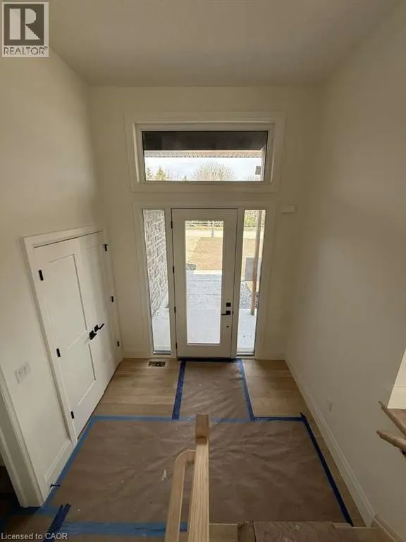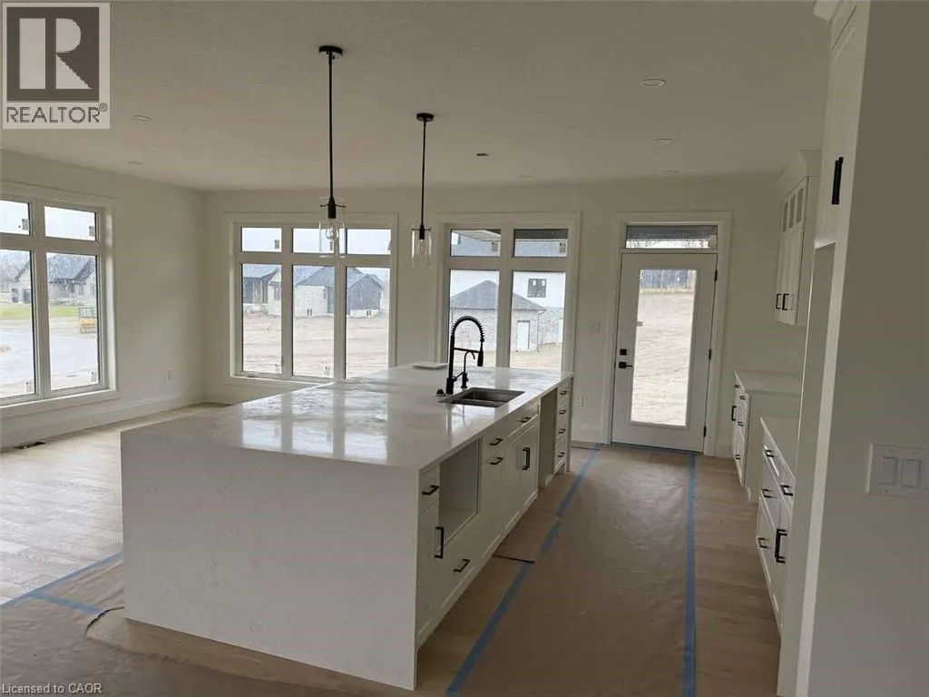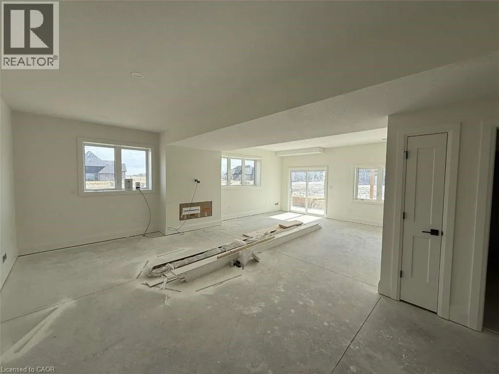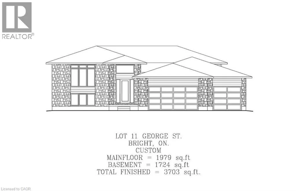 On George St, past Wilson st For more info on this property, please click the Brochure button. Located at 49 George St in Bright, ON. This stunning custom modern split bungalow offers 3703 square feet of finished living space. 1979 square feet are on the main floor and 1724 square feet are in the walkout raised basement. This home is located on a generous 0.8 acre lot and features a large 3 car garage and a host of luxurious amenities for modern living. The home welcomes you with a soaring 14ft high foyer and 9ft ceiling heights on the main floor. The open-concept layout connects a generous kitchen, a dinette, and a grand great room with large windows bringing in tons of natural light and a modern linear gas fireplace. The kitchen is a chefâs dream, featuring a large black island and modern custom white perimeter cabinets. The home offers 4 bedrooms and 3 bathrooms, including a luxurious primary suite. The primary bedroom boasts a stunning ensuite with a glass shower and an expansive 12-foot walk-in closet. Additional highlights include a mudroom, a second walk-in closet, and upgraded quartz countertops paired with sleek black Moen plumbing fixtures throughout. Step outside to enjoy the covered deck, perfect for outdoor gatherings or relaxing while overlooking the spacious lot. The finished walkout basement has over 10ft ceiling heights with a large den, 2 bedrooms and rec room with a modern fireplace and a separate side entrance. With its blend of luxury, functionality, and space, this property is ideal for families or anyone seeking a serene and stylish retreat in a desirable neighborhood. Property not yet assessed. Exterior photo with grass + stairway outside is a rendering example. (id:27476)