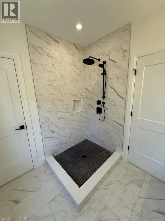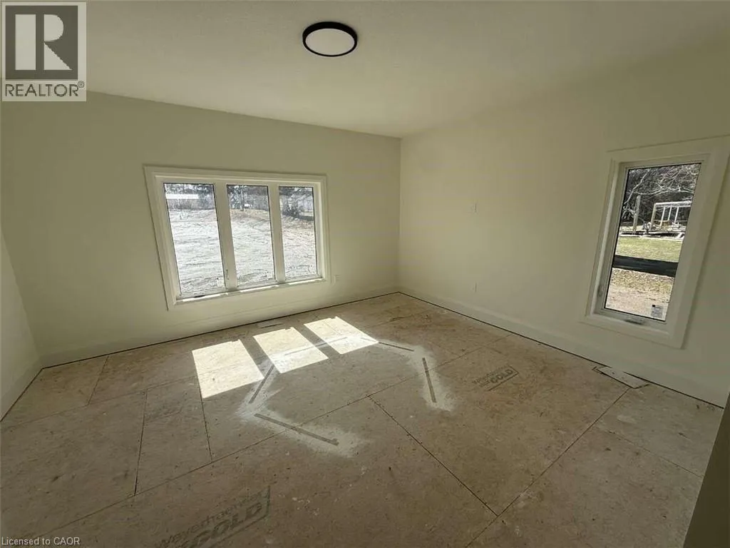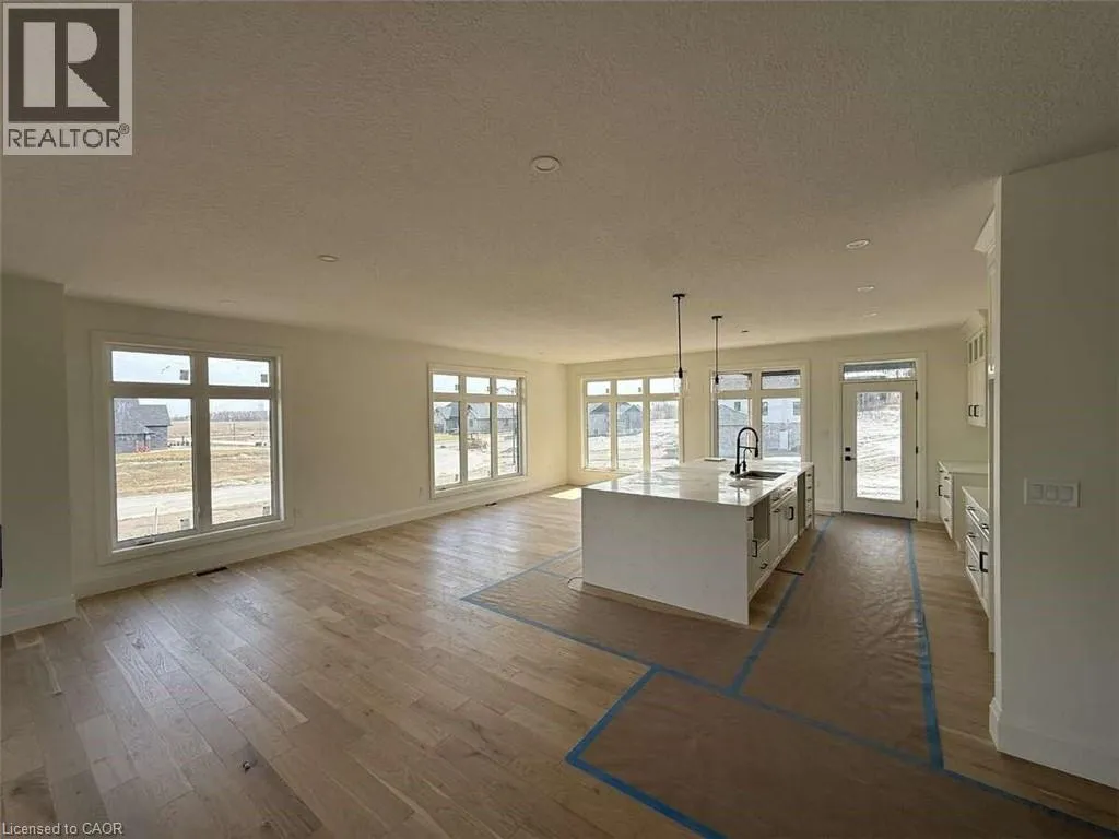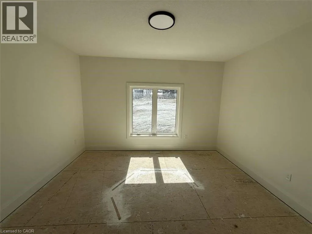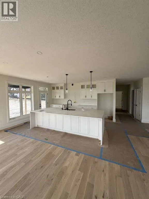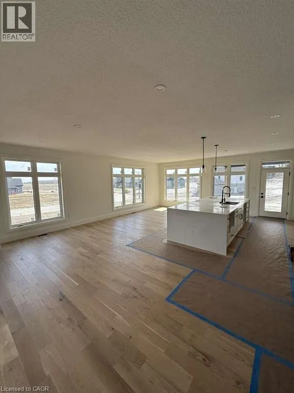 On George St, past Wilson st For more info on this property, please click the Brochure button. Located at 49 George St in Bright, ON. This stunning custom modern split bungalow offers 3703 square feet of finished living space. 1979 square feet are on the main floor and 1724 square feet are in the walkout raised basement. This home is located on a generous 0.8 acre lot and features a large 3 car garage and a host of luxurious amenities for modern living. The home welcomes you with a soaring 14ft high foyer and 9ft ceiling heights on the main floor. The open-concept layout connects a generous kitchen, a dinette, and a grand great room with large windows bringing in tons of natural light and a modern linear gas fireplace. The kitchen is a chefâs dream, featuring a large black island and modern custom white perimeter cabinets. The home offers 4 bedrooms and 3 bathrooms, including a luxurious primary suite. The primary bedroom boasts a stunning ensuite with a glass shower and an expansive 12-foot walk-in closet. Additional highlights include a mudroom, a second walk-in closet, and upgraded quartz countertops paired with sleek black Moen plumbing fixtures throughout. Step outside to enjoy the covered deck, perfect for outdoor gatherings or relaxing while overlooking the spacious lot. The finished walkout basement has over 10ft ceiling heights with a large den, 2 bedrooms and rec room with a modern fireplace and a separate side entrance. With its blend of luxury, functionality, and space, this property is ideal for families or anyone seeking a serene and stylish retreat in a desirable neighborhood. Property not yet assessed. Exterior photo with grass + stairway outside is a rendering example. (id:27476)