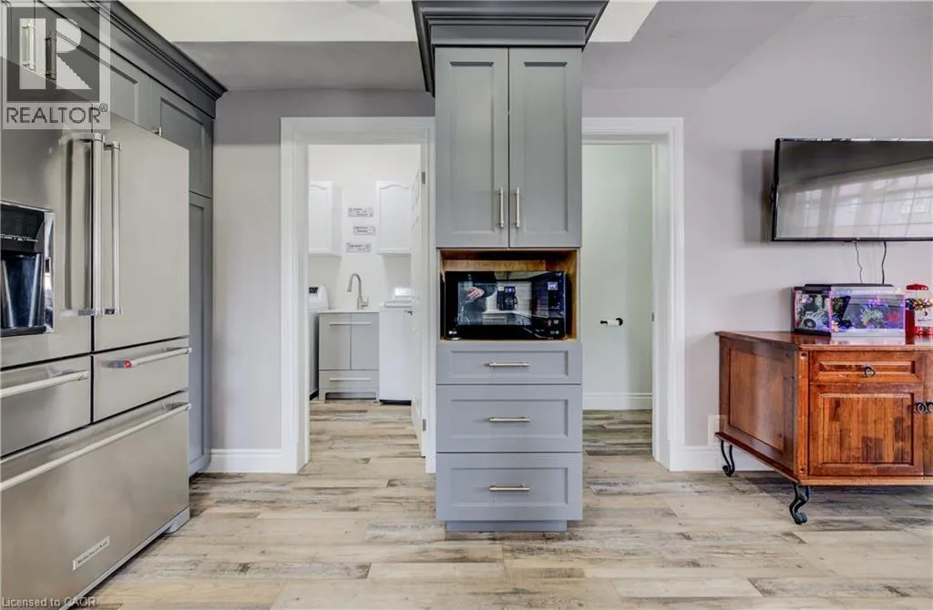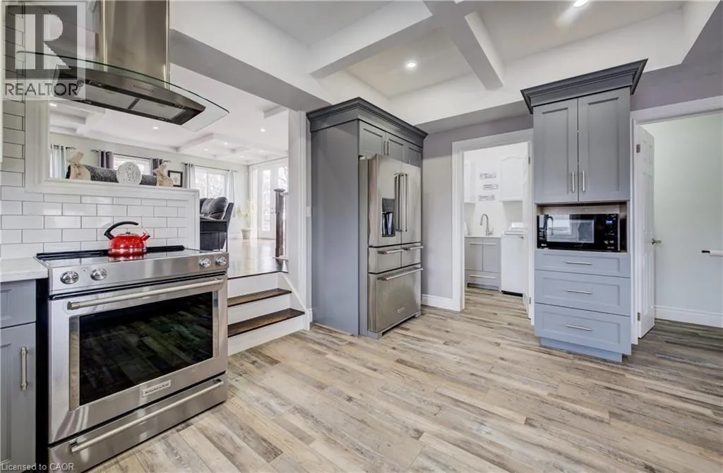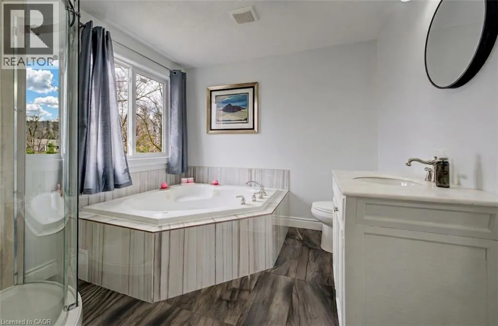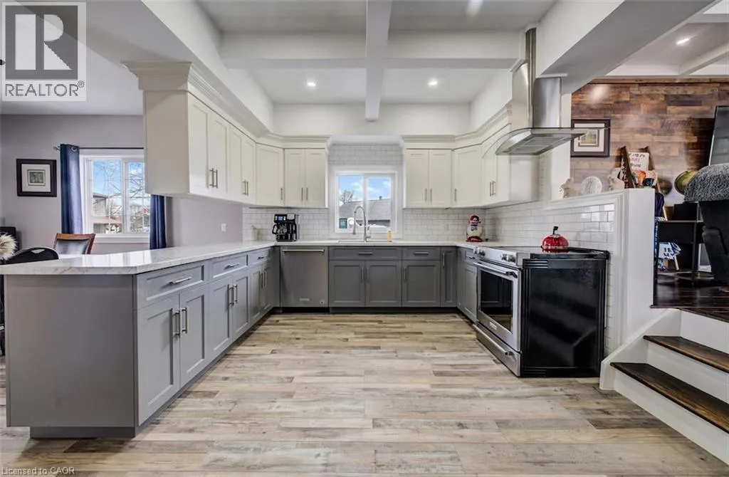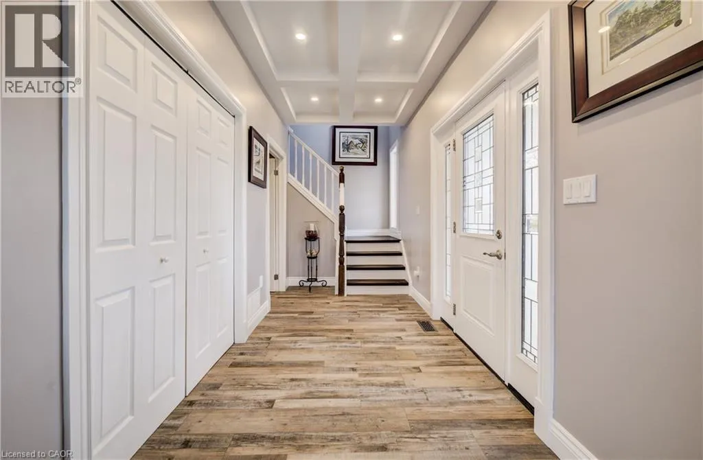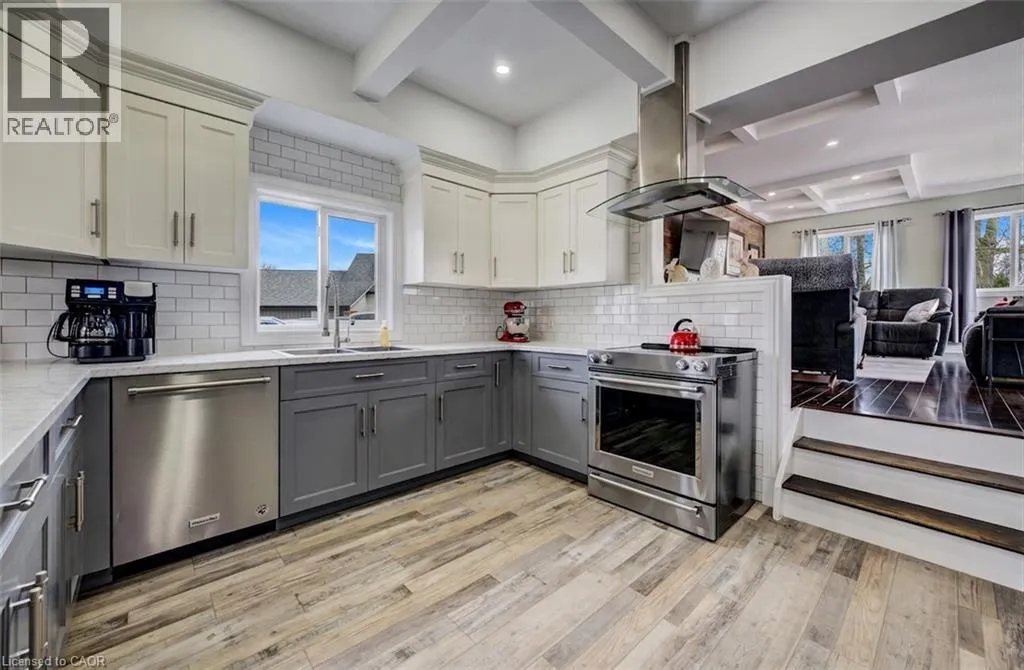 Welcome to this beautifully maintained home, completely rebuilt in 2015 on .25 acres and thoughtfully upgraded throughout the past few years. Offering a perfect blend of modern finishes, functional design, and small-town charm, this home is completely move-in ready. The main floor features a bright, open-concept layout designed for everyday living and entertaining. Updated in 2024, the kitchen showcases modern finishes and flows seamlessly into the living and dining areas, complemented by new flooring (2024), fresh paint (2024/2025), and updated lighting. Enjoy the flexibility of a dedicated main floor office - an ideal set-up for today's work-from-home lifestyle. A convenient 2-piece bathroom and main floor laundry complete this level. There are three well-appointed bedrooms, including a spacious primary retreat with a walk-in closet and private 4-piece ensuite. The renovated basement (2020/2021) currently used as a games room adds valuable additional living space, finished with durable LVT flooring and offering flexibility for a rec room, guest area or additional bedroom. Additional basement space offers tons of storage space. Car enthusiasts and hobbyists will appreciate the oversized 2.5-car attached garage (20.2 x 33.4), newly insulated in 2025, providing both functionality and year-round comfort. Step outside to your private backyard oasis, set on a huge landscaped lot. Enjoy summer days with the above-ground pool (2021), relax in the hot tub, or entertain on the newer deck (2022). The yard also features a fire pit (2022), play structure, and storage shed. Extensive landscaping (2020â2024) enhances this home's curb appeal. Additional updates include a water softener (2024), central vacuum (2020), outdoor sump pump (2023), and serviced A/C (2025), offering peace of mind for years to come. Two garage parking spaces, two driveway and six at side. Located in a quiet, welcoming small town, this home offers the perfect balance of space, upgrades, and lifestyle. (id:27476)