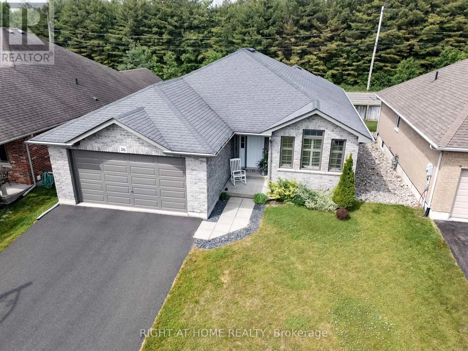 Cross Streets: Ontario St/Cooper Crt. ** Directions: Ontario St-Cooper Crt-Ward Dr. Welcome to 26 Ward Drive in beautiful Brighton, Ontario. This 10-year-old all-brick bungalow offers a bright, open-concept layout. The kitchen features abundant cabinetry, stainless steel appliances, and a large breakfast bar. Cathedral ceilings and pot lights enhance the spacious living room, while the dining area opens through French doors to a covered deck overlooking a fenced backyard with no houses behind and a natural gas BBQ hookup. The primary bedroom includes a 4-piece ensuite and walk-in closet. A second bedroom, 4-piece main bath, and an office/sitting room or potential third bedroom complete the main floor. The full basement features insulated and studded walls, ready for your finishing touch. Located in a quiet, friendly neighbourhood steps to the lake and near Presquile Provincial Park with its walking trails and bike paths is an ideal place to relax, unwind and call home. **This home is not part of the Brighton By The Bay Community so Is not bound by its restrictions, by-laws, rules and regulations or monthly fees** (id:27476)