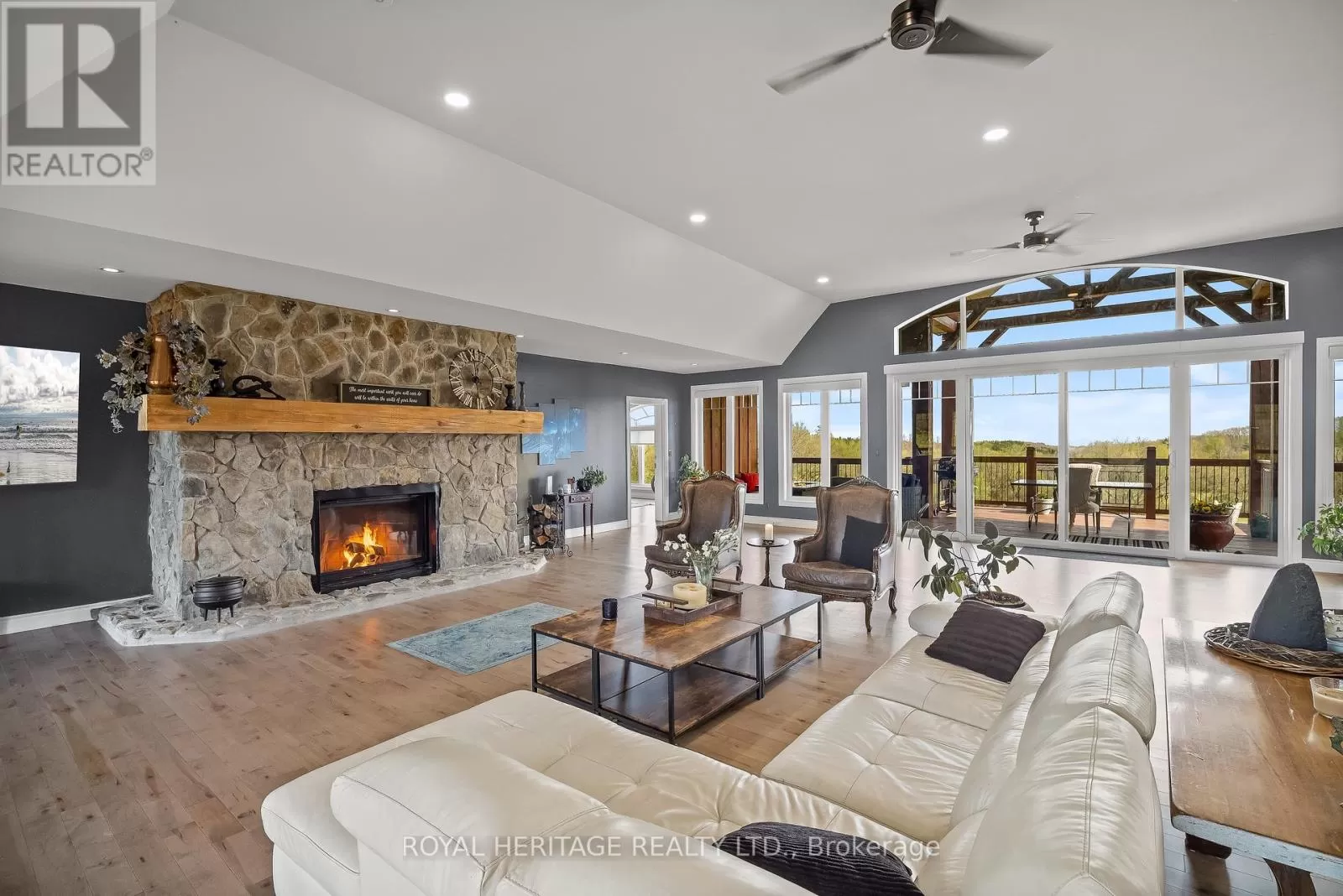Cross Streets: county road 26. ** Directions: County road 30 to county road 26 to Long Reach Rd. Welcome to 150 Long Reach Road, a rare opportunity to own a newly built (2024) country residence designed with both modern comfort and true off-grid resilience. Nestled on 31 acres of unspoiled land (21 acres of mature forest and 10 acres of open fields) this estate offers unmatched privacy, breathtaking hilltop lake views, and a lifestyle surrounded by nature and wildlife. This sprawling 5-bedroom, 5-bath home showcases extraordinary attention to detail. Inside you'll find four full kitchens plus a kitchenette, each finished with elegant stone counters, including African Quartz in the main kitchen. Smart-home Lutron lighting and blinds, new trim throughout, and a heated three-car garage elevate daily living. Multiple living spaces allow for multi-generational families, entertaining, or income potential. Engineered for sustainability and peace of mind, the home is powered by a 400-amp underground hydro service with multiple distribution points, a Generac backup system, propane, wood heat, and a 3,000-watt wind turbine. Two fresh-water wells with holding tanks and a gravity-fed trickle system ensure a continuous year-round supply from a pristine aquifer. A4 insulation keeps the home efficient and comfortable in all seasons. Step outside to nearly 3,000 sq. ft. of covered deck and concrete patio space, perfect for gatherings framed by sweeping lake views. Trails lead directly from your backyard into forested acres, while the newly installed RAP road guarantees reliable year-round access. Security monitoring adds another layer of comfort, making this estate as practical as it isbeautiful. Whether you're drawn to a private retreat, a multi-family residence, or a self-sufficient homestead, this home embodies elevated living, true resilience, and the serenity of nature at your doorstep. Conveniently located near Highway 401, downtown Brighton, and Presqu'ile ProvincialPark. (id:27476)