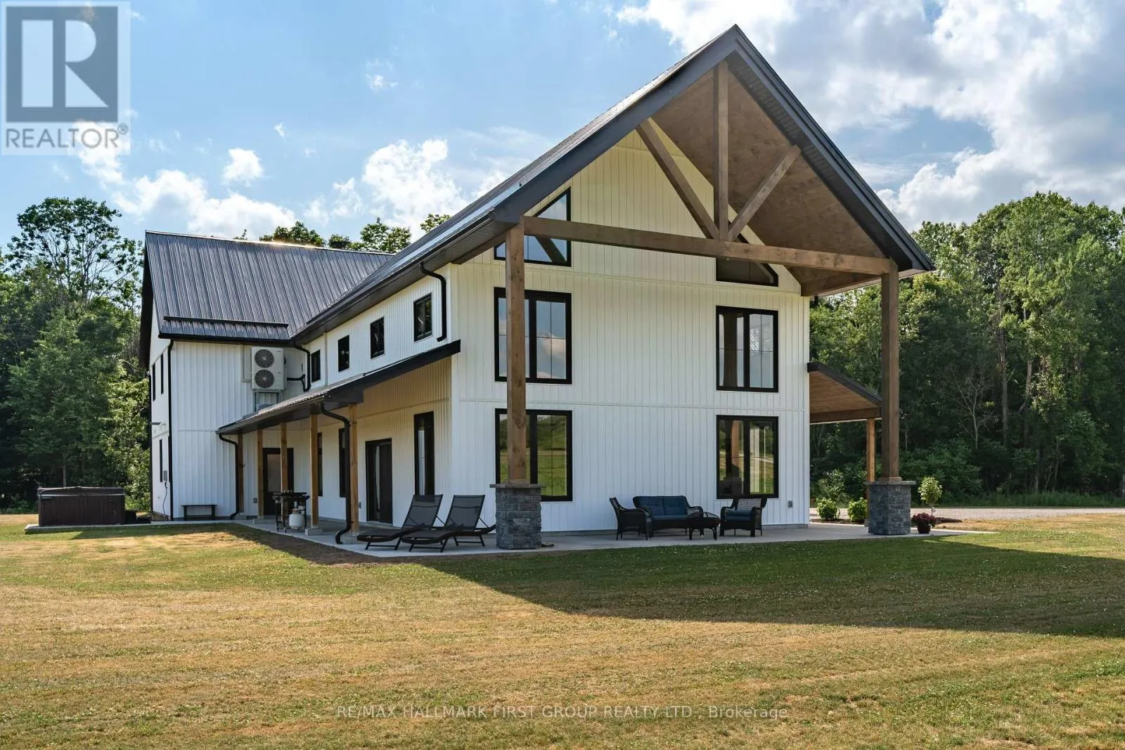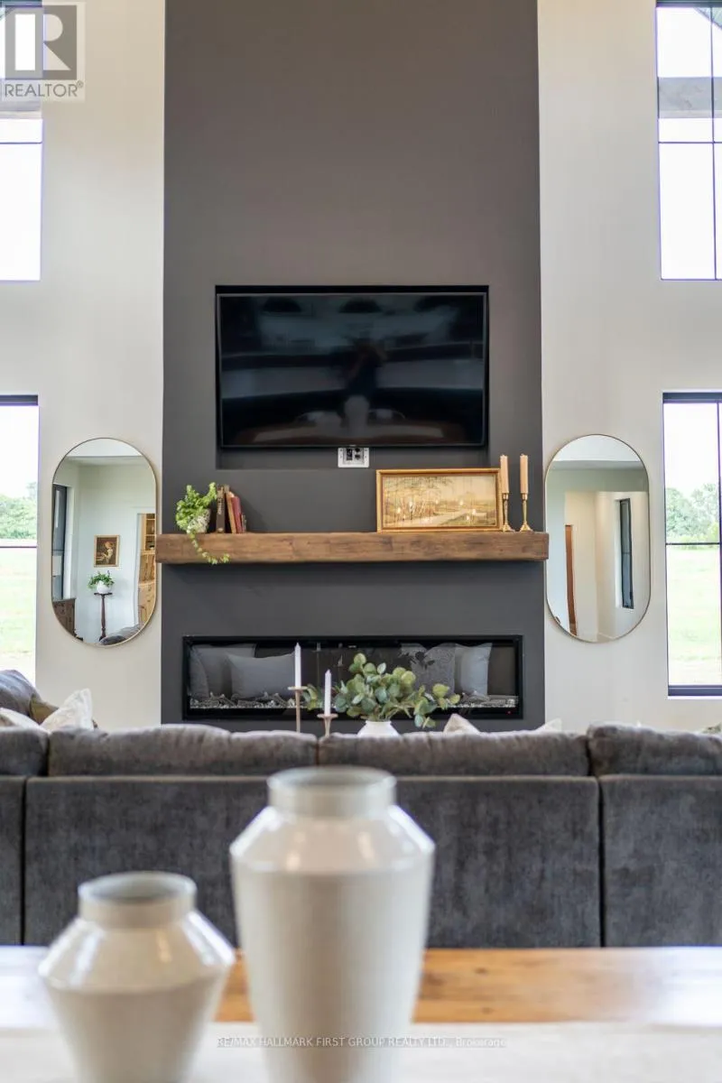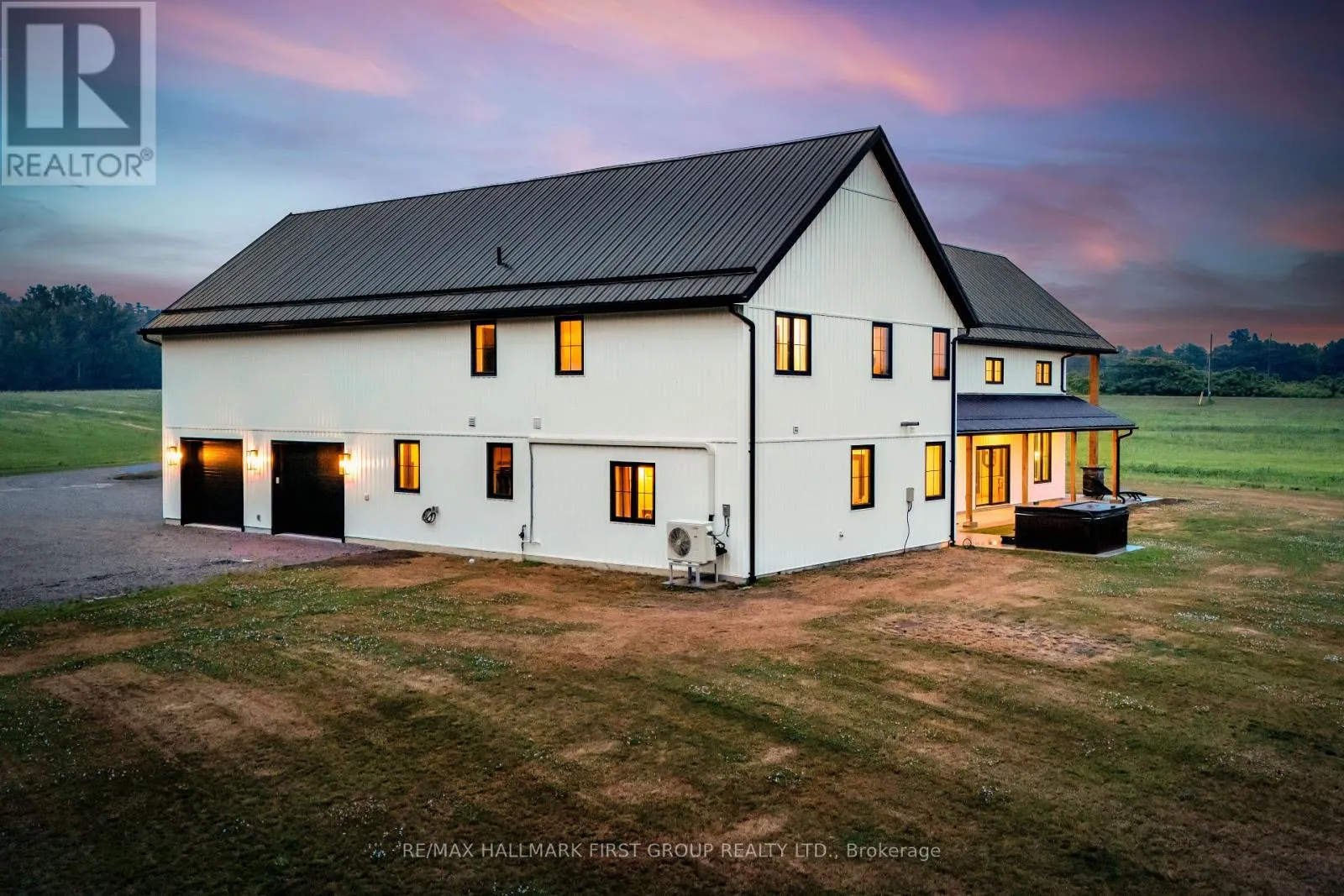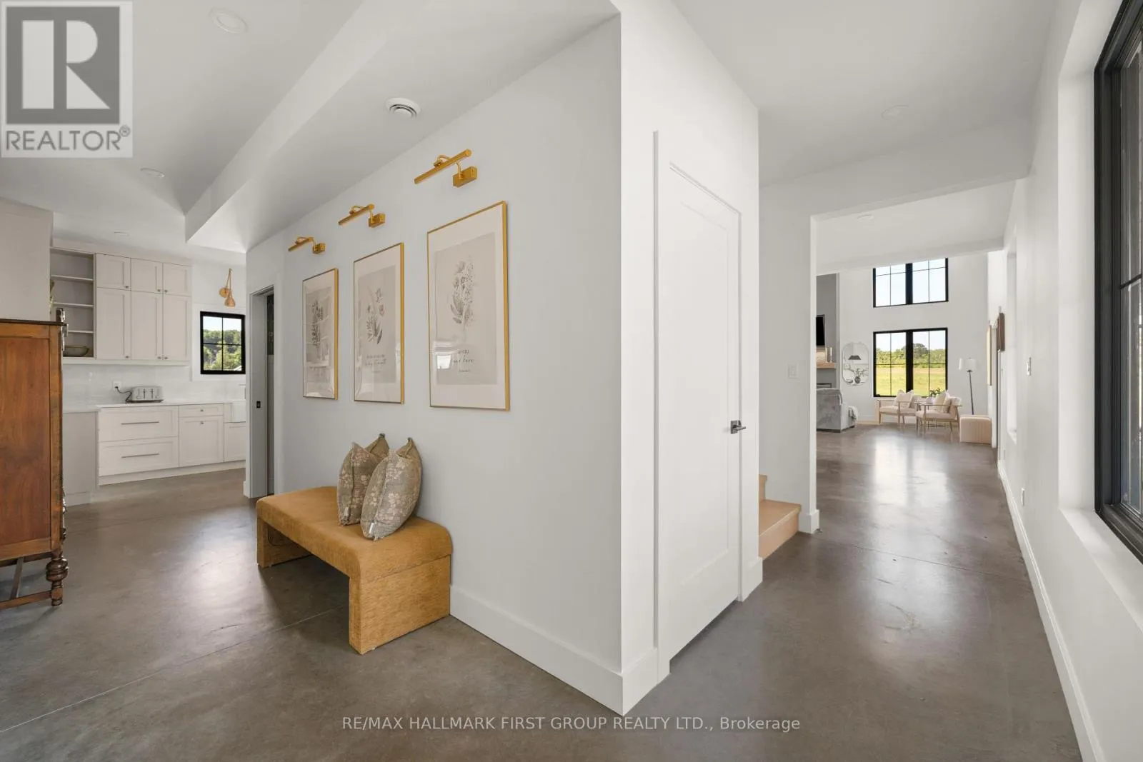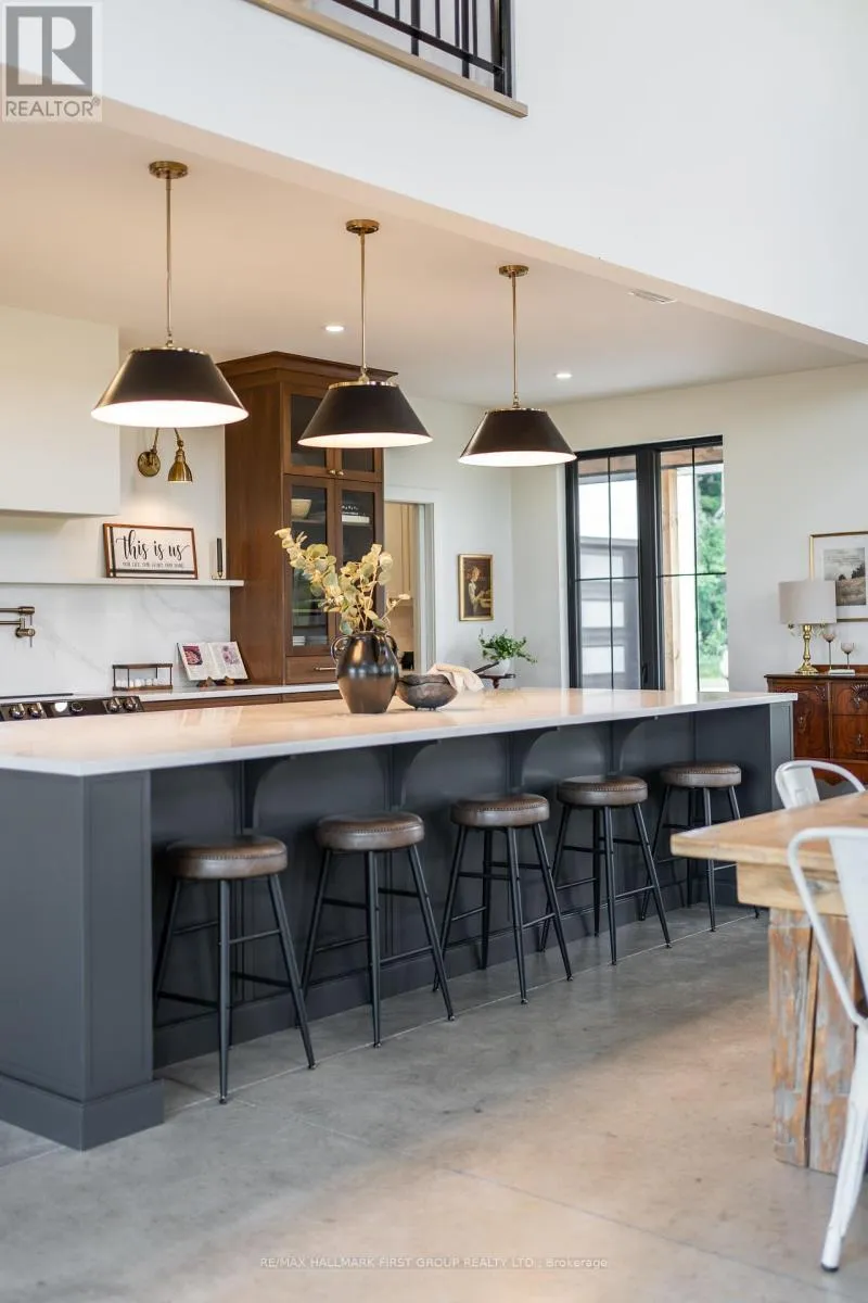 Telephone Road & Scriver Road A rare opportunity where timeless elegance meets luxurious country living on 63.16 acres! Whether you're searching for a hobby-farm, hay farm or a chance to unwind in luxury, this 2023 custom-built, architectural masterpiece offers over 5,300 sqft of magazine worthy living space. In 5 beds, 4 baths and upper level, in-law suite potential you will appreciate the bold design coupled with modern comfort. Soaring 26ft ceilings & beam detail in the living room welcome you to the open concept living space where heated, polished concrete floors run throughout. The custom kitchen overlooks both the dining area and living room, offers stunning views of the landscape and features quartz counters & back splash, premium pot drawers, glass cabinetry, pot filler, full appliance package & 14ft centre island. Tucked behind is the secondary prep-kitchen which dreams are made of! Catering to a large family, you will appreciate the expansive laundry room, mud room w/ inside entry to the 2+ car garage w/ drive through door, heated flooring & hot/cold water service, as well as the spacious primary suite complete with a walkout to the stamped concrete, covered porch, a 5pc. ensuite which includes a soaker tub & glass walk-in shower as well as a walk-in closet featuring natural light. On the upper level, a massive bonus room offers versatile space for a theatre, home gym, private retreat, or in-law suite (2nd stairs can be added & septic is rated for it) in addition to the 3 bedrooms and 2 full bathrooms on this level! As an added bonus, the 7-stall horse barn is perfect for equestrian lovers or hobby farmers. Whether you're enjoying panoramic views and sunsets in peaceful solitude or hosting guests in open, light-filled spaces, this is truly one-of-a-kind!! Located just minutes from golf courses, 401 access, and essential amenities, it's more than a home, it's a lifestyle unlike any other. Extras: hydrounic heating system, constant pressure well pump & electrical r/i for generator. (id:27476)