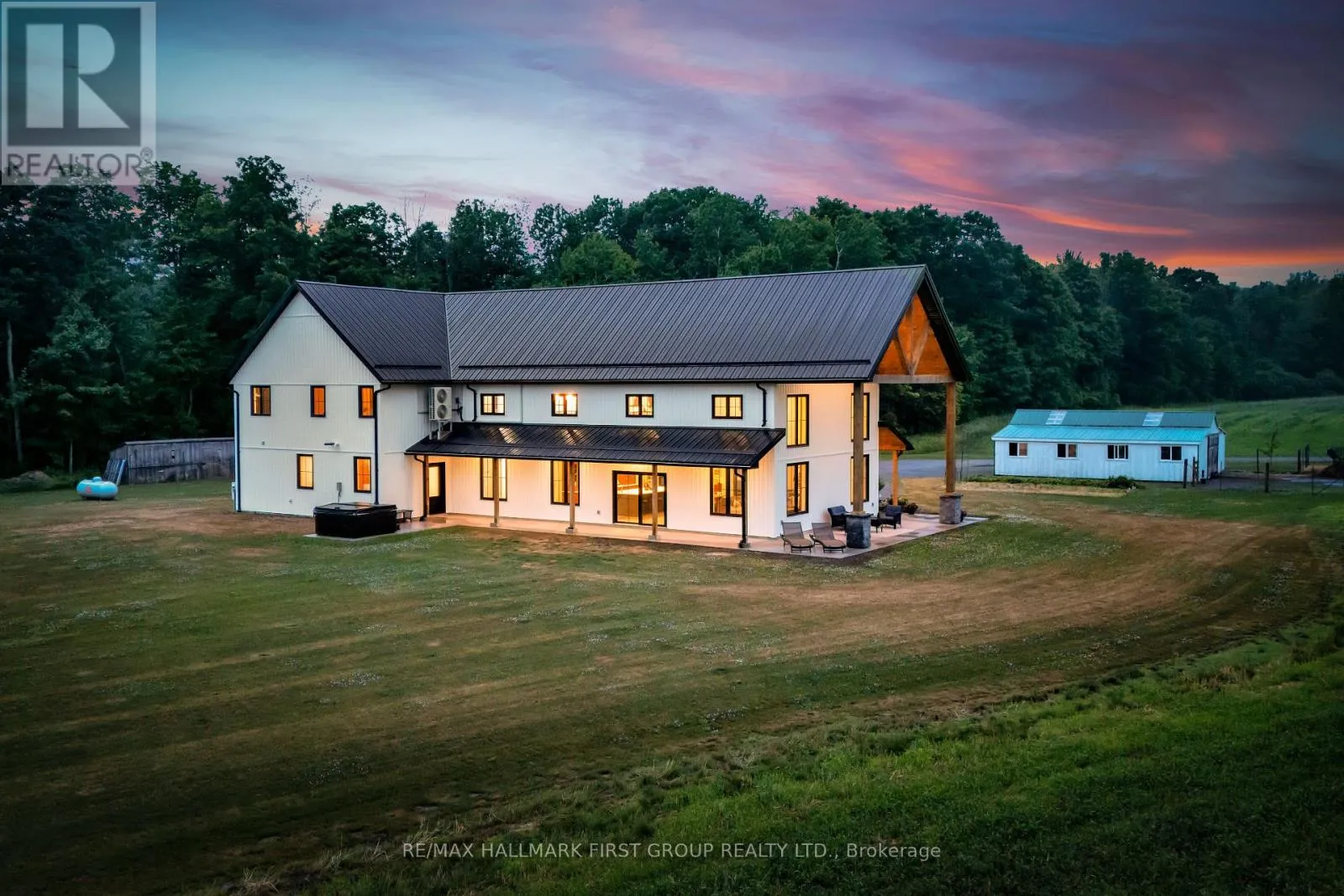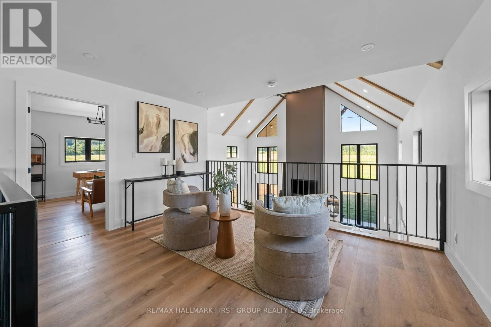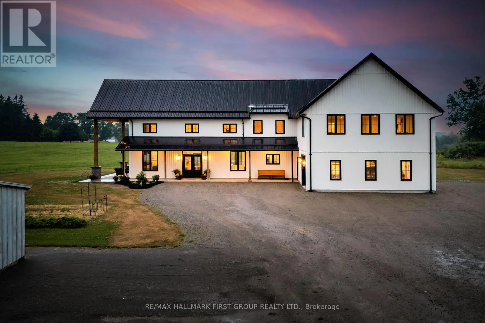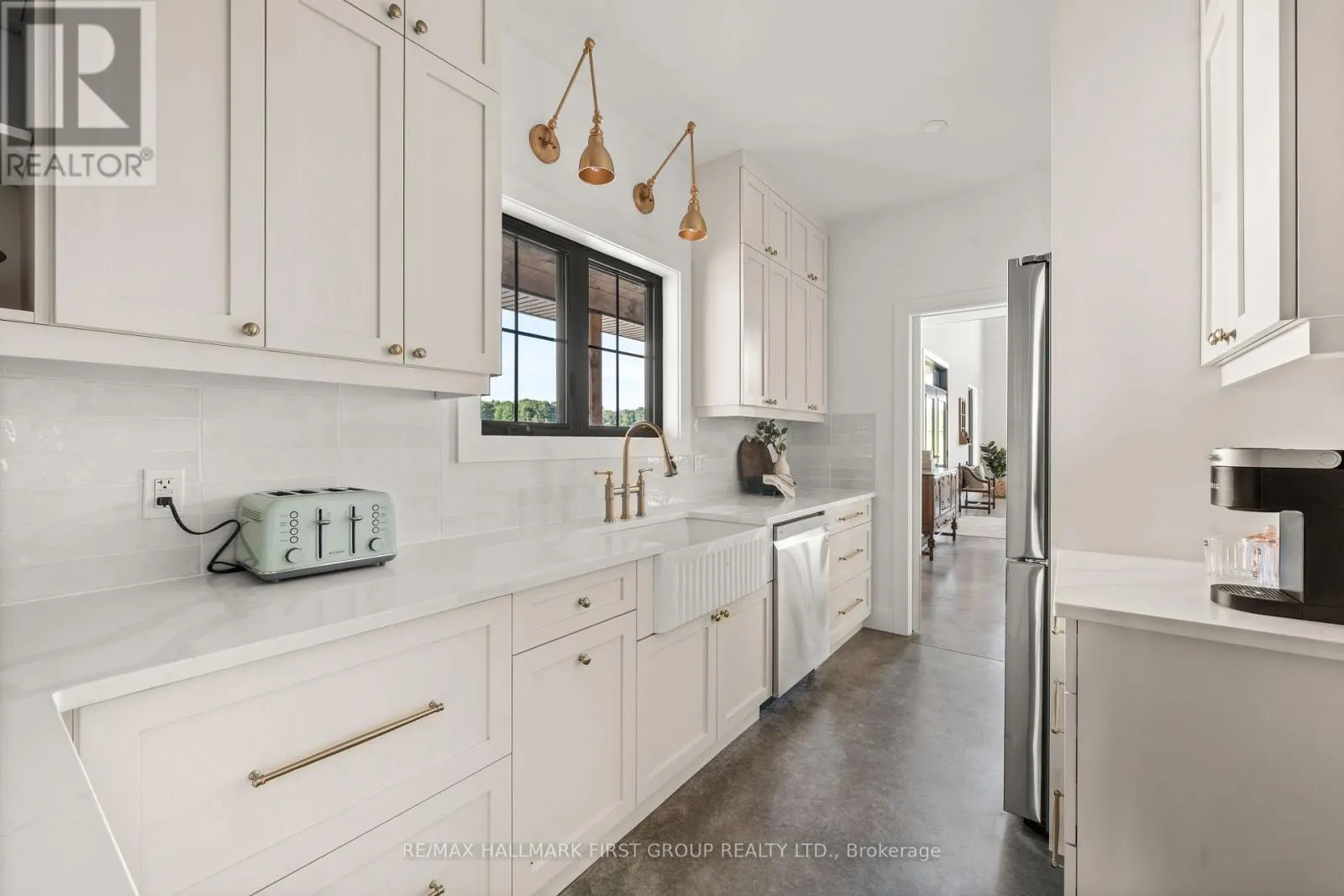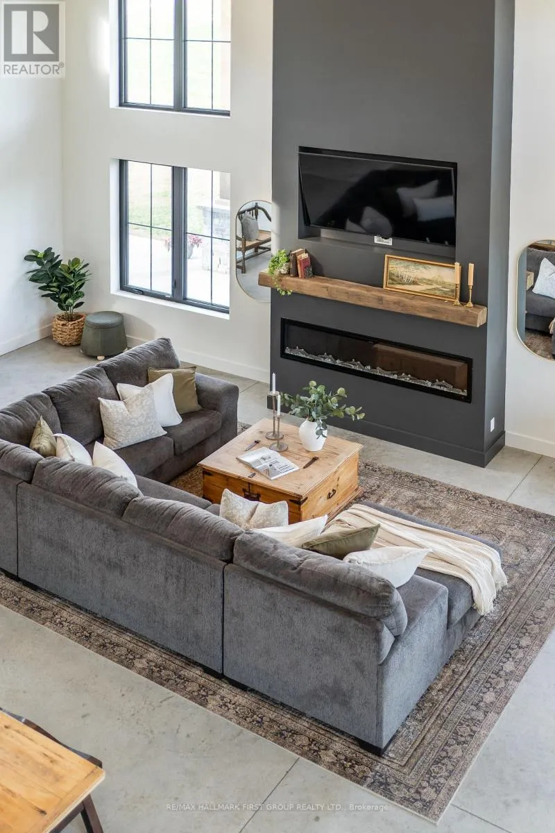 Telephone Road & Scriver Road A rare opportunity where timeless elegance meets luxurious country living on 63.16 acres! Whether you're searching for a hobby-farm, hay farm or a chance to unwind in luxury, this 2023 custom-built, architectural masterpiece offers over 5,300 sqft of magazine worthy living space. In 5 beds, 4 baths and upper level, in-law suite potential you will appreciate the bold design coupled with modern comfort. Soaring 26ft ceilings & beam detail in the living room welcome you to the open concept living space where heated, polished concrete floors run throughout. The custom kitchen overlooks both the dining area and living room, offers stunning views of the landscape and features quartz counters & back splash, premium pot drawers, glass cabinetry, pot filler, full appliance package & 14ft centre island. Tucked behind is the secondary prep-kitchen which dreams are made of! Catering to a large family, you will appreciate the expansive laundry room, mud room w/ inside entry to the 2+ car garage w/ drive through door, heated flooring & hot/cold water service, as well as the spacious primary suite complete with a walkout to the stamped concrete, covered porch, a 5pc. ensuite which includes a soaker tub & glass walk-in shower as well as a walk-in closet featuring natural light. On the upper level, a massive bonus room offers versatile space for a theatre, home gym, private retreat, or in-law suite (2nd stairs can be added & septic is rated for it) in addition to the 3 bedrooms and 2 full bathrooms on this level! As an added bonus, the 7-stall horse barn is perfect for equestrian lovers or hobby farmers. Whether you're enjoying panoramic views and sunsets in peaceful solitude or hosting guests in open, light-filled spaces, this is truly one-of-a-kind!! Located just minutes from golf courses, 401 access, and essential amenities, it's more than a home, it's a lifestyle unlike any other. Extras: hydrounic heating system, constant pressure well pump & electrical r/i for generator. (id:27476)