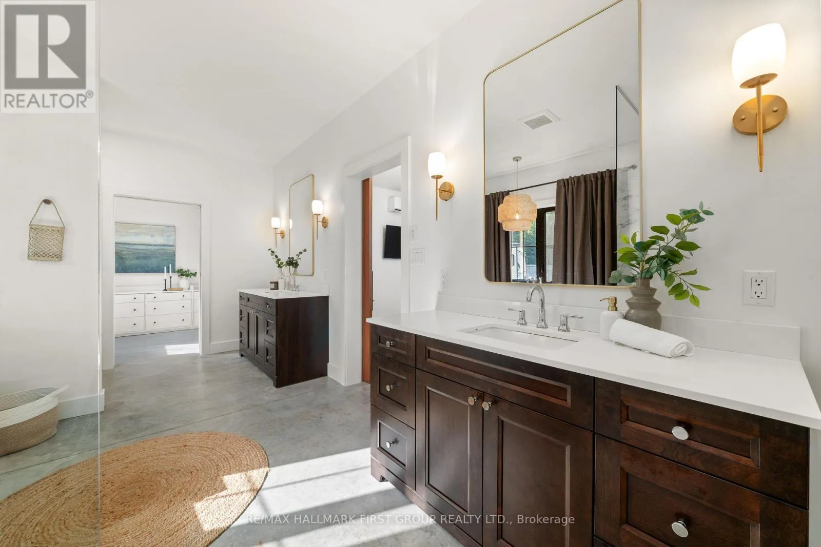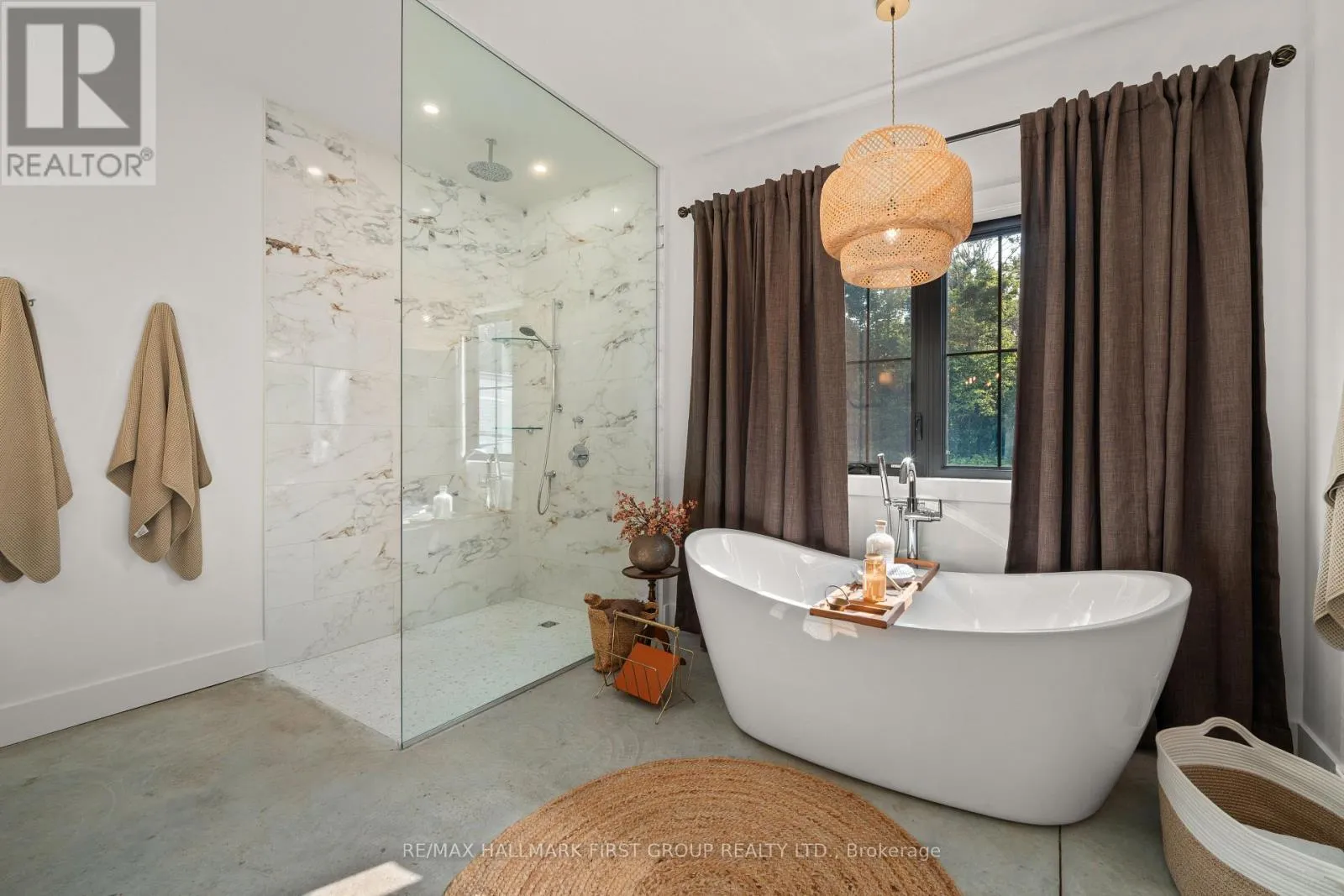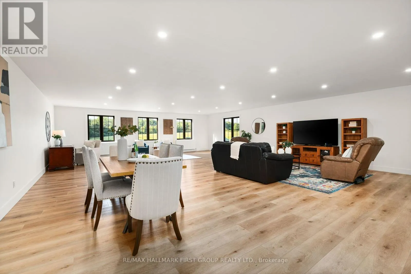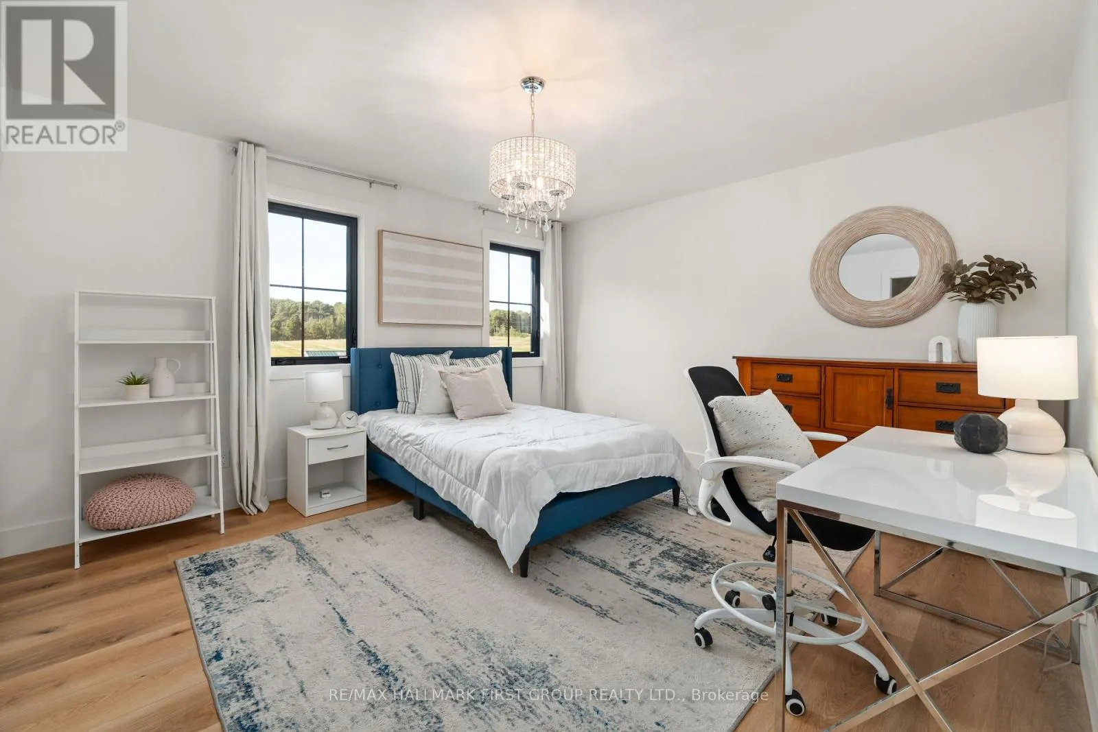 Telephone Road & Scriver Road A rare opportunity where timeless elegance meets luxurious country living on 63.16 acres! Whether you're searching for a hobby-farm, hay farm or a chance to unwind in luxury, this 2023 custom-built, architectural masterpiece offers over 5,300 sqft of magazine worthy living space. In 5 beds, 4 baths and upper level, in-law suite potential you will appreciate the bold design coupled with modern comfort. Soaring 26ft ceilings & beam detail in the living room welcome you to the open concept living space where heated, polished concrete floors run throughout. The custom kitchen overlooks both the dining area and living room, offers stunning views of the landscape and features quartz counters & back splash, premium pot drawers, glass cabinetry, pot filler, full appliance package & 14ft centre island. Tucked behind is the secondary prep-kitchen which dreams are made of! Catering to a large family, you will appreciate the expansive laundry room, mud room w/ inside entry to the 2+ car garage w/ drive through door, heated flooring & hot/cold water service, as well as the spacious primary suite complete with a walkout to the stamped concrete, covered porch, a 5pc. ensuite which includes a soaker tub & glass walk-in shower as well as a walk-in closet featuring natural light. On the upper level, a massive bonus room offers versatile space for a theatre, home gym, private retreat, or in-law suite (2nd stairs can be added & septic is rated for it) in addition to the 3 bedrooms and 2 full bathrooms on this level! As an added bonus, the 7-stall horse barn is perfect for equestrian lovers or hobby farmers. Whether you're enjoying panoramic views and sunsets in peaceful solitude or hosting guests in open, light-filled spaces, this is truly one-of-a-kind!! Located just minutes from golf courses, 401 access, and essential amenities, it's more than a home, it's a lifestyle unlike any other. Extras: hydrounic heating system, constant pressure well pump & electrical r/i for generator. (id:27476)