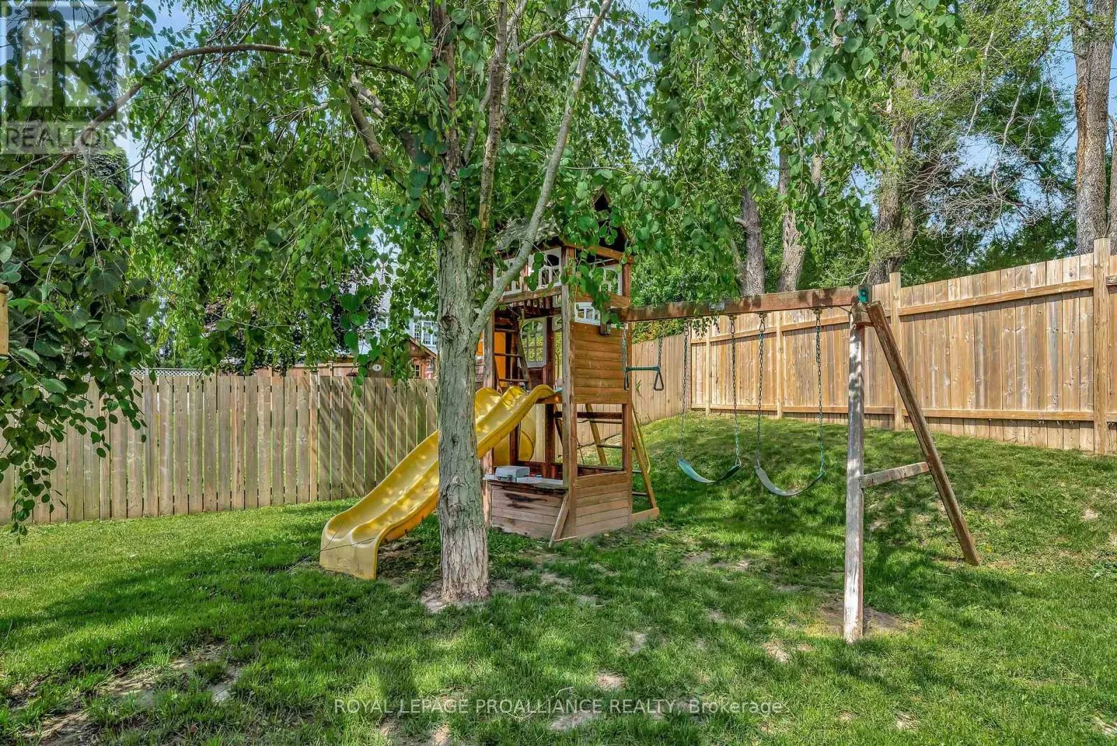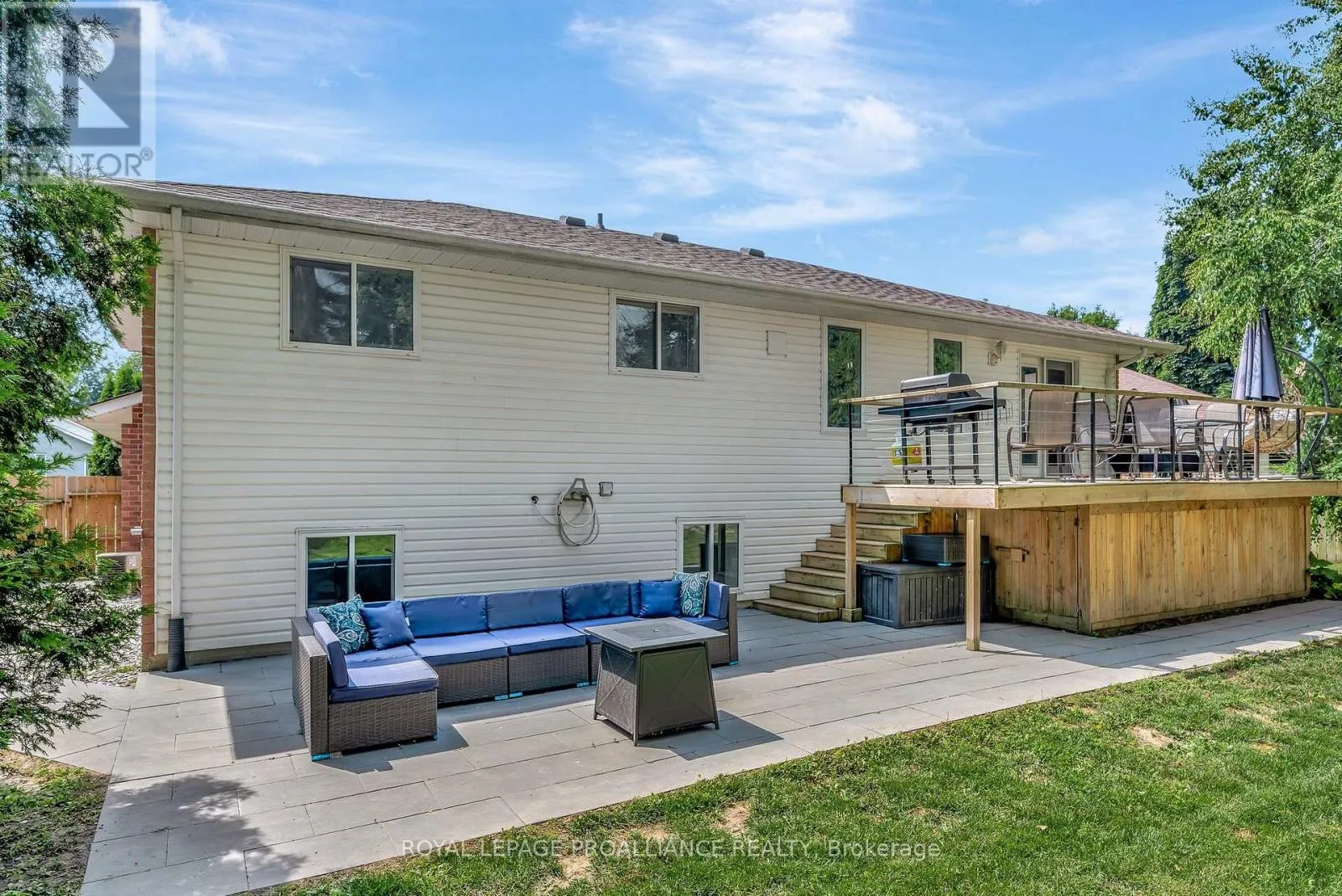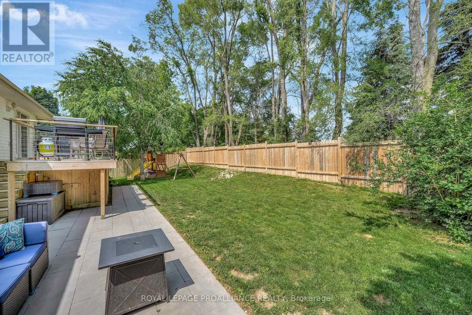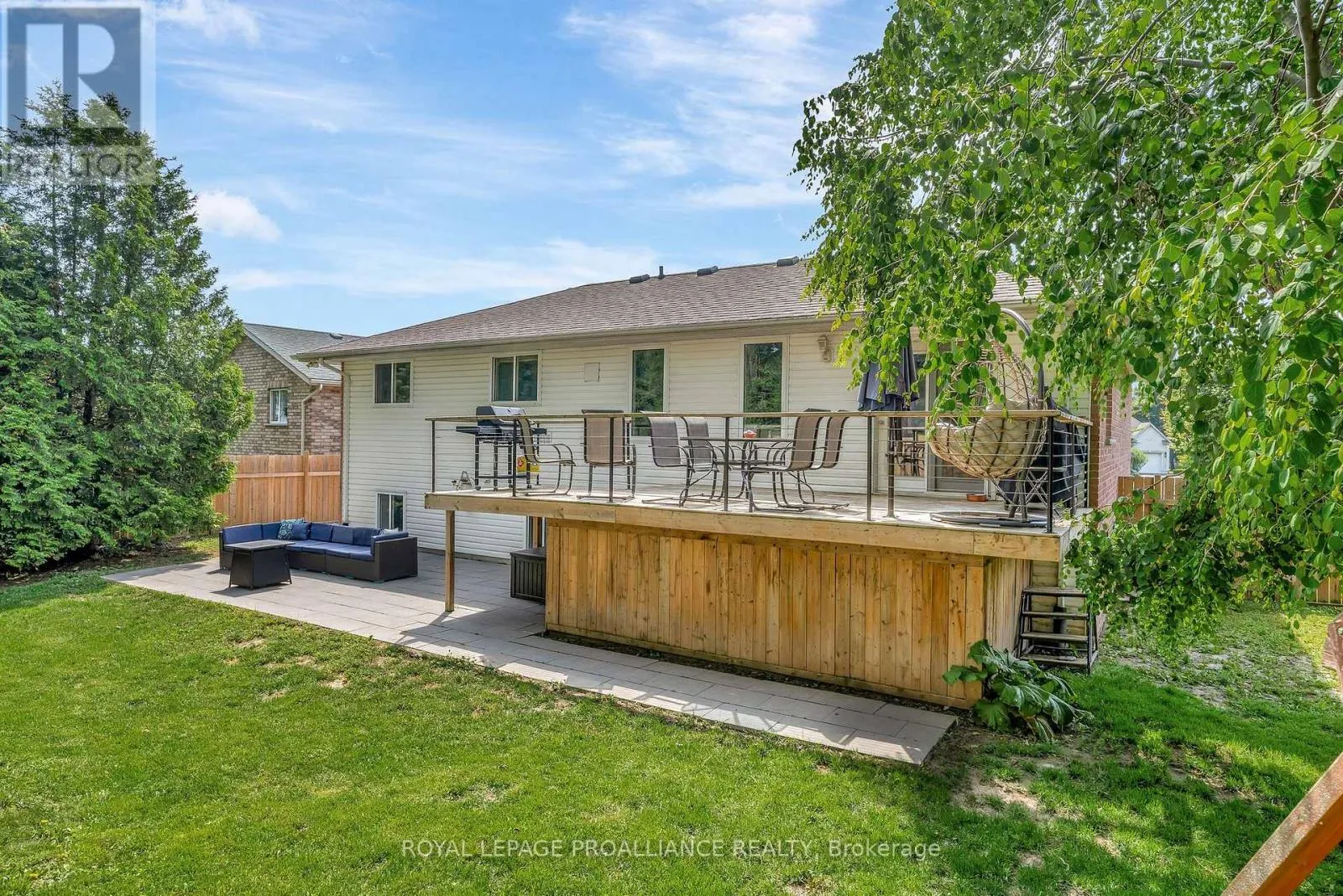 Cross Streets: Pinnacle Street North & Henderson Lane. ** Directions: Dundas Street to Pinnacle Street North, East on Henderson Lane. Picture perfect 4 bed, 3 bath family home, a short walk to local schools and shopping, in a wonderful established neighbourhood in Brighton.With stylish finishes, a beautifully renovated kitchen and baths, great mudroom niche, primary ensuite bath, and a perfect kids-only lower level -with space for a 5th bedroom- this is the home your growing family has been looking for. Generous foyer, with garage access, leads up to a stylish and bright open concept living area centered around the large kitchen island with natural stone counters, tiled backsplash and farmhouse sink. Ample dining area, large enough for big family dinners, and a great living room create easy space for the whole family. Garden doors lead to the elevated deck and private, mature backyard. Step down to the stone patio- great spot for a hot tub- and enjoy the fully fenced easy to maintain back yard. 2 main floor bedrooms include a large primary suite with beautifully finished 3pc ensuite, and plenty of closet space. Second main floor bedroom is serviced by a nicely updated 4pc bath. Fully finished lower level includes 2 good size bedrooms with big on grade windows and a large 4pc bath. Great rec room with freestanding gas fireplace is the perfect spot for cozy movie nights and homework space.Little door under the stairs for a charming kids-only play space. Easily convert the storage room into an additional 5th bedroom. A separate laundry room completes the lower level. Enjoy a mature, quiet neighbourhood only steps to Brighton primary and high schools, and a short walk to groceries,shops and cafes in downtown Brighton. This easy to maintain, spacious and beautifully updated home is sure to make you Feel At Home on Henderson Lane. (id:27476)