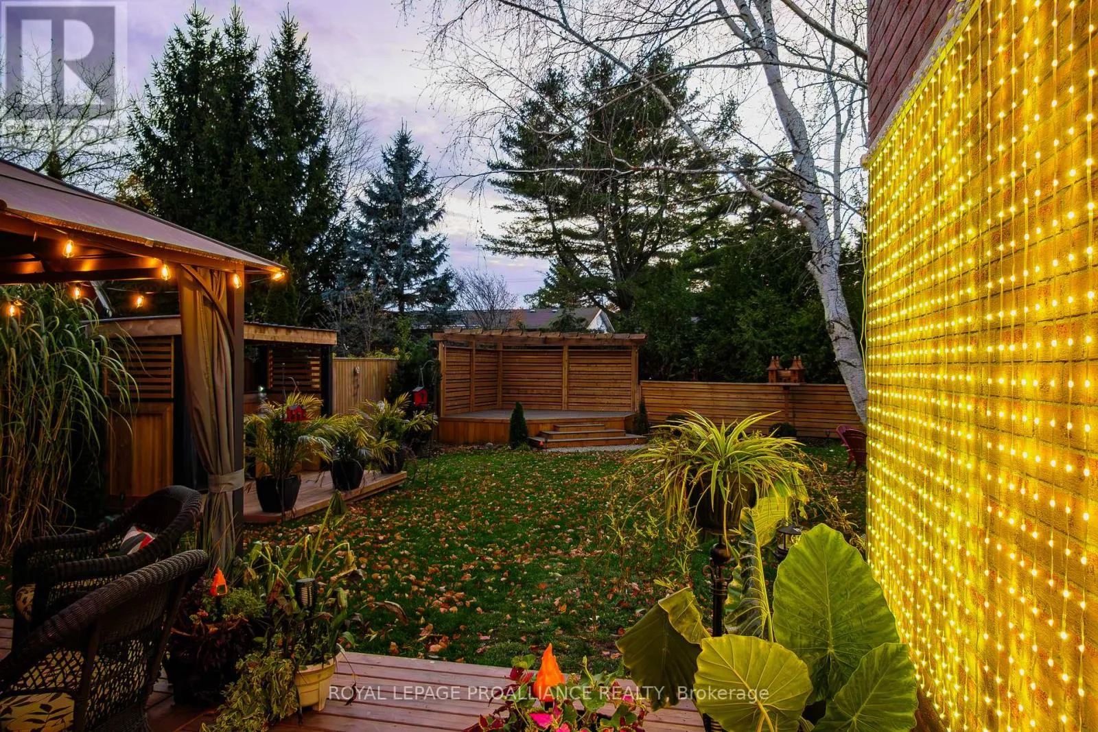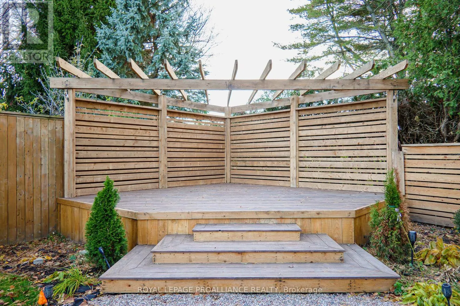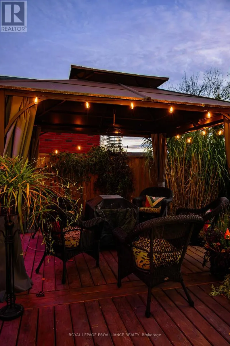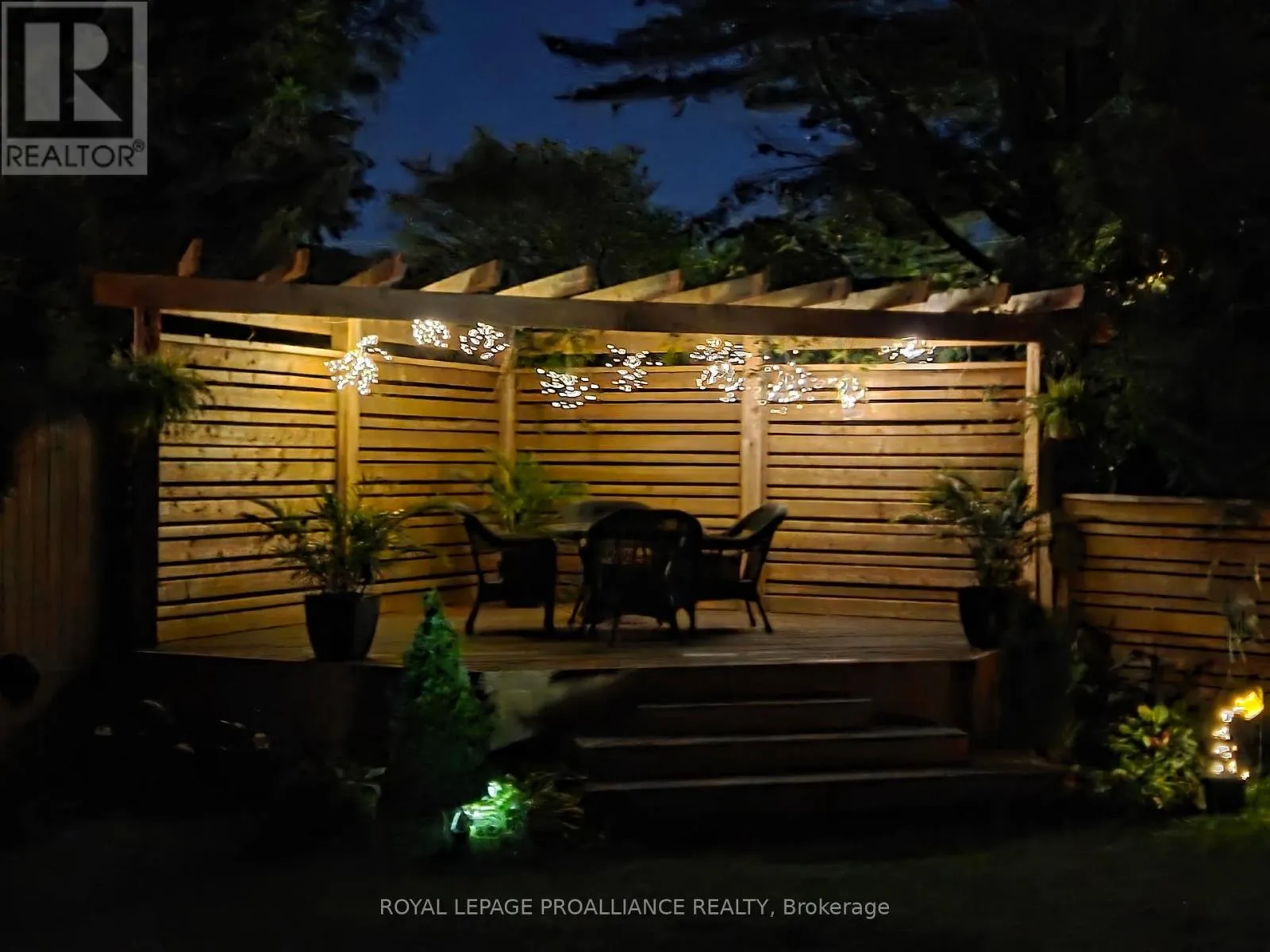 Cross Streets: Dundas Street and Daniels Drive. ** Directions: Elizabeth Street to Terry Fox Drive to Dundas Street to Daniels Drive. Arguably one of the best streets in Brighton. Beautiful collection of homes on quiet cul-de-sac, moments to downtown & amenities. Short walk to: grocery, schools, rec centre, Proctor Park & downtown core. Gorgeous oversize lot is one of the highlights of this special home. Fully fenced, pie-shaped lot measures 133ft deep with a spectacular backyard oasis offering various sitting & entertaining areas. Out the back door is the first deck with gazebo area & outdoor lighting. Towards the middle of yard is a bar area on deck with metal roof, featuring a BBQ area, bar fridge & quartz counter. Towards the back corner is a lovely raised seating area with pergola, perfect for entertaining & taking in gorgeous sunsets. Rounding out the features is a newer garden shed & firepit area. Private lot with mature birch & pine trees & 8ft fencing on each side between neighbours. Enter this Colorado-style bungalow through a large foyer with both garage & backyard access. Up a few stairs is the main living area boasting over 1300sqft as well as 2 bdrms. Gorgeous open concept living & dining areas with newer laminate flooring, large front facing windows & semi-vault ceiling in the dining rm. Eat-in kitchen has been updated with new cabinet doors, new counters, tile backsplash (2024), as well as newer stainless steel appliances & reverse osmosis. Also on main lvl is a laundry rm with sink plus 2 bdrms incl. primary with cheater access to 4pc. bath. Fully finished lower lvl maximizes the space offering an additional 2 bdrms (for a total of 4), 2nd bath (3pc.), spacious rec rm, storage rm, utility rm & a bar/lounge area for watching sports or gatherings with friends. Layout & proximity to plumbing make this space ideal for a 2nd kitchen, offering in-law suite potential. Other features in 2024 incl: gas furnace, heat pump/air con, hot water on demand & water softener. Outside provides paved parking for 6 cars, attached single garage & roof-mounted solar array providing additional income. (id:27476)