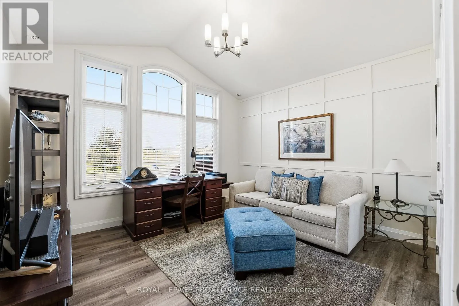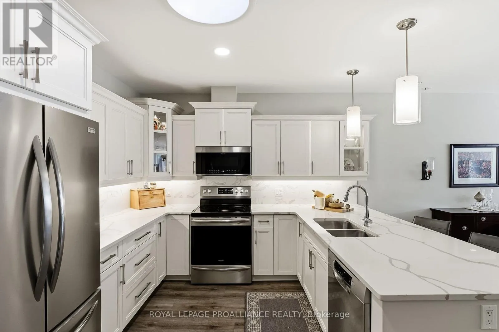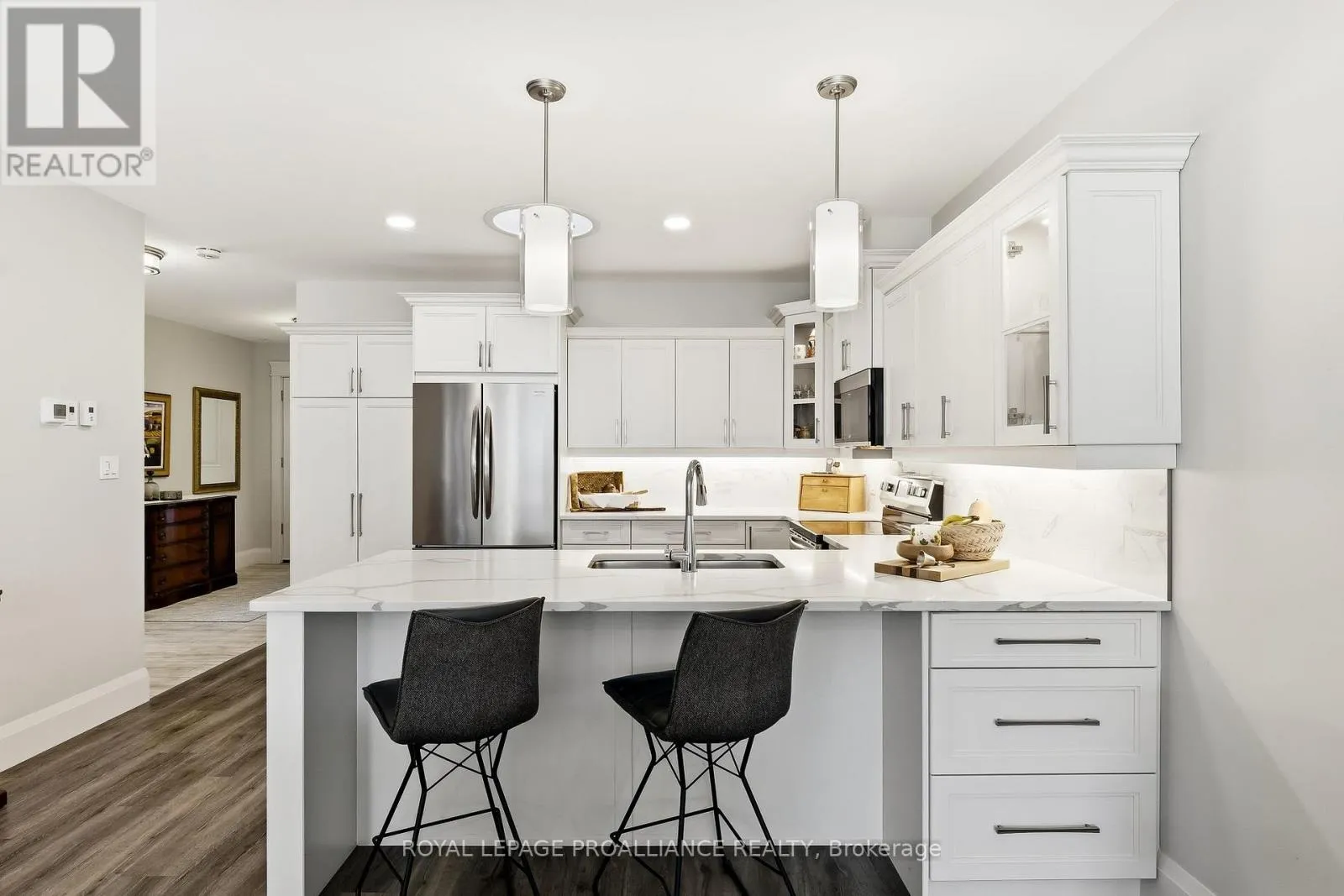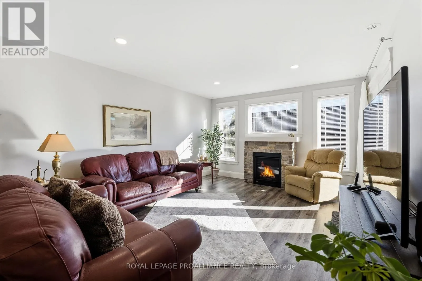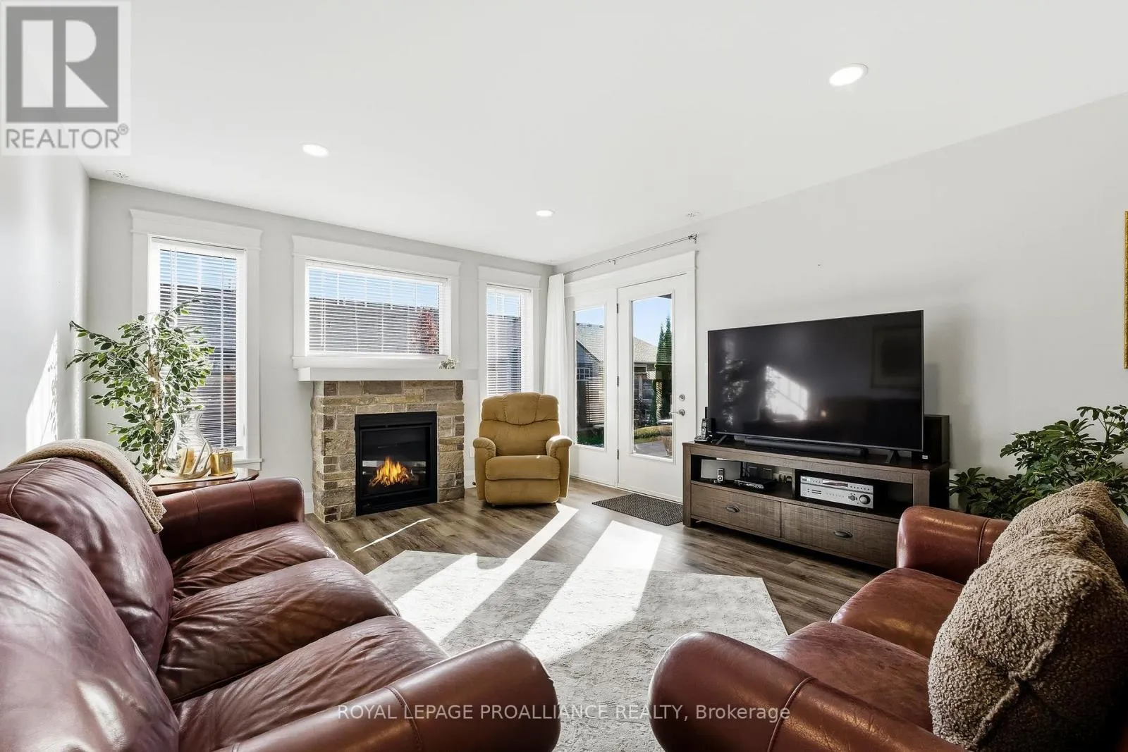 Cedar St to Raglan St to Cove Crescent Steps from Lake Ontario and moments from Brighton's beautiful waterfront, 23 Cove Crescent offers the perfect blend of luxury, comfort and convenience. This stunning all-brick freehold townhome features over 1600 sqft of thoughtfully designed living space in one of the area's most desirable neighbourhoods, perfect for retirees or professionals. Enjoy easy access to marinas, beaches, Presqu'ile Provincial Park, restaurants and scenic walking trails-all just minutes from your front door. Inside, you are welcomed by a bright, open-concept layout with modern finishes throughout. The chef's kitchen stands out with quartz counters, stainless steel appliances, breakfast bar and an abundance of cabinetry and also features a solar tube letting in natural light. The living area features a cozy gas fireplace with a stone surround and walks out through elegant French doors to a private, fully fenced backyard retreat. Relax outdoors under the covered patio, perfect for year-round enjoyment, whether dining al fresco or unwinding after a long day. Thoughtfully landscaped gardens create a peaceful and low-maintenance outdoor space. The primary bedroom suite offers comfort and style with a walk-in closet and a spa-inspired ensuite complete with a glass and tile walk-in shower featuring accessibility upgrades. French doors in the Primary provide direct patio access-perfect for enjoying your morning coffee. A second bedroom serves perfectly as a guest room, home office or den, located beside a full 4-piece bathroom for guest privacy. Additional highlights include a laundry room with built-in storage and laundry sink and convenient inside access to the spacious garage. With quick access to Highway 401, VIA Rail and all of Brighton's active amenities-including the Community Centre & Arena, Curling Club, YMCA, pickleball courts and vibrant seasonal events such as Music In The Park - 23 Cove Crescent offers the perfect fusion of tranquil small-town charm and elevated modern style. (id:27476)