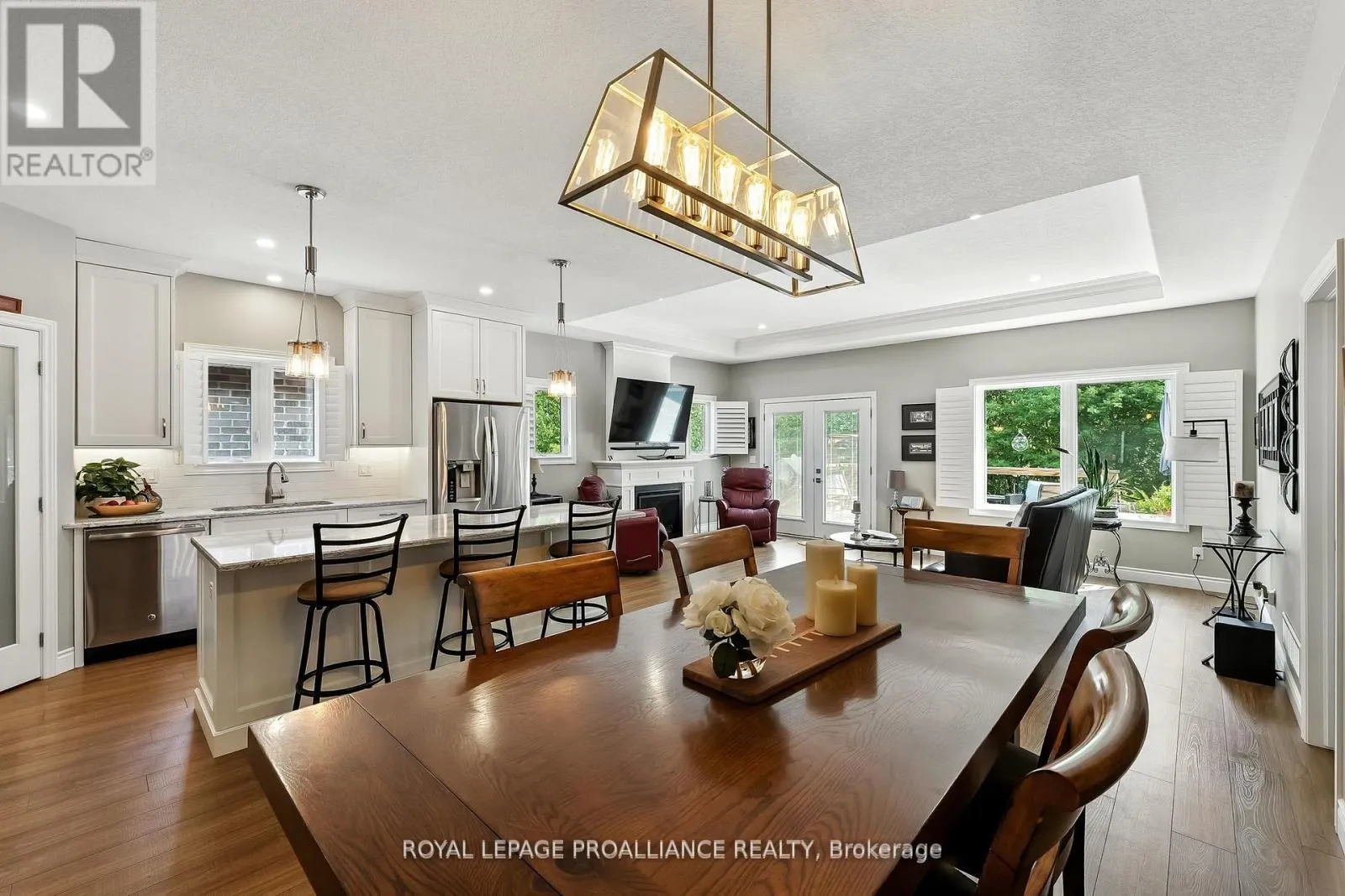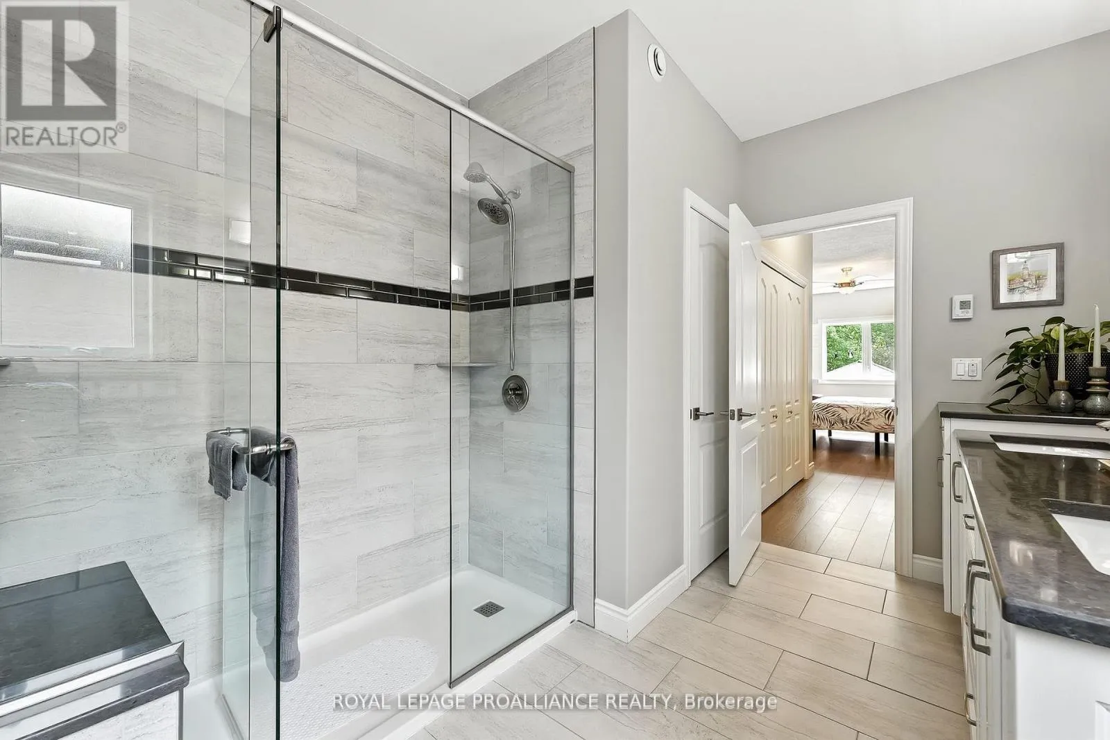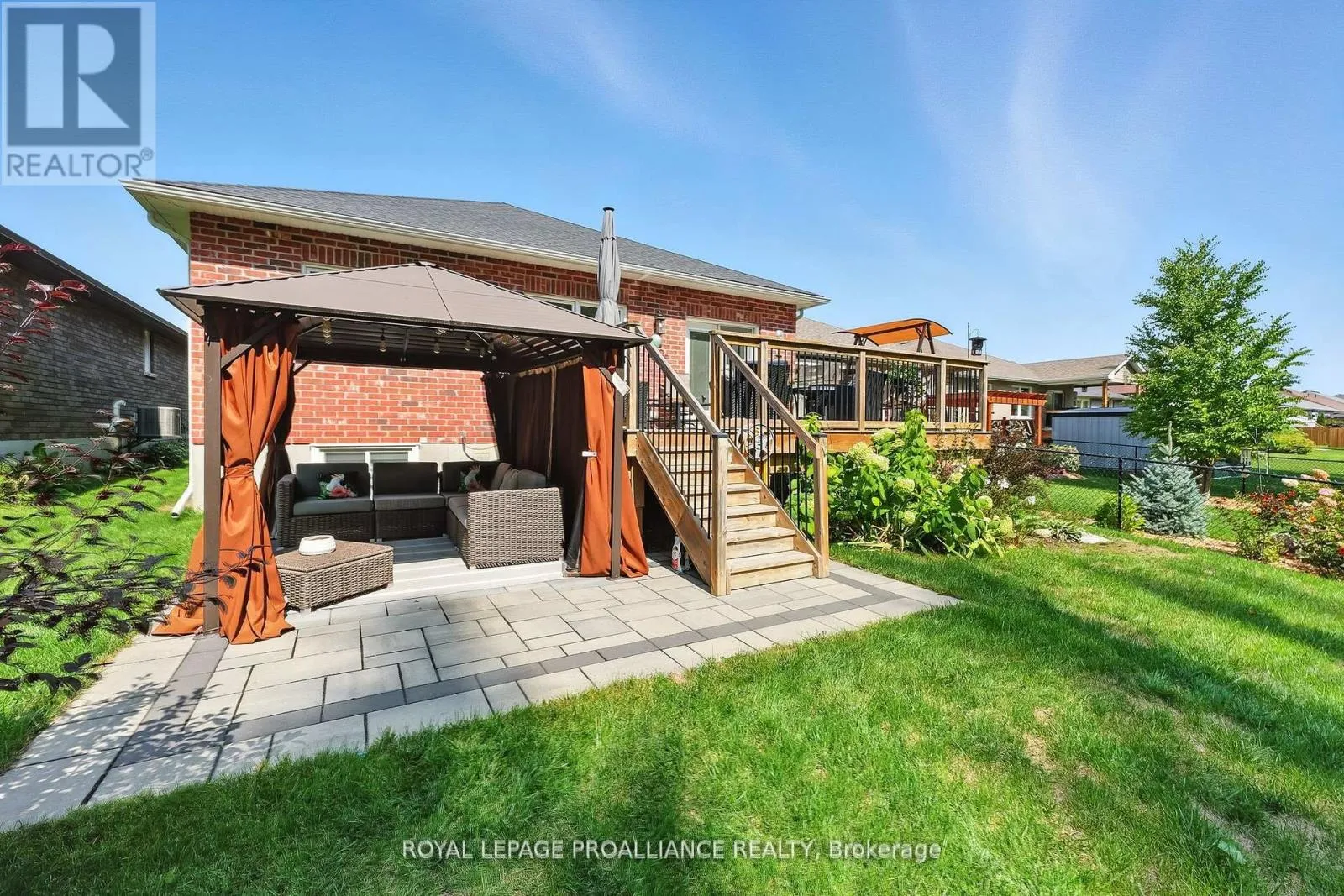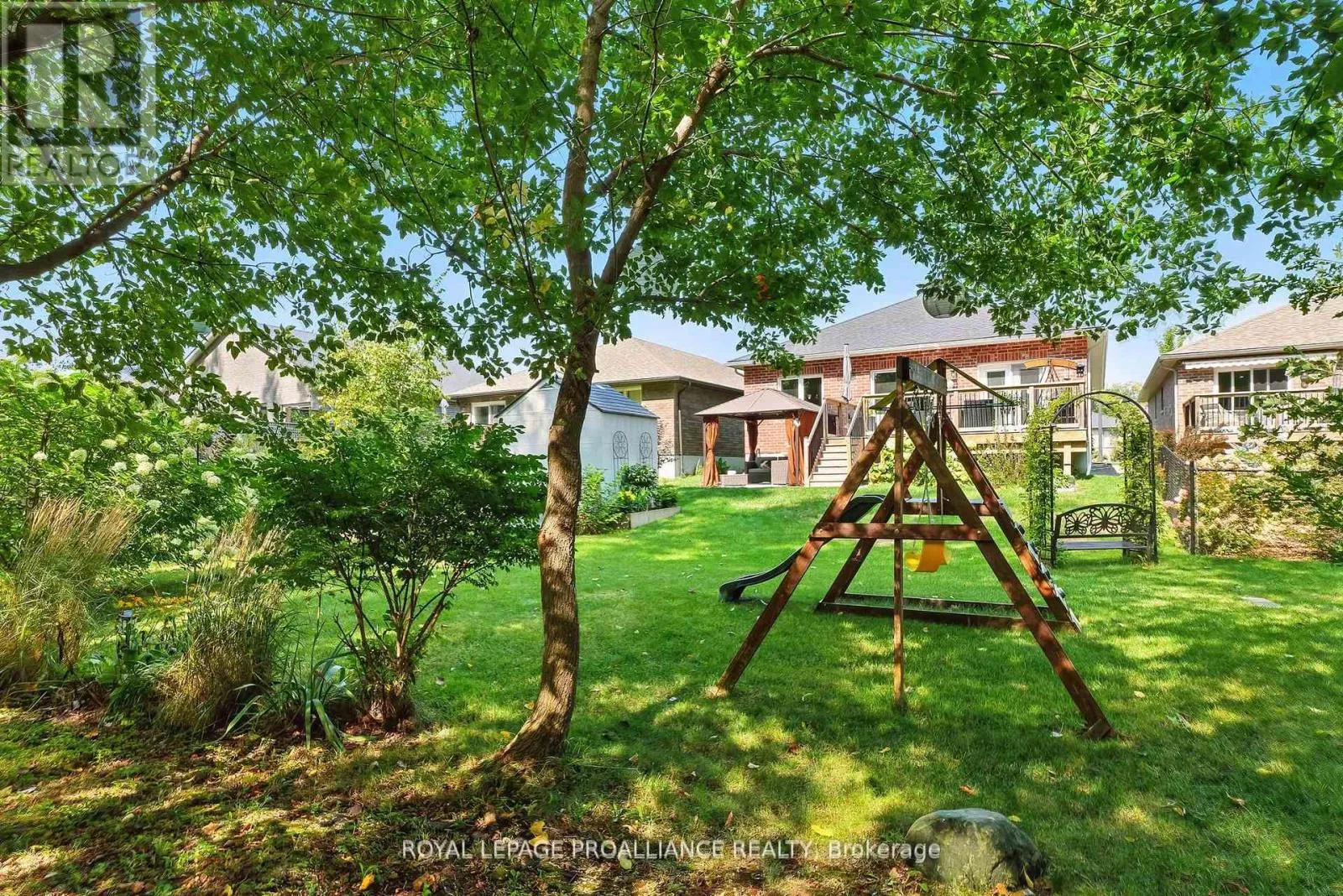 Empire Blvd/Royal Gala Drive Welcome to 82 Royal Gala Drive, where modern design meets a tranquil conservation setting. Backing onto woods with no rear neighbors, this fully finished 4 bedroom, 3 bath true bungalow blends privacy, nature and contemporary living. Stroll or bike pathways leading to Presqu'ile Provincial Park and downtown Brighton, an unmatched location for recreation and convenience. The all-brick & stone exterior offers timeless curb appeal. Inside, the main floor features 2 bedrooms and 2 baths in a separate wing layout, giving guests their own private space. The showstopping kitchen boasts ceiling-height cabinetry, quartz counters, modern fixtures, WI pantry, Island and a gas range for the chef at heart. An open concept plan flows into the dining area and great room with gas fireplace and California shutters, while garden doors lead to an oversized deck overlooking the yard and woods. Spacious Primary suite impresses with a striking feature wall and luxurious 4-pc ensuite, complete with double vanity, quartz counters, huge walk-in glass/tile shower with seat and....heated floors! A main floor laundry with interior garage access makes chores a breeze. The finished lower level adds incredible living space, featuring a large recreation room with fireplace, a versatile nook for an office, playroom or hobbies, two generous bedrooms and a full bathroom ideal for more guests, extended family or your teenagers. Outdoors, entertain under the newer gazebo on the stone patio or relax on the deck under the stars with a glass of wine. A garden shed keeps tools tucked away, while the attached garage provides secure parking and storage. With modern finishes, a functional layout and a conservation lot offering unmatched tranquility, 82 Royal Gala Drive is a rare opportunity to enjoy contemporary living steps from nature trails, the beaches at Presqu'ile Provincial Park and Brighton's abundant amenities with shopping, cafes, arena, curling, YMCA, library, schools, tennis &pickleball courts. (id:27476)