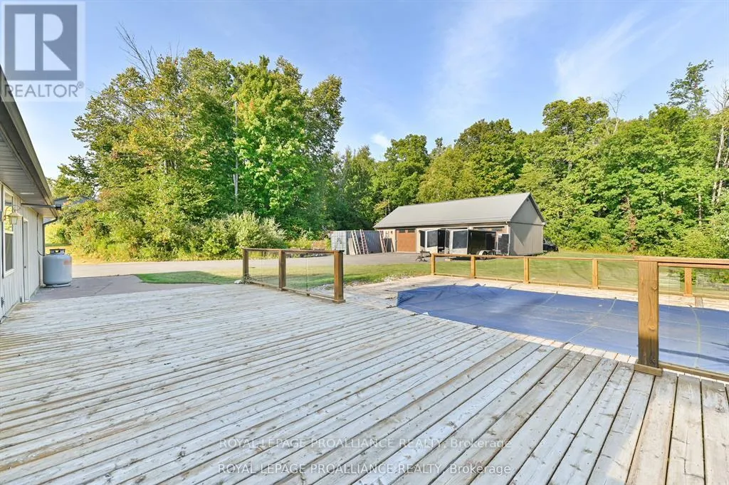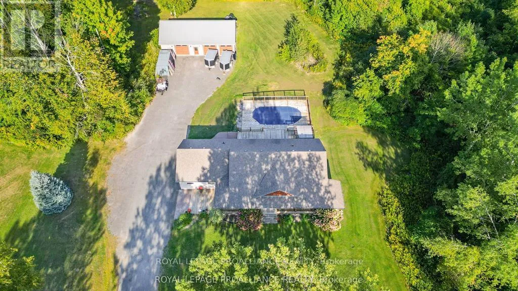Cross Streets: Whites Road / Smith Street. ** Directions: From 51 Main St, head east on Main St, turn left onto Prince Edward, turn right onto Dundas St. Continue onto Smith St, turn left onto Scriver Rd. Welcome to 217 Scriver Road The Best of Both Worlds! Enjoy the peace of country living just 3 minutes from town and minutes to Hwy 401ideal for commuters! This beautiful property sits on 3 private acres and features a spacious, open-concept main level with cathedral ceilings, a bright kitchen, and large windows that bring in plenty of natural light and showcase the surrounding nature. The main floor offers 3 bedrooms, including a generous primary suite with a 3-piece ensuite and ample closet space, plus a 4-piece main bath. The fully finished lower level includes a 4th bedroom, another 4-piece bath, and a large rec room perfect for entertaining or family living. Outside, enjoy a covered front porch, expansive back deck, and a large on-ground pool with lots of space to relax or entertain. The heated 28'10"x51'61" shop is a dream for any carpenter, hobbyist, or those in need of extra workspace. The attached 2-car garage adds even more convenience. This move-in-ready home offers the perfect balance of rural charm and accessibility. A must-see property! (id:27476)