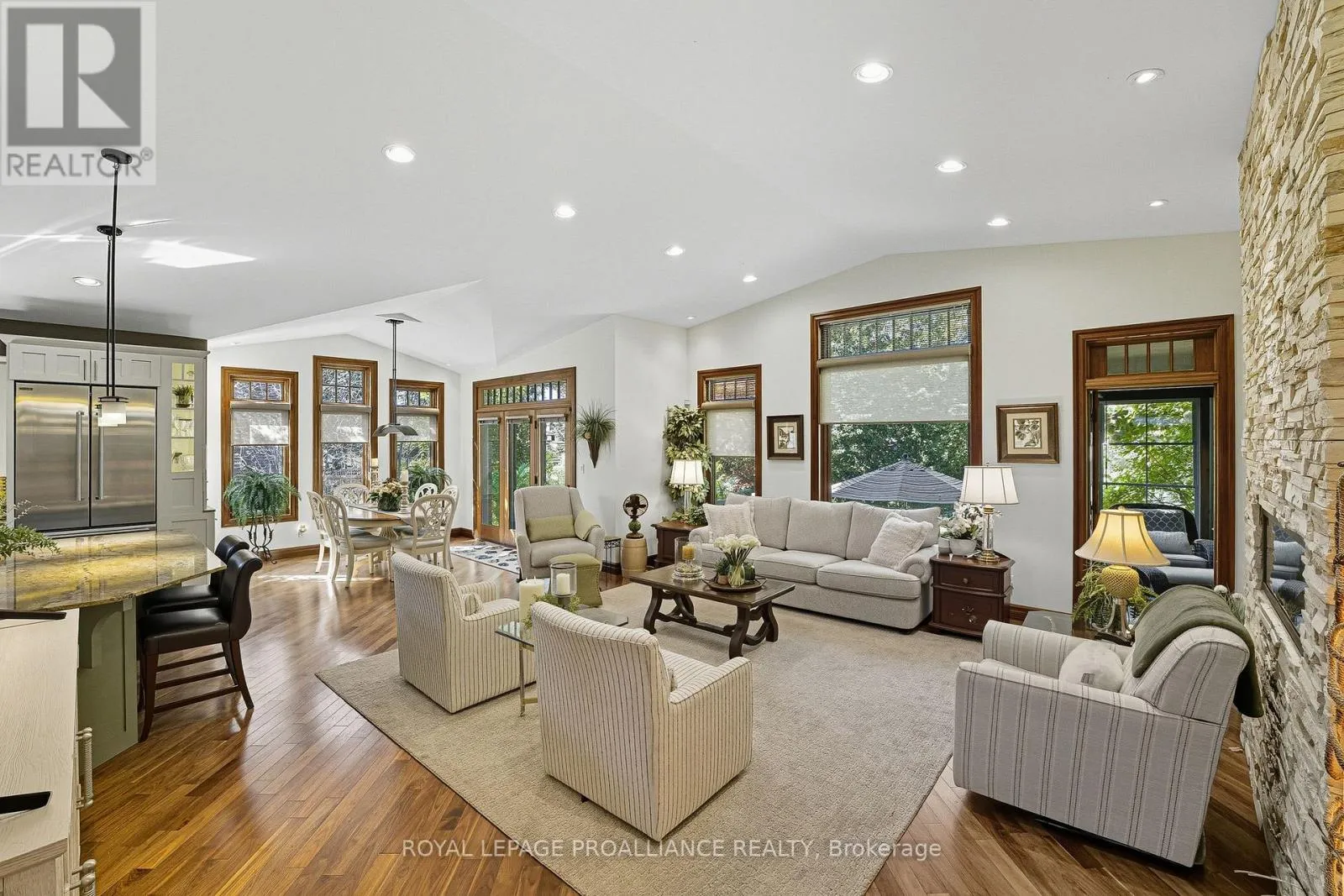 Cross Streets: Forest Dr. and Birch Crt. ** Directions: South on Prince Edward to Cedar, left on Forest and right onto Birch. Perfectly situated and exquisitely landscaped, 6 Birch Court offers luxury living at its finest! This custom designed home, by award winningTobey Developments, is ideally located in a highly sought-after neighbourhood of Brighton and is truly one of a kind! Experience a relaxed andeasy lifestyle with the many fine features included in this home. You will surely be impressed as you step into the welcoming foyer which opensto the opulent living area. The living room showcases a beautiful stone fireplace and a soaring vaulted ceiling, with gorgeous oversized windowsthat look upon the private backyard. The stunning kitchen has been meticulously crafted to offer chef quality appliances, complete with granitecounters, newly painted cabinetry, and a large pantry. The spacious dining area is adjacent to the kitchen & offers a seamless transition to theoutdoor space. As an added bonus, you can enjoy your morning coffee in the 3 season sunroom while taking in the peaceful surroundings ofyour backyard oasis. Down the hall, the primary bedroom also enjoys the warmth of the two-sided fireplace and features access to the sunroom,as well as offering a spacious walk-in closet & an upgraded ensuite with a tiled shower & jacuzzi bath. Work from home in your cozy den thatoverlooks the beautiful gardens in the front yard. Another bedroom with a semi-ensuite, a mudroom w/laundry & a 2 piece bath round out thisgracious main floor. Descend the curved staircase to the lower level & enjoy movie nights in your rec room that is outfitted with your ownsurround sound system, projector, & screen! Two more bedrooms, a 4 pc. bath, and storage complete this impressive lower level. The attacheddouble car garage offers convenience with inside access to your mudroom. Just a short commute to the GTA & a scenic drive to Prince EdwardCounty - the lakeside town of Brighton offers so many amenities. This is truly a special property. You will want to call this one "Home". (id:27476)