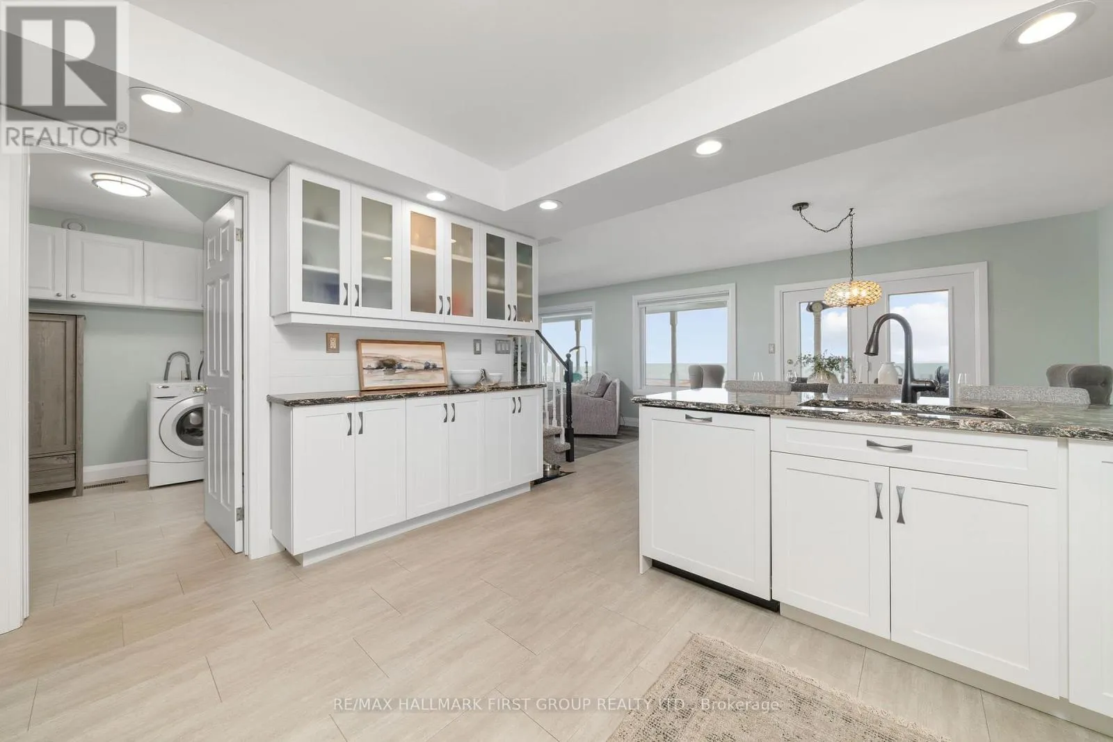 Cross Streets: Lakeshore Road. ** Directions: Lakeshore Rd. to Greenway Circle. Tailored to those seeking a serene vacation home or a relaxed, waterfront lifestyle w/ room to entertain, this recently refreshed 3 bed, 2 bath home offers a sense of calm, comfort & quality. From the concrete driveway to generac generator & engineered break wall, it has been meticulously cared from since its 2001 build. A beautifully updated kitchen w/ tile backsplash & Cambria quartz countertops offers full appliance package & custom cabinets. As the heart of the home, it encompasses lake views, looks over the formal dining area which offers a walkout to the covered, concrete porch! Updated LVP flooring throughout the living room which is complete custom window coverings & b/i fireplace, new baseboard & window casings. The spacious primary is home to enchanting lake views, vaulted ceilings, new flooring and w/in closet. An additional 2 beds & 4pc. complete this level while a 3pc. bath w/ glass shower, oversize 2 car garage, crawl space for storage round out the impressive amenities. Where the breeze beckons just minutes to Brighton, Highway 401 & CFB Trenton. (id:27476)