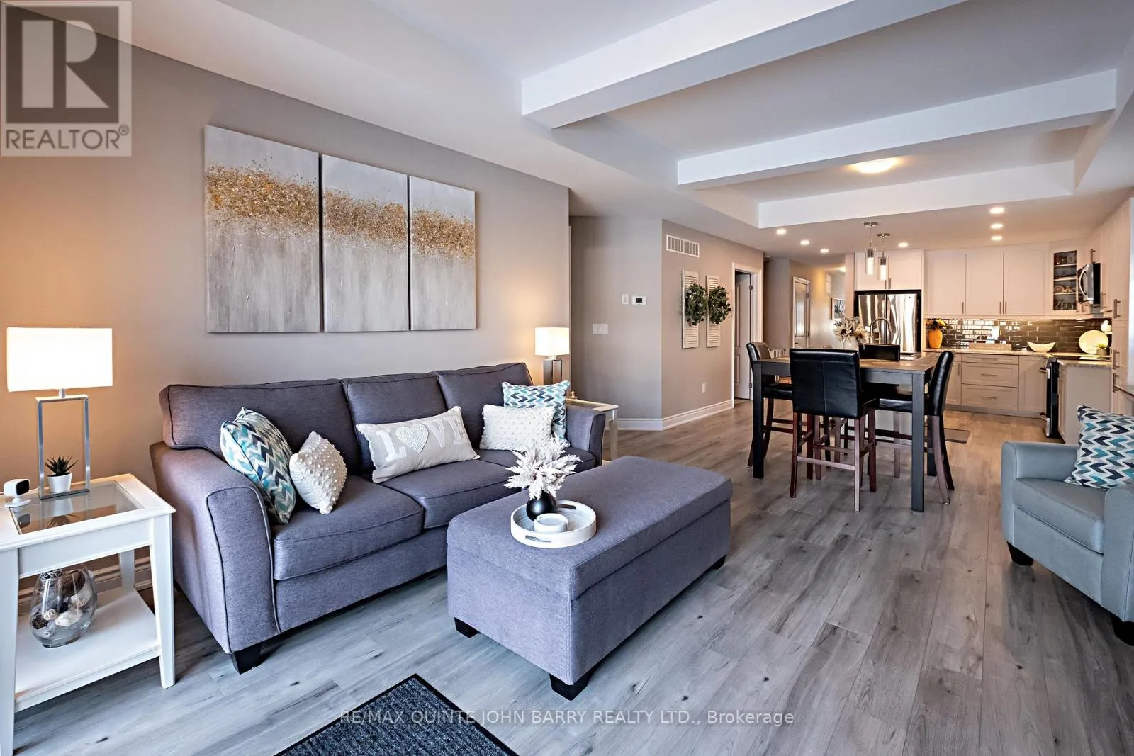 Cross Streets: Empire Blvd. ** Directions: County Rd 2 W, turn left onto Empire Blvd, turn right onto Cortland Way. Welcome to this beautifully designed semi-detached brick home offering modern comfort and thoughtful layout throughout. Step inside from the covered front porch into a welcoming foyer with a convenient 4 piece bath just off the entrance - perfect for guests. The home features 2 spacious bedrooms, including a private primary retreat complete with a walk-in closet and its own 4 piece ensuite. The heart of the home showcases a bright open-concept layout with an inviting living, dining, and kitchen area designed for both everyday living and entertaining. The kitchen offers ample cabinet space, two-tone cabinets, deep pot drawers, and a functional centre island with sink - ideal for meal prep and gathering with family or friends. Enjoy beautiful natural sunlight throughout the main living area, highlighted by an elegant tray ceiling that adds architectural interest and charm. From the living room, step directly onto the rear deck, extending your living space outdoors. Upgraded laminate floors throughout main level. Outside, you'll find a fully fenced yard, perfect for relaxing, gardening, or pets. This home combines style, comfort, and practicality - ready for you to move in and enjoy. (id:27476)