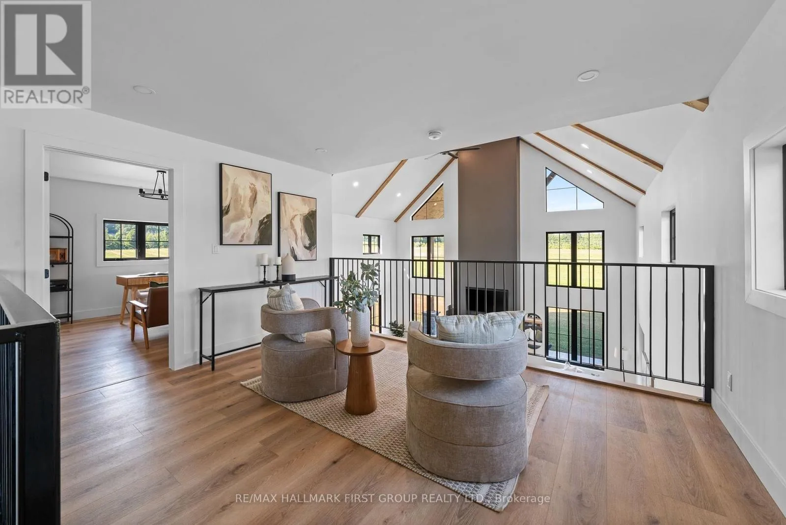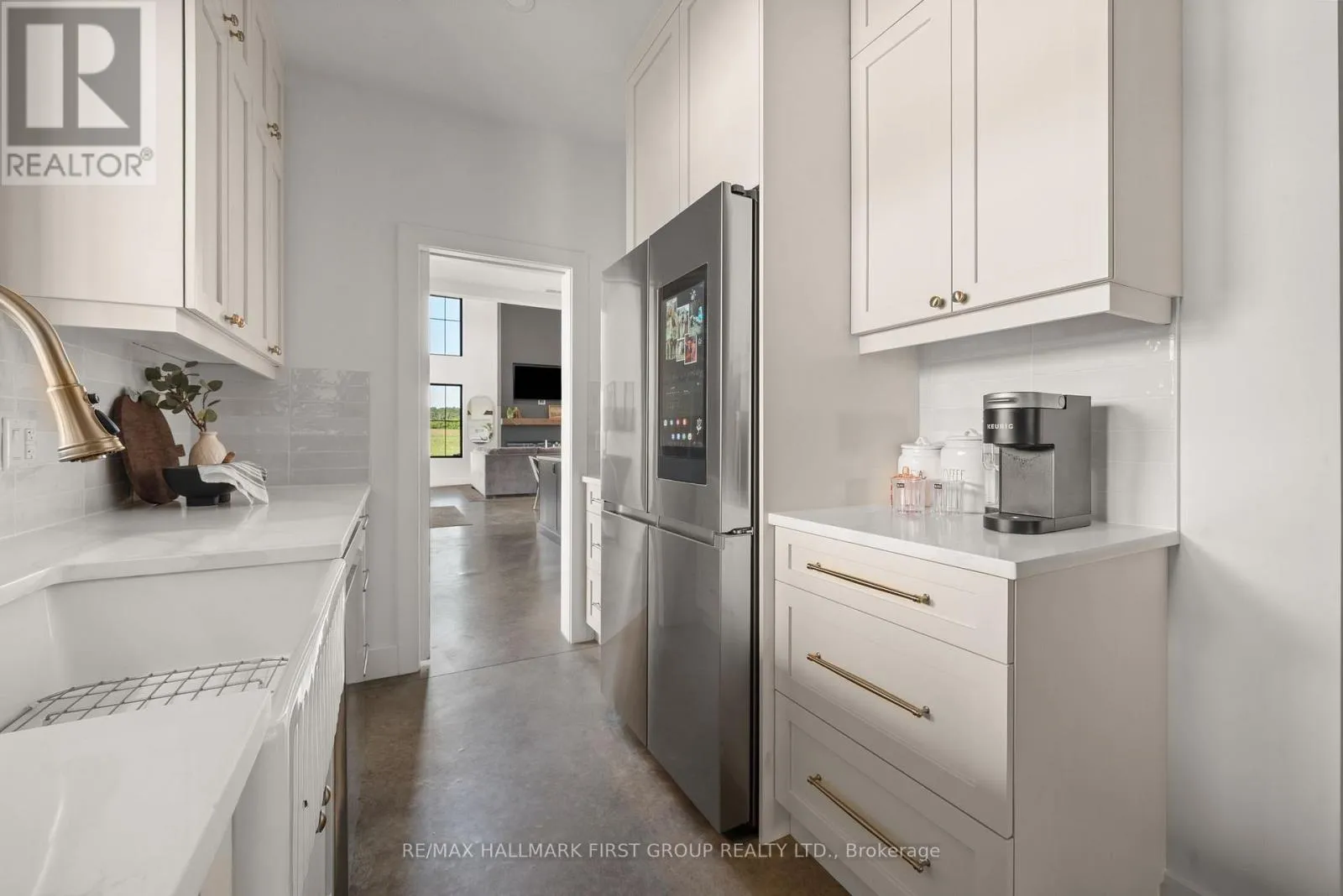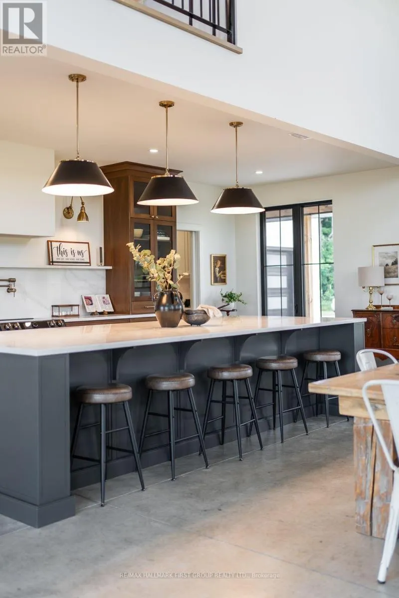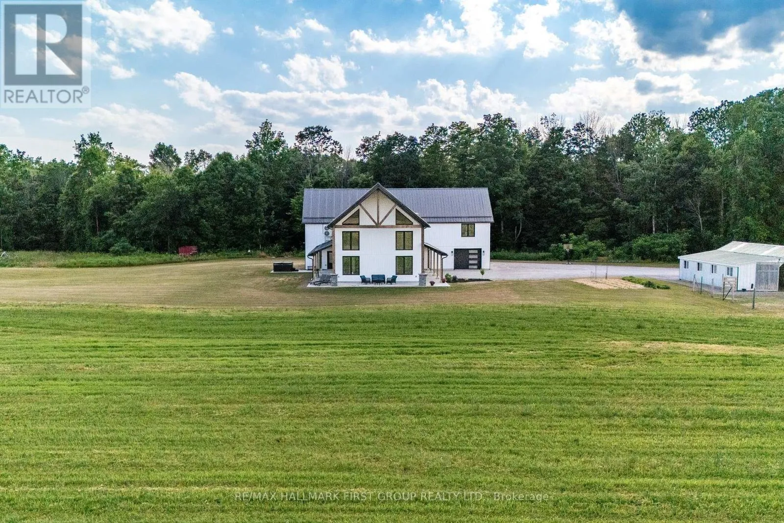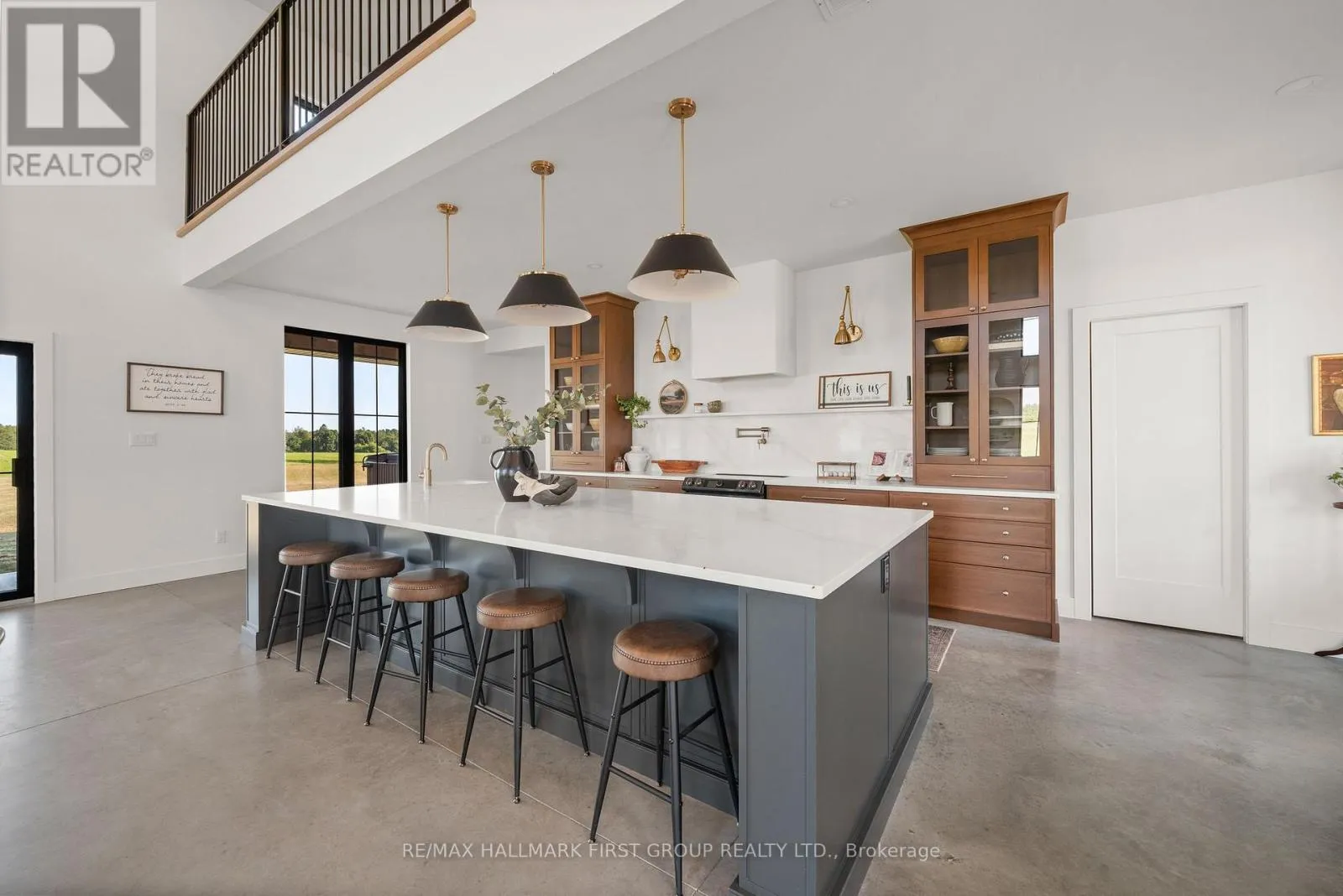 Cross Streets: Telephone Road & Scriver Road. ** Directions: Telephone Rd. or Whites Rd. to Scriver Rd. 63.16 acres of opportunity-a rare chance to slow down, claim as your own, and create your dream lifestyle. At the heart of the property sits a 2023 custom-built architectural masterpiece with over 5,300 sq ft of refined living space. Featuring 5 bedrooms and 4 bathrooms, soaring 26-ft ceilings with beam detail, and heated polished concrete floors throughout, the home blends bold design with modern comfort. The custom kitchen overlooks the living and dining areas, with quartz counters and backsplash, glass cabinetry, premium pot drawers, pot filler, full appliance package, and 14-ft centre island, plus a secondary prep kitchen-perfect for entertaining, baking, or large-family living.The primary suite includes a walkout to the covered stamped concrete porch, a 5-pc ensuite with soaker tub and glass shower, and a bright walk-in closet. The upper level features a large bonus room ideal for a theatre, gym, private retreat, or in-law suite potential, plus three additional bedrooms and two full baths. Perfect for a hobby farm, hay operation, homestead, or private country retreat, this property offers space to raise animals, garden, explore nature, and enjoy peace and solitude.The land is systematically tile drained, ideal for farming, gardening, or expanded agricultural use. Open fields provide room for animals, fencing, and hay production, while portions have been successfully cash-cropped with corn and soybeans. Dedicated garden areas support a "living off the land" lifestyle, and fruit trees line the driveway. Wooded trails and a creek offer walking, off-road adventures, or recreational pursuits-balancing quiet solitude with outdoor activity. A 7-stall horse barn adds exceptional value for equestrian or hobby-farm enthusiasts. Minutes to area golf courses, 401 access, and amenities-this is more than a home; it's land, lifestyle, and long-term potential. Extras: Hydronic heating system, constant pressure well pump, electrical rough-in for generator. (id:27476)