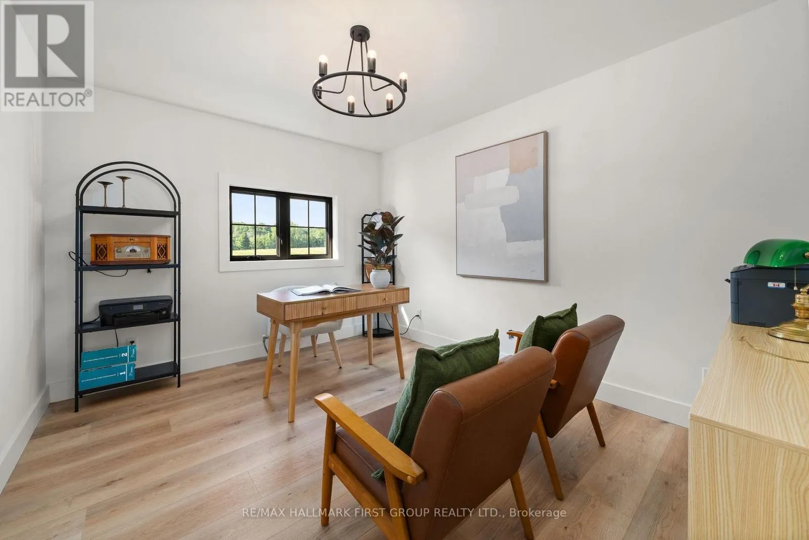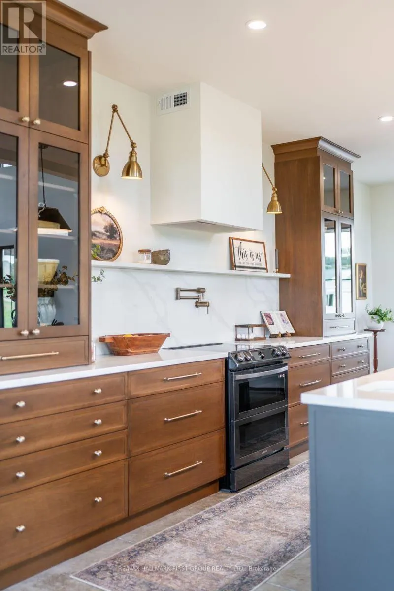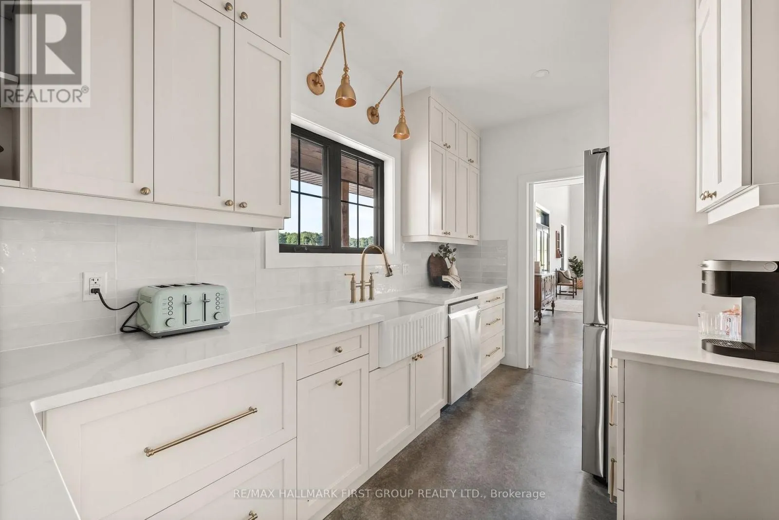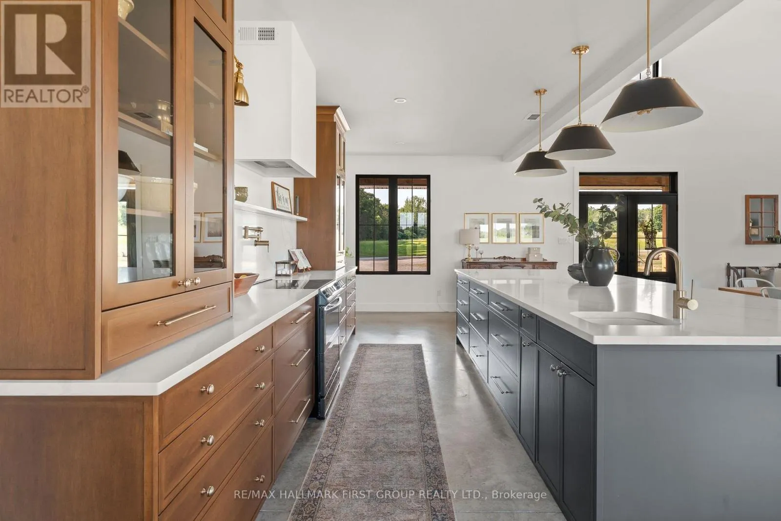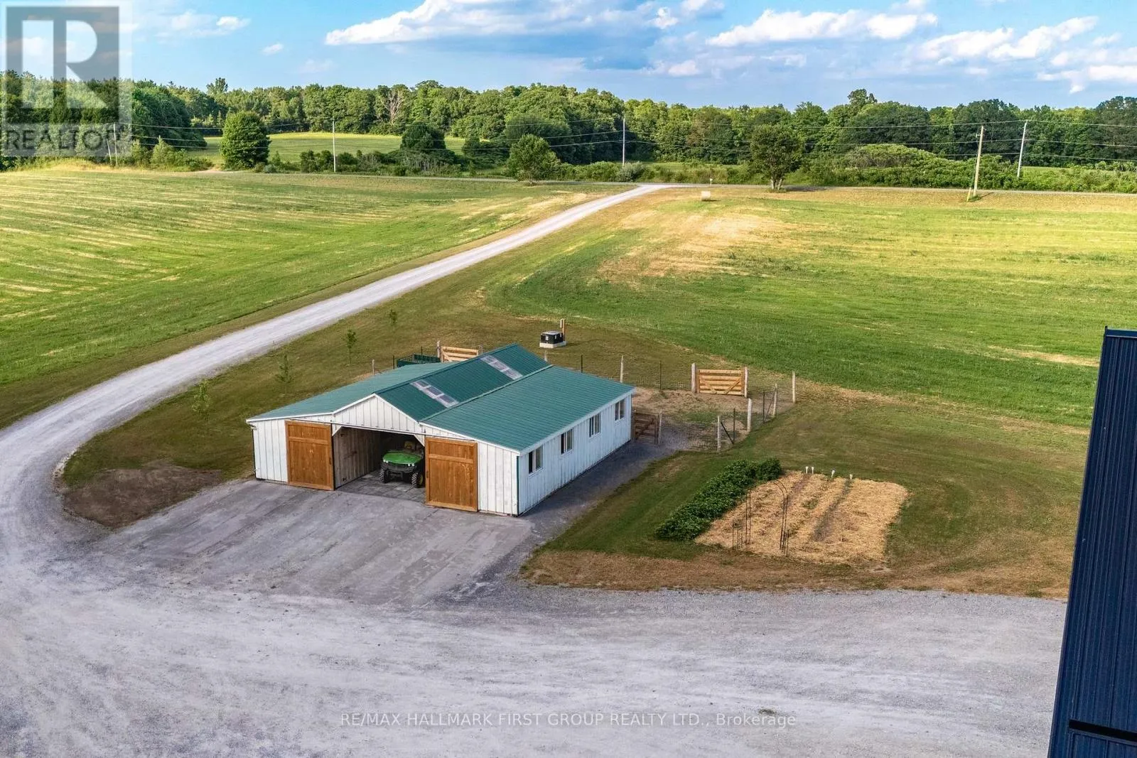 Cross Streets: Telephone Road & Scriver Road. ** Directions: Telephone Rd. or Whites Rd. to Scriver Rd. 63.16 acres of opportunity-a rare chance to slow down, claim as your own, and create your dream lifestyle. At the heart of the property sits a 2023 custom-built architectural masterpiece with over 5,300 sq ft of refined living space. Featuring 5 bedrooms and 4 bathrooms, soaring 26-ft ceilings with beam detail, and heated polished concrete floors throughout, the home blends bold design with modern comfort. The custom kitchen overlooks the living and dining areas, with quartz counters and backsplash, glass cabinetry, premium pot drawers, pot filler, full appliance package, and 14-ft centre island, plus a secondary prep kitchen-perfect for entertaining, baking, or large-family living.The primary suite includes a walkout to the covered stamped concrete porch, a 5-pc ensuite with soaker tub and glass shower, and a bright walk-in closet. The upper level features a large bonus room ideal for a theatre, gym, private retreat, or in-law suite potential, plus three additional bedrooms and two full baths. Perfect for a hobby farm, hay operation, homestead, or private country retreat, this property offers space to raise animals, garden, explore nature, and enjoy peace and solitude.The land is systematically tile drained, ideal for farming, gardening, or expanded agricultural use. Open fields provide room for animals, fencing, and hay production, while portions have been successfully cash-cropped with corn and soybeans. Dedicated garden areas support a "living off the land" lifestyle, and fruit trees line the driveway. Wooded trails and a creek offer walking, off-road adventures, or recreational pursuits-balancing quiet solitude with outdoor activity. A 7-stall horse barn adds exceptional value for equestrian or hobby-farm enthusiasts. Minutes to area golf courses, 401 access, and amenities-this is more than a home; it's land, lifestyle, and long-term potential. Extras: Hydronic heating system, constant pressure well pump, electrical rough-in for generator. (id:27476)