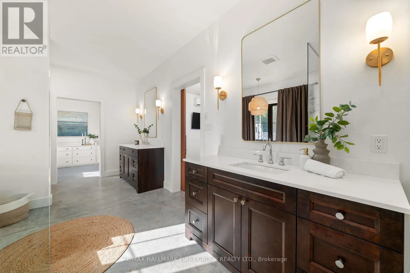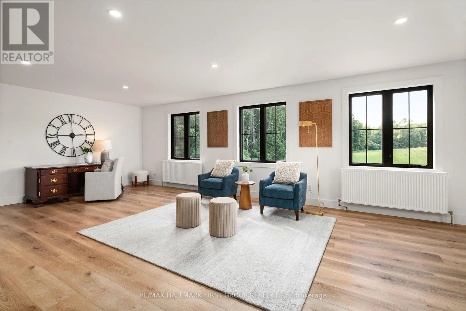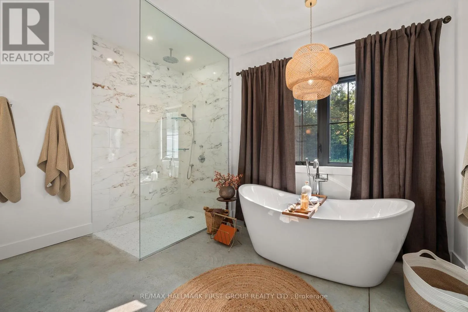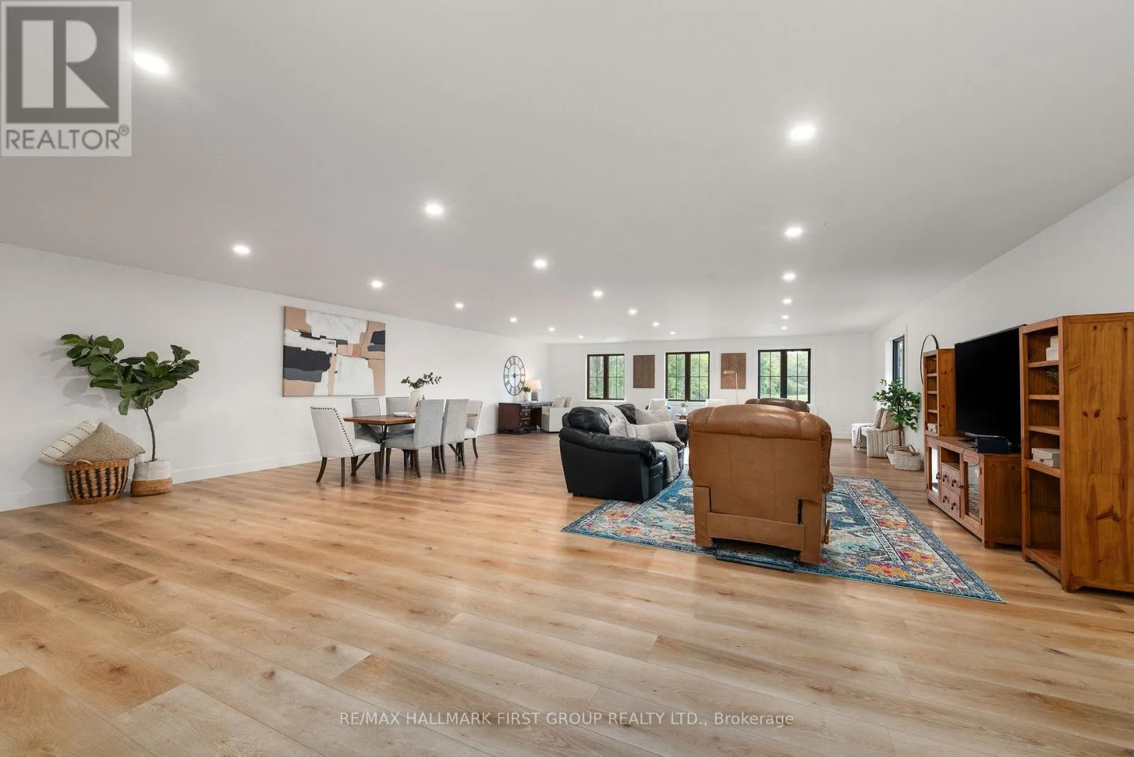 Cross Streets: Telephone Road & Scriver Road. ** Directions: Telephone Rd. or Whites Rd. to Scriver Rd. 63.16 acres of opportunity-a rare chance to slow down, claim as your own, and create your dream lifestyle. At the heart of the property sits a 2023 custom-built architectural masterpiece with over 5,300 sq ft of refined living space. Featuring 5 bedrooms and 4 bathrooms, soaring 26-ft ceilings with beam detail, and heated polished concrete floors throughout, the home blends bold design with modern comfort. The custom kitchen overlooks the living and dining areas, with quartz counters and backsplash, glass cabinetry, premium pot drawers, pot filler, full appliance package, and 14-ft centre island, plus a secondary prep kitchen-perfect for entertaining, baking, or large-family living.The primary suite includes a walkout to the covered stamped concrete porch, a 5-pc ensuite with soaker tub and glass shower, and a bright walk-in closet. The upper level features a large bonus room ideal for a theatre, gym, private retreat, or in-law suite potential, plus three additional bedrooms and two full baths. Perfect for a hobby farm, hay operation, homestead, or private country retreat, this property offers space to raise animals, garden, explore nature, and enjoy peace and solitude.The land is systematically tile drained, ideal for farming, gardening, or expanded agricultural use. Open fields provide room for animals, fencing, and hay production, while portions have been successfully cash-cropped with corn and soybeans. Dedicated garden areas support a "living off the land" lifestyle, and fruit trees line the driveway. Wooded trails and a creek offer walking, off-road adventures, or recreational pursuits-balancing quiet solitude with outdoor activity. A 7-stall horse barn adds exceptional value for equestrian or hobby-farm enthusiasts. Minutes to area golf courses, 401 access, and amenities-this is more than a home; it's land, lifestyle, and long-term potential. Extras: Hydronic heating system, constant pressure well pump, electrical rough-in for generator. (id:27476)