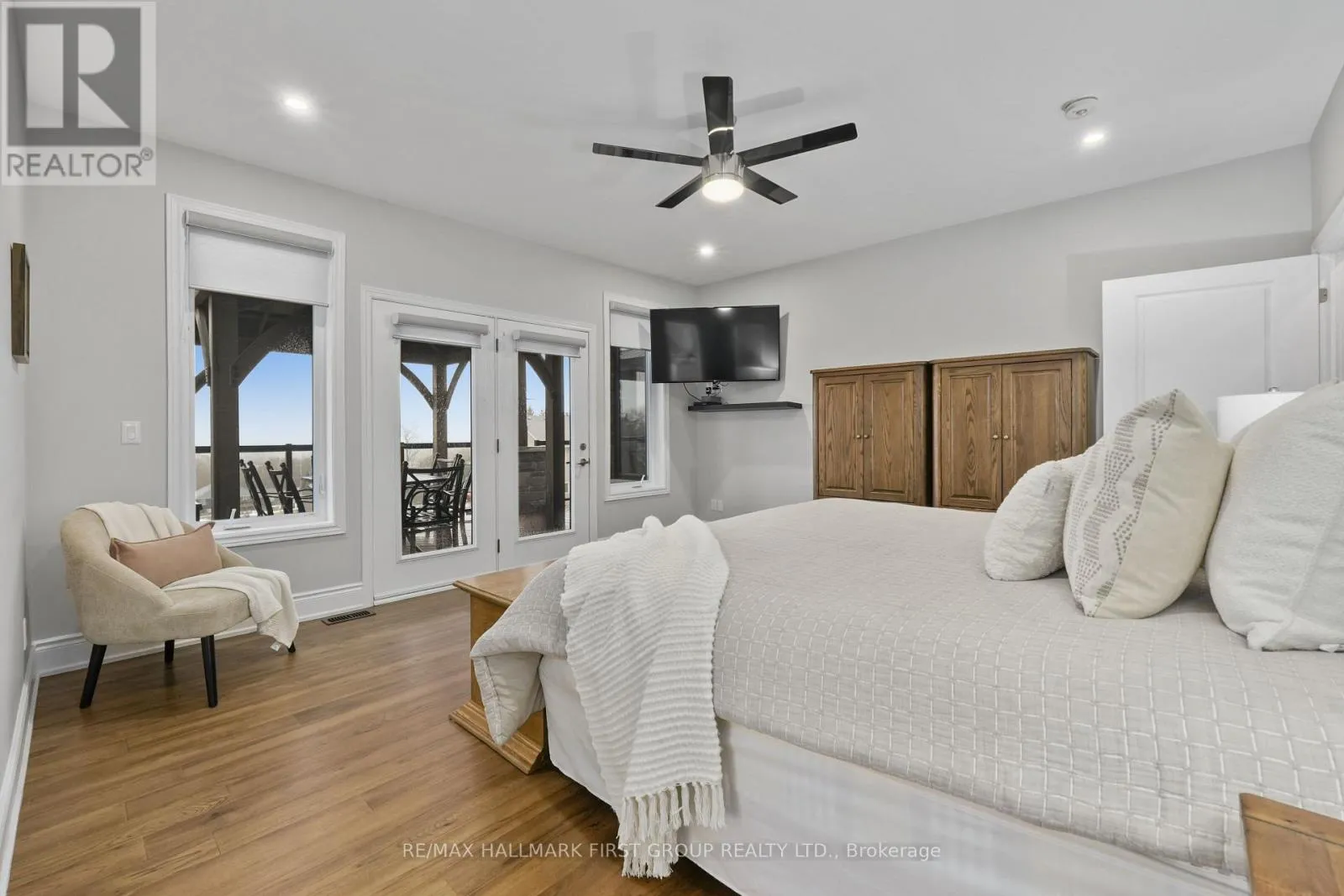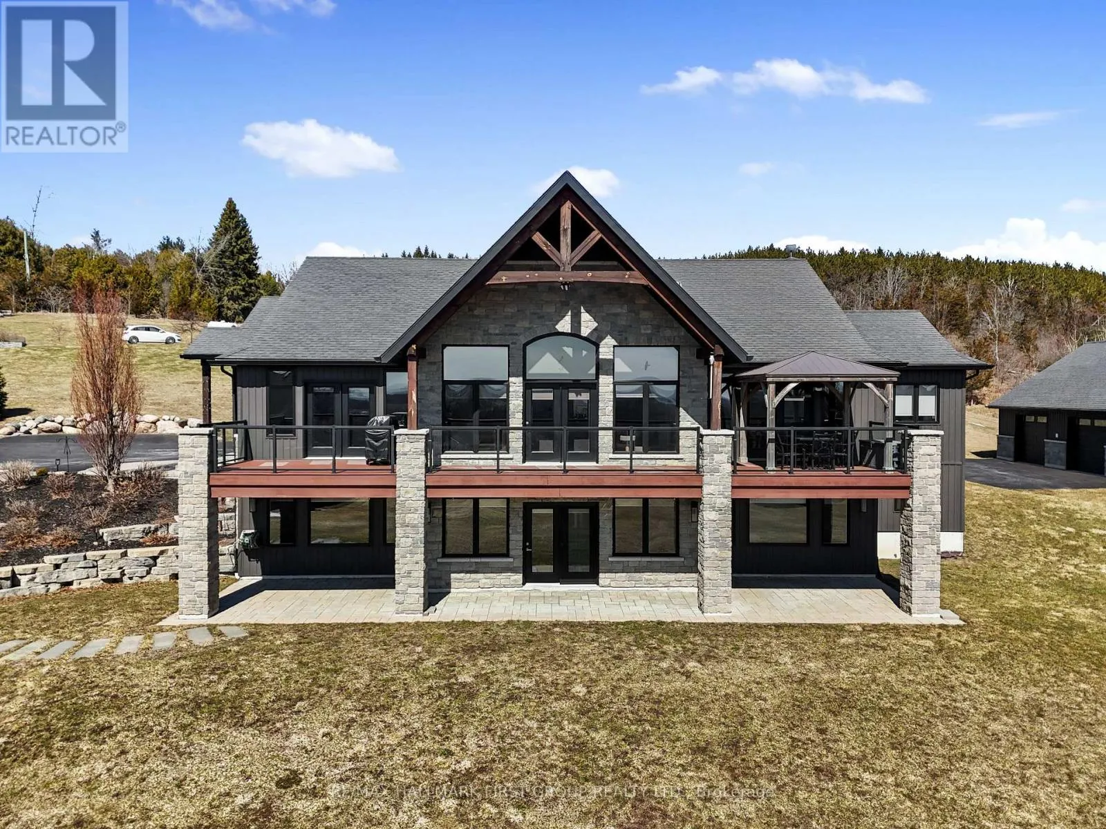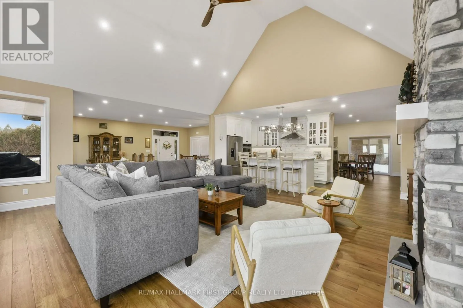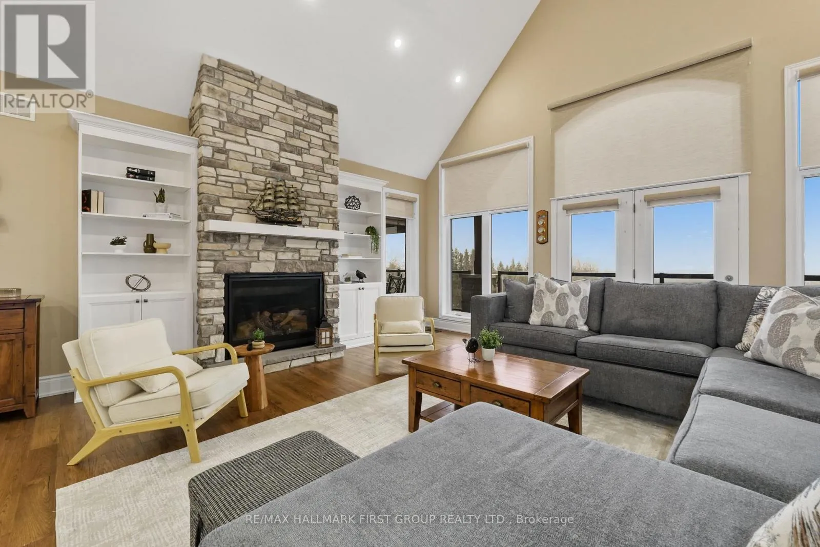 Cross Streets: Huff Rd & Main St. ** Directions: CR2 heading East, Left onto Huff Rd. Featuring panoramic views of Lake Ontario, this beautifully designed bungalow offers space, privacy, and lifestyle in equal measure. The main floor welcomes you with a bright, open-concept living, kitchen, and dining area, where a dramatic vaulted ceiling and cozy fireplace create a warm, inviting focal point for everyday living and entertaining. Large windows fill the space with natural light. The thoughtful layout keeps family and guests comfortably connected, and multiple walk-outs to the deck allow conversation to flow effortlessly from indoors to out, creating the perfect setting for summer evenings overlooking the beautiful gardens and lake beyond. The kitchen is designed for both style and function, complemented by a convenient walk-in pantry that offers excellent storage and organization. Designed for convenience, the main level also features two bedrooms, including the spacious primary suite, a second full bathroom, and main floor laundry, making day-to-day living easy and functional. The primary suite is a true retreat, complete with its own walk-out to the deck and a generous ensuite featuring a large corner jacuzzi tub, separate glass shower, and comfortable in-floor heating for added everyday luxury. Closets throughout the home are thoughtfully designed with built-in organizers for practical and efficient storage. The lower level has in-floor heating throughout and offers exceptional flexibility with a large recreation area complete with a wet bar, dedicated media room perfect for movie nights or game days, two spacious bedrooms, an office nook, and another bathroom. Car enthusiasts will appreciate the attached, heated two-car garage complete with epoxy flooring and a substantial heated detached garage, totalling five garage spaces. With nearby cycling trails, apple orchards, and Presqu'ile Provincial Park, plus the convenience of being just minutes from the 401, this property blends rural tranquillity with the very best of Northumberland County living. (id:27476)