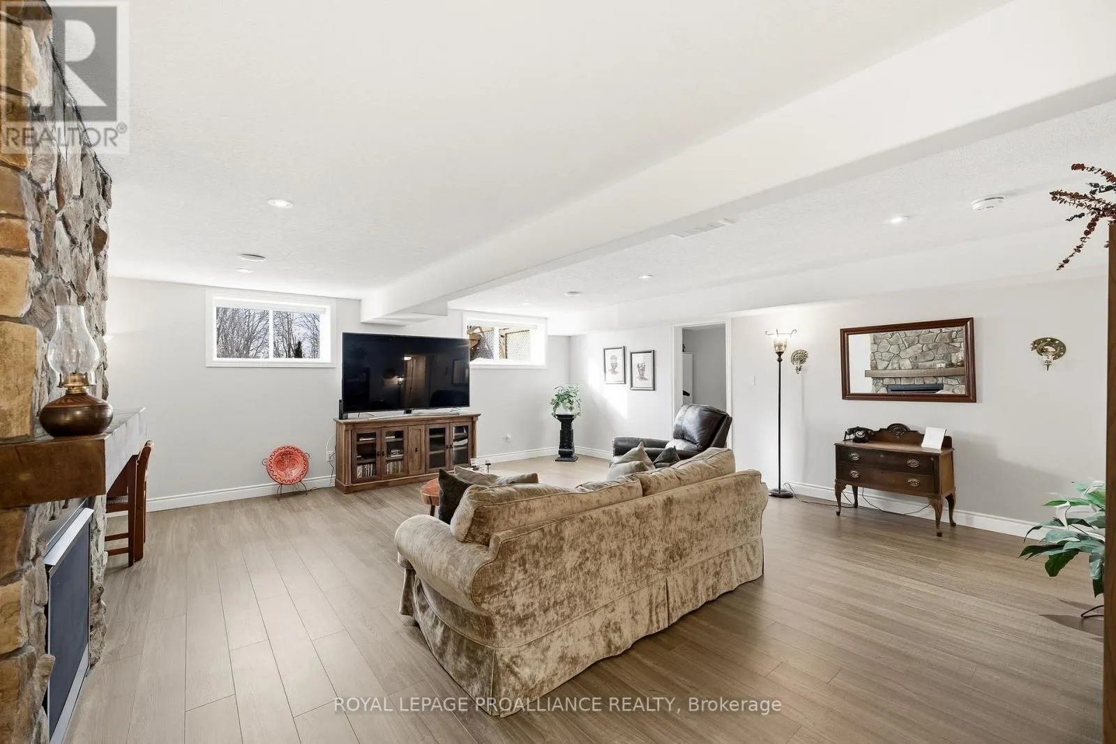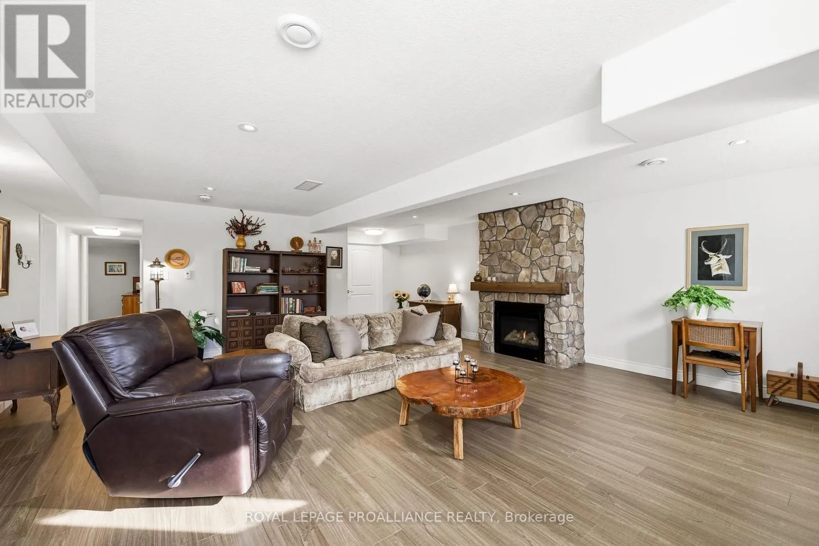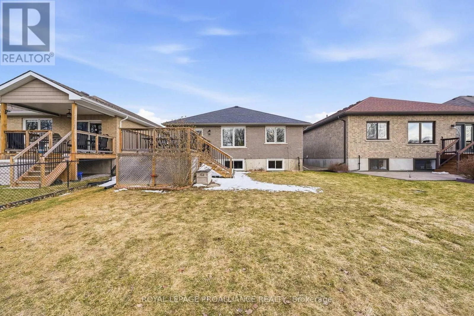 Cross Streets: Royal Gala Drive and Empire Blvd. ** Directions: Hwy 2 in Brighton to Empire Blvd to Royal Gala Dr to 76. Located in the lakeside community of Brighton and minutes from Presqu'ile Provincial Park, this well-kept bungalow is tucked into a friendly, established neighbourhood and offers a practical, comfortable layout with the space and finishes you are looking for. This all-brick and stone home is fully finished, designed for low-maintenance living, and shows pride of ownership throughout. The main level features a functional layout with two bedrooms, two full baths, and the convenience of main floor laundry. The heart of the home is airy and open-concept, featuring a bright living area, a dedicated dining space, and a beautifully appointed kitchen. With quartz countertops, a central island ideal for entertaining, and a desirable walk-in pantry, it strikes the right balance between style and functionality. Patio doors lead to the oversized deck overlooking mature trees and green space, offering both privacy and a natural backdrop that changes beautifully with the seasons. The primary bedroom is bright and inviting, complete with an upgraded ensuite featuring a walk-in shower and double sink vanity with quartz countertops. The fully finished lower level substantially expands the living space highlighted by the expansive family room centred around a beautiful stone fireplace, ideal for quiet evenings or hosting family and friends. This level also includes two additional bedrooms, a full bathroom, and a versatile flex room suited for a home office, gym, or additional storage. Completing the home is a spacious 1.5-car garage with plenty of room for a workbench or gear. At just 9 years old, this home is perfect for those looking to enjoy Brighton's lakeside walks, nearby parks, and close-knit community atmosphere without the worry of constant upkeep! (id:27476)