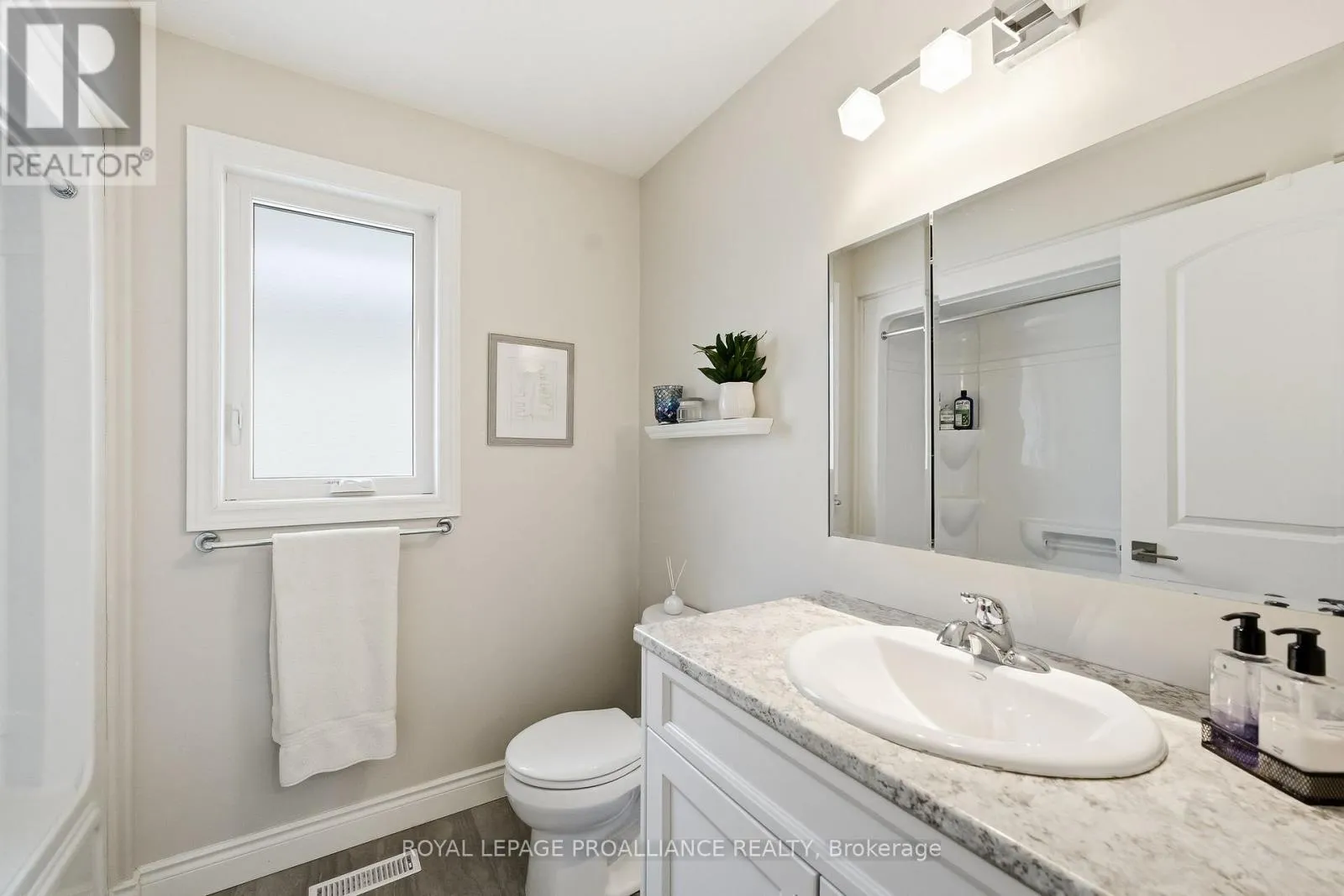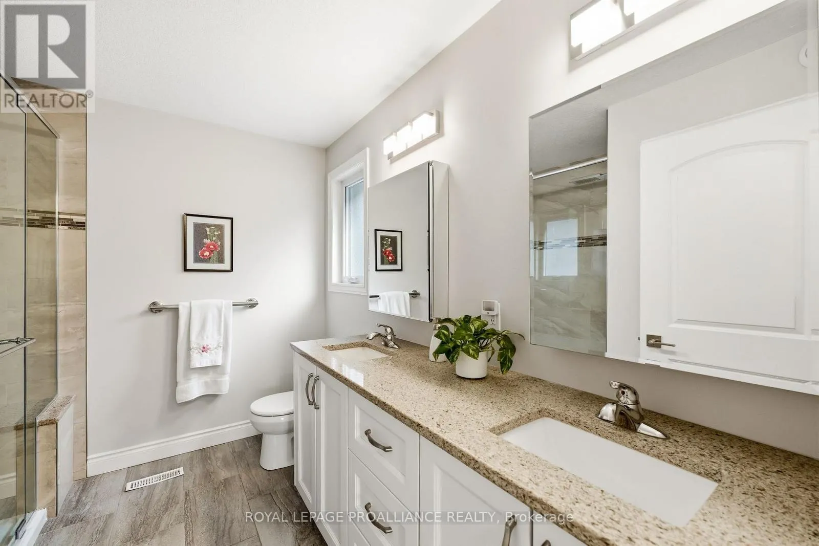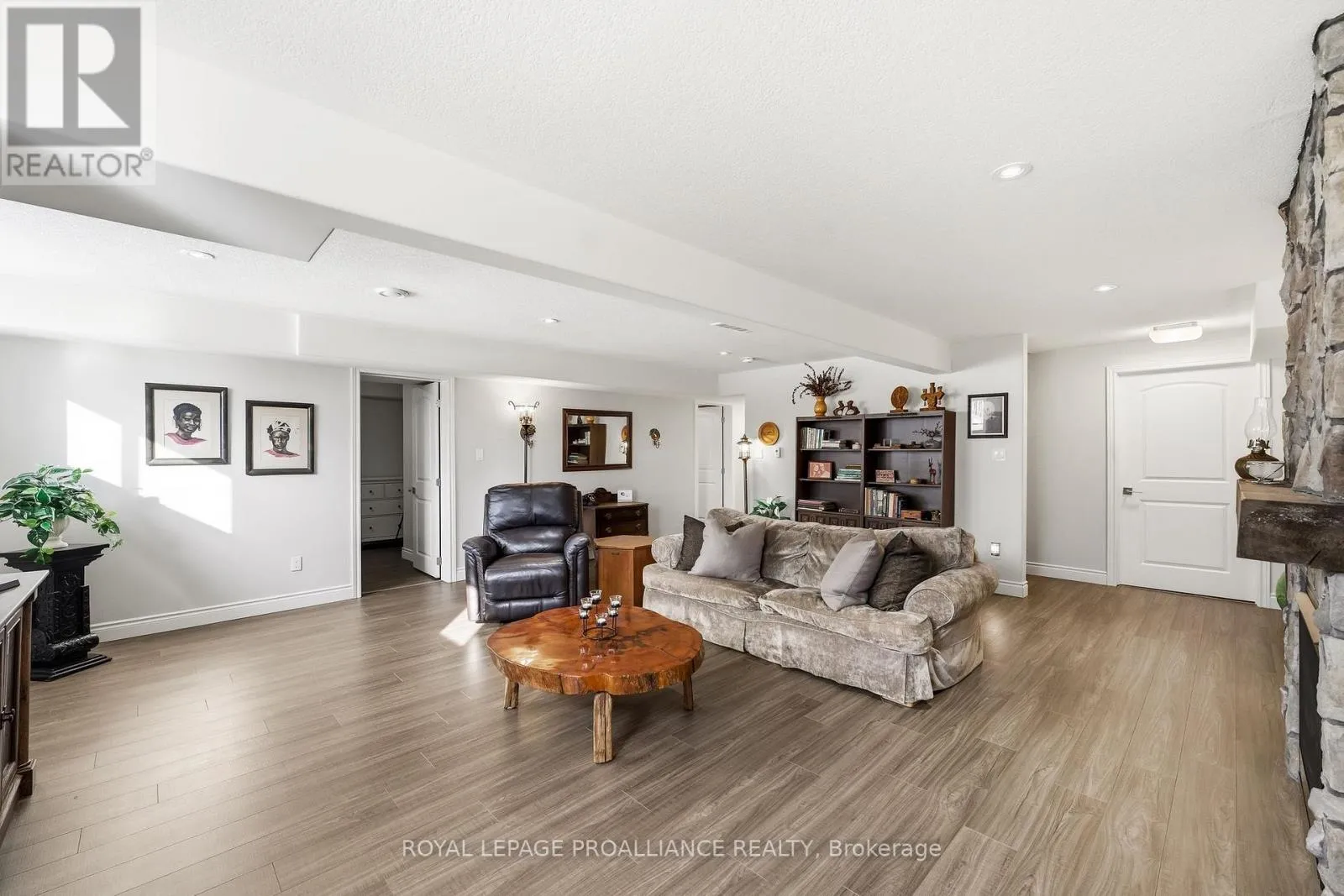 Cross Streets: Royal Gala Drive and Empire Blvd. ** Directions: Hwy 2 in Brighton to Empire Blvd to Royal Gala Dr to 76. Located in the lakeside community of Brighton and minutes from Presqu'ile Provincial Park, this well-kept bungalow is tucked into a friendly, established neighbourhood and offers a practical, comfortable layout with the space and finishes you are looking for. This all-brick and stone home is fully finished, designed for low-maintenance living, and shows pride of ownership throughout. The main level features a functional layout with two bedrooms, two full baths, and the convenience of main floor laundry. The heart of the home is airy and open-concept, featuring a bright living area, a dedicated dining space, and a beautifully appointed kitchen. With quartz countertops, a central island ideal for entertaining, and a desirable walk-in pantry, it strikes the right balance between style and functionality. Patio doors lead to the oversized deck overlooking mature trees and green space, offering both privacy and a natural backdrop that changes beautifully with the seasons. The primary bedroom is bright and inviting, complete with an upgraded ensuite featuring a walk-in shower and double sink vanity with quartz countertops. The fully finished lower level substantially expands the living space highlighted by the expansive family room centred around a beautiful stone fireplace, ideal for quiet evenings or hosting family and friends. This level also includes two additional bedrooms, a full bathroom, and a versatile flex room suited for a home office, gym, or additional storage. Completing the home is a spacious 1.5-car garage with plenty of room for a workbench or gear. At just 9 years old, this home is perfect for those looking to enjoy Brighton's lakeside walks, nearby parks, and close-knit community atmosphere without the worry of constant upkeep! (id:27476)