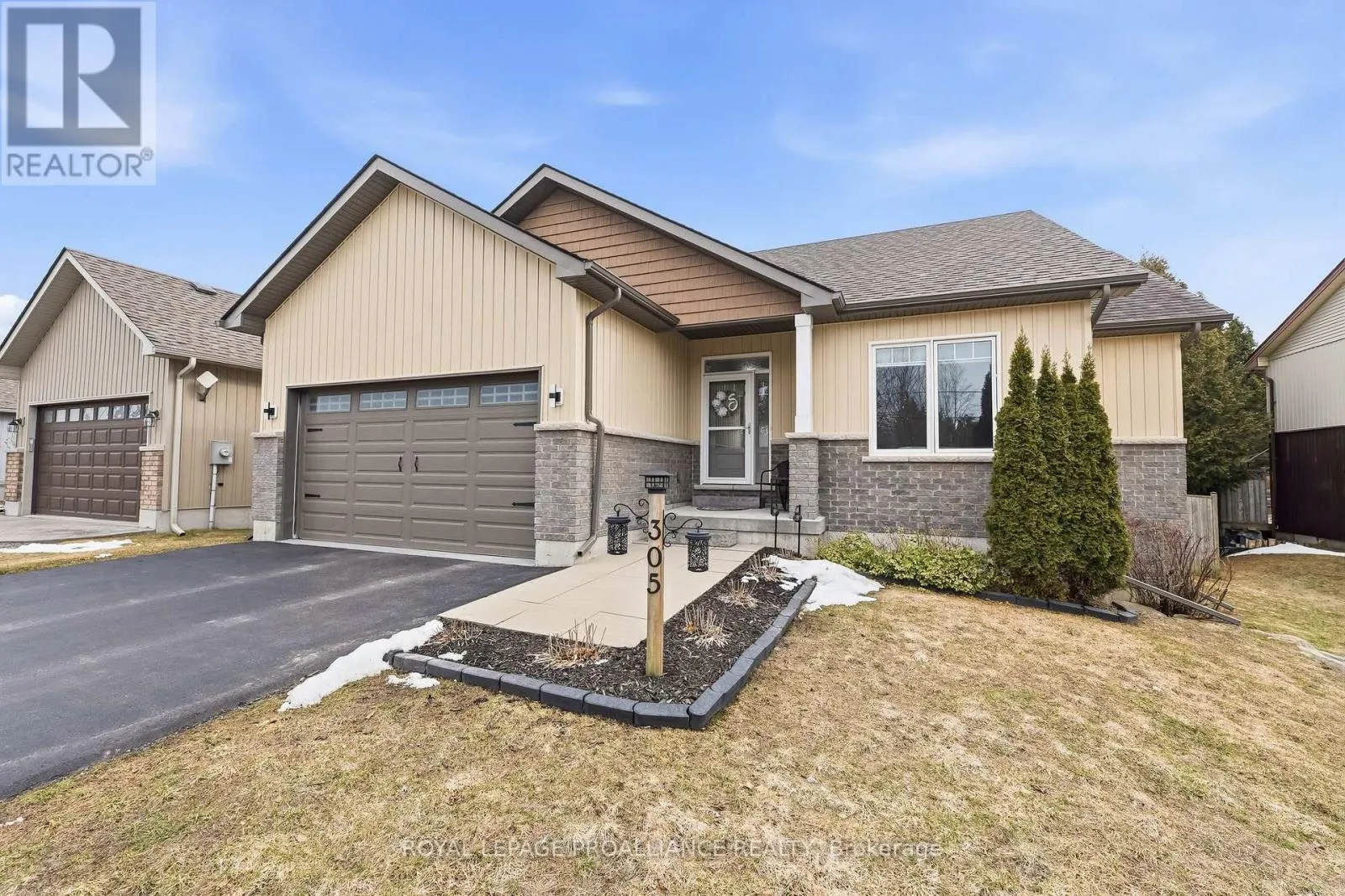 Cross Streets: Ontario Street/Raglan Street. ** Directions: Ontario Street to Raglan Street. 305 Raglan Street is nestled in one of Brighton's most sought-after locations, offering an active lifestyle right at your doorstep...just a short stroll or bike ride to Lake Ontario, waterfront dining and the breathtaking beauty of Presqu'ile Provincial Park! The moment you step into this beautiful bungalow, you'll be captivated by the natural light pouring in through expansive windows. This stunning home features almost 2600 sq ft of space with the main floor plan anchored by a chef's kitchen that offers a pantry, SS appliances, two-toned cabinetry, stylish backsplash & lighting, sit-up breakfast bar and a functional layout. The spacious living areas flow seamlessly, with access to the massive multi-tiered deck/patio in the fenced and landscaped backyard...the perfect space for relaxing with your morning coffee or alfresco dining under the stars. Retreat to the large Primary Bedroom, a peaceful sanctuary complete with a generous walk-in Closet and a private ensuite Bathroom. Two additional bedrooms and two more pristine bathrooms ensure ample space for family or guests. The full, mostly completed bright lower level offers incredible versatility and potential, providing the perfect canvas for a sophisticated home media room, private gym or workshop. A huge storage area to keep everything neat & organized and accessible main-floor laundry. A substantial two-car garage & generous paved driveway offer plenty of room for vehicles. Brighton provides a full complement of amenities and recreational options, including shopping, cafes, marinas, Recreation Centre, Curling Club, Music-In-The-Park weekly summer concerts, Tennis & Pickleball Courts and the YMCA. Easy 401 access for commuters, just under an hour to the Oshawa GO and 20 minutes to the VIA in Cobourg! Combining sophisticated style with proximity to all essential amenities, this proeprty represents a fabulous opportunity to secure a newer home that is ready to enjoy, both inside and out....JUST UNPACK AND UNWIND! (id:27476)
