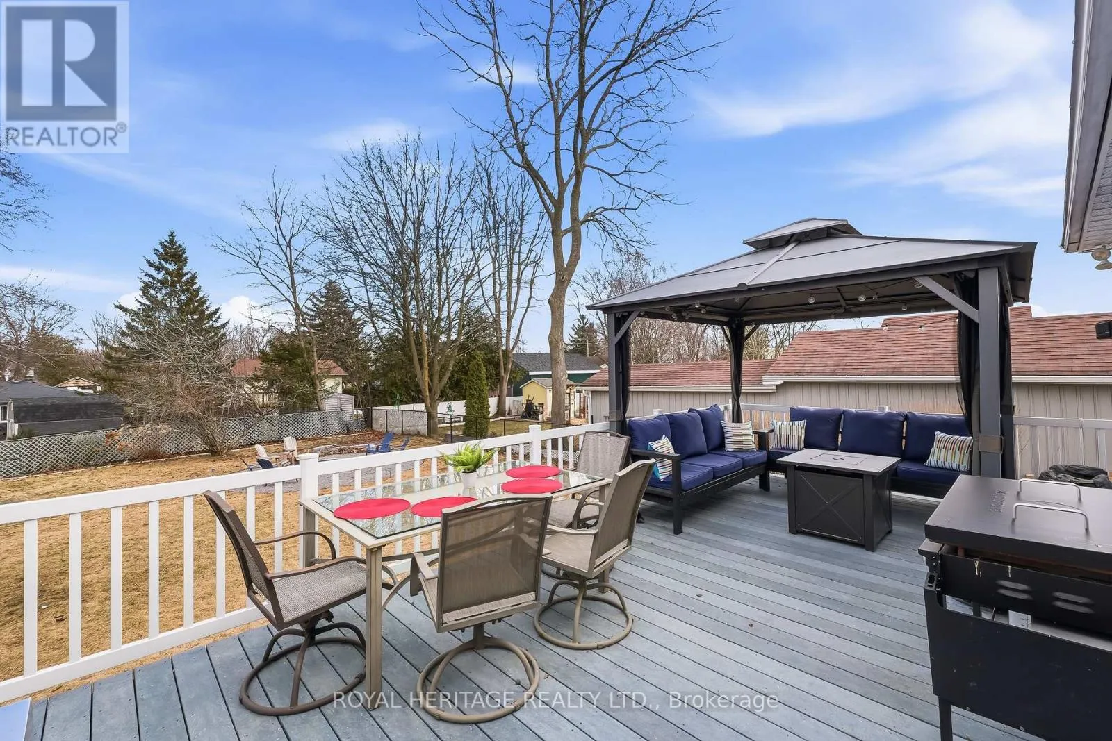 Cross Streets: Main St, Richardson St. ** Directions: From 401 take Exit 509, south on County Rd 30, west on Main St, south on Meade St. Welcome to this beautifully updated 2 bedroom, 2 bathroom bungalow in the heart of Brighton, perfectly located within walking distance to shopping, schools, downtown, restaurants, and much more. Just minutes away, you'll find stunning Presqu'ile Provincial Park offering trails, beaches, and camping for year-round enjoyment. Set on a large, level, partially-fenced lot, this home has seen many upgrades between 2024-2026, including a fully finished basement completed in 2026, and features carpet-free living throughout. Inside, you'll love the bright and inviting living room with a striking feature wall and electric fireplace, as well as the spacious kitchen with a large island, ideal for entertaining. The dining area offers patio doors leading to a huge composite deck with a gazebo and aluminum railings, overlooking a private backyard and firepit area - perfect for relaxing or hosting guests. The main floor includes a generous primary bedroom with double closets, while the original second main-floor bedroom is currently used as a dining room and can easily be converted back. Downstairs, enjoy a warm and cozy rec room, a 3-piece bathroom, and a large additional bedroom, perfect for guests. A separate side entrance with private foyer lends the lower level to a possible in-law suite. An attached garage and a quiet, mature neighbourhood complete the package. Blending the charm of a mid-century bungalow with modern finishes, this home is an excellent opportunity for first-time buyers or those looking to downsize. (id:27476)