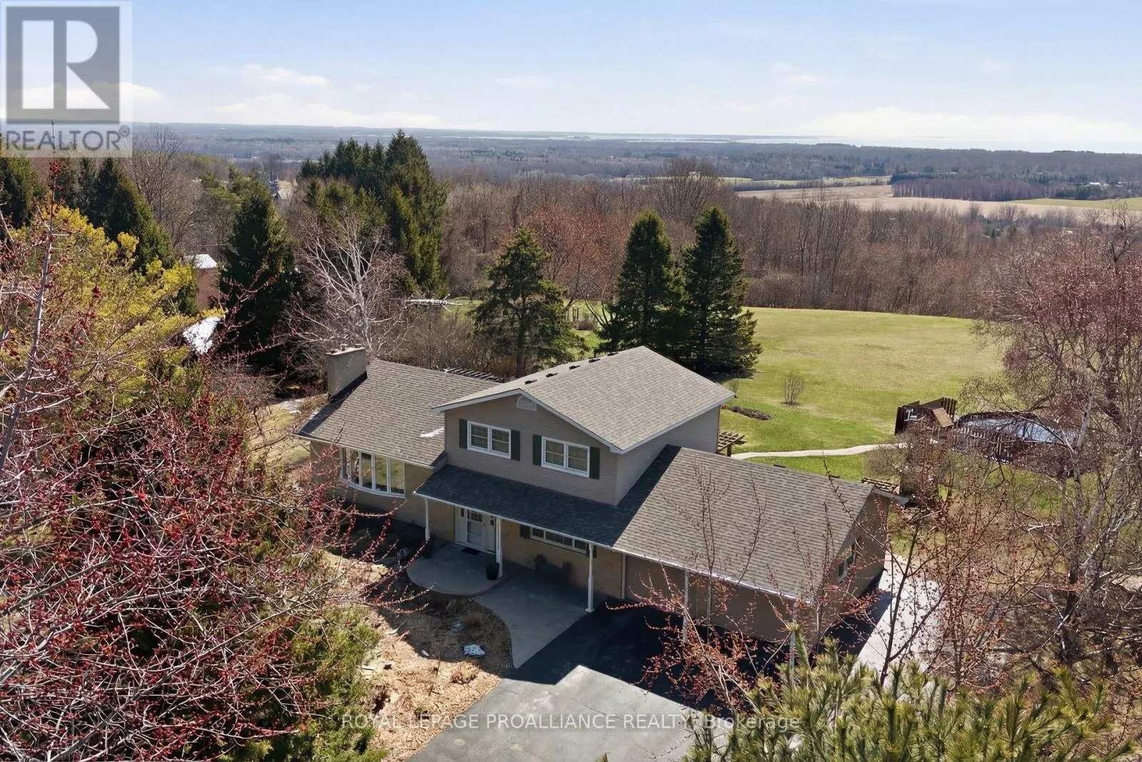 Smith Street and Scriver Road Lovingly cared for & beautifully updated, with stunning panoramic views of Lake Ontario & Presqu'ile Bay, this 3 bed 2.5 bath family home is the ideal destination for anyone looking for turn-key country living, only moments to the shops & schools of the charming town of Brighton. Paved, treelined driveway leads to the beautifully private 2.8 acre lot featuring a large vegetable garden, salt water above ground pool & detached, fully insulated shop with wood stove & attached driveshed. Perfect for hobbyists & storing outdoor equipment. Split level layout is ideal for busy family life & entertaining. Step up into the sun-filled kitchen showcasing hardwood cabinetry & task island with lake views. A spacious dining area with patio door to the elevated deck with pergola offers plenty of space for big family dinners indoors & out. Peaceful living room with gas fireplace & picture window overlooking mature trees completes this level.3 bedrooms on the upper level include a primary suite with walk-in closet, renovated 3-piece ensuite, & private balconette with stunning lake views. 2 additional bedrooms share a large, recently updated, family bath with built in storage & clever water closet division. Perfect for sharing on busy mornings. Tiled back door entrance with handy 2pc bath ideal for keeping busy days organized & to seamlessly enjoy the outdoors. Generous ground floor family room offers cozy family lounging & bonus area for a home office or play area. Lower level rec room with gas stove- great space for older kids- & laundry area with walk-up to the backyard- ideally configured for shaking off outdoor fun. Peace of mind & convenience with a whole home GenerLink system, natural gas service & Bell Fibe internet available. Stunning views, a lovingly updated family home & a highly sought-after location, this idyllic, turn-key property is where your country-living dreams come into focus. Feel at Home on Smith St. (id:27476)