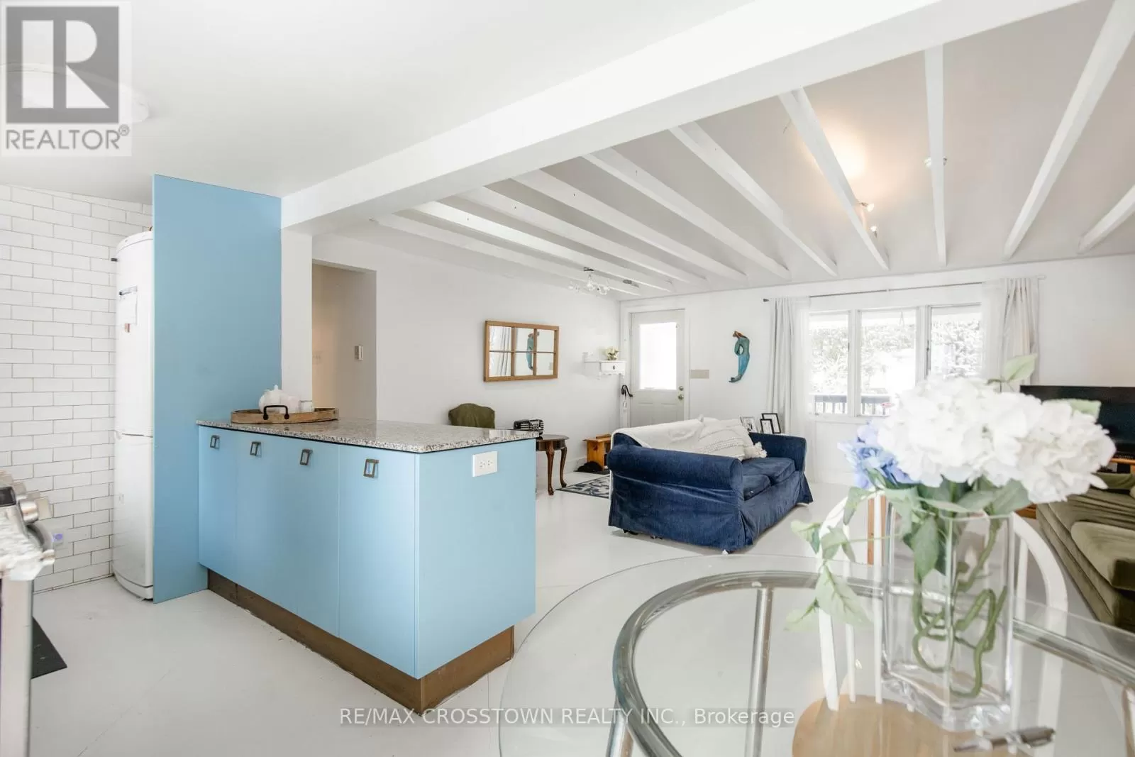Cross Streets: Thorah Park Blvd / Lake Ridge Rd. ** Directions: Thorah Concession 1 & Hwy 48. this is your front-row seat to breathtaking sunsets every day. The expansive private yard spans 166.36 feet in depth, framed by hedges for seclusion while opening at the back to showcase stunning lake views. Mature gardens add natural beauty throughout the property. A charming boathouse and waterside deck provide the perfect spot to take in the scenery and enjoy life by the water. The full, finished Bunkie, complete with heat and hydro, offers a versatile additional living space whether you envision it as a cozy guest suite, a private retreat, or a relaxing home office. Plus, an additional outbuilding, currently used as a small art studio, offers a peaceful workspace with inspiring views right over the lake. This inviting 2-bedroom, 1-bathroom waterfront bungalow in Beaverton offers serene water views from both the great room and kitchen, creating a picturesque and peaceful living space. The primary bedroom features its own sunroom with walkout access to the back deck and water perfect for quiet mornings. This is your opportunity to embrace lakeside living with endless possibilities. Don't miss this slice of paradise! (id:27476)
