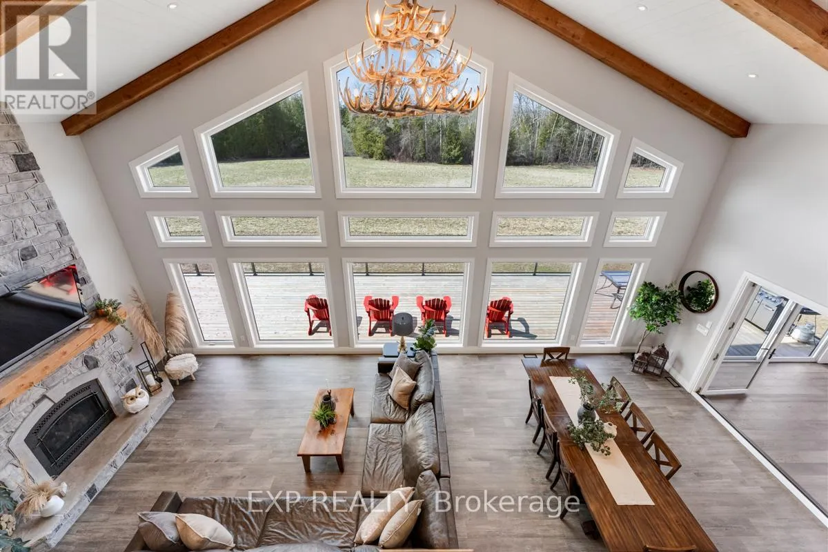 Concession Rd 8 & Highway 7 Immerse Yourself In Nature On Approximately 67 Acres (17 Acres Cleared Land And 50 Acres Forest) Of Private Land, Boasting A Custom-Built 4 Bed, 4 Bath Bungaloft Constructed In 2020. Enjoy The Spacious 2100Sqft Main Floor Complemented By A 400Sqft Loft, Featuring A Grand Main Room With A 24Ft High Ceiling And A Charming Stone Gas Fireplace, All Heated By Radiant Heat Throughout The Main Floor, Basement, And Garage. Gourmet Kitchen: Indulge Your Culinary Desires In The Kitchen Adorned With A Large Center Island, Bosch Cooktop, And Leathered Granite Countertops, Complemented By Top-Of-The-Line SS Kitchenaid Dual Convection And Microwave With A Lower Oven, Alongside An Oversized SS Fridge. Witness Breathtaking Sunsets From The West-Facing Wall And Enjoy A Serene Ambiance In The Amazing Sunset-Bathed Primary Bedroom And Loft Overlooking The Main Room, Accentuated By A Stunning Window Wall. Delight In The Convenience Of A Three-Season Sunroom With A Walk-Out To The Deck And Beautifully Finished Basement Offering A Woodburning Fireplace And Fabulous Additional Living Space. Parking For Over Fifty Vehicles In A Side Drive, Plus Parking In Front With Access To Spacious Three Car Garage. Power For Side Parking Area, Wiring For A Generac System, And Enhanced Security With 5 Exterior Wifi Cameras And A PVR Camera System. Septic And Well Are Clear Of The Back Yard Allowing Plenty Of Room For A Pool Or Use The Existing Hot Tub Wiring ($4,000) And Install A Hot Tub! Enjoy the Tax Benefits Of RU Zoning! (id:27476)