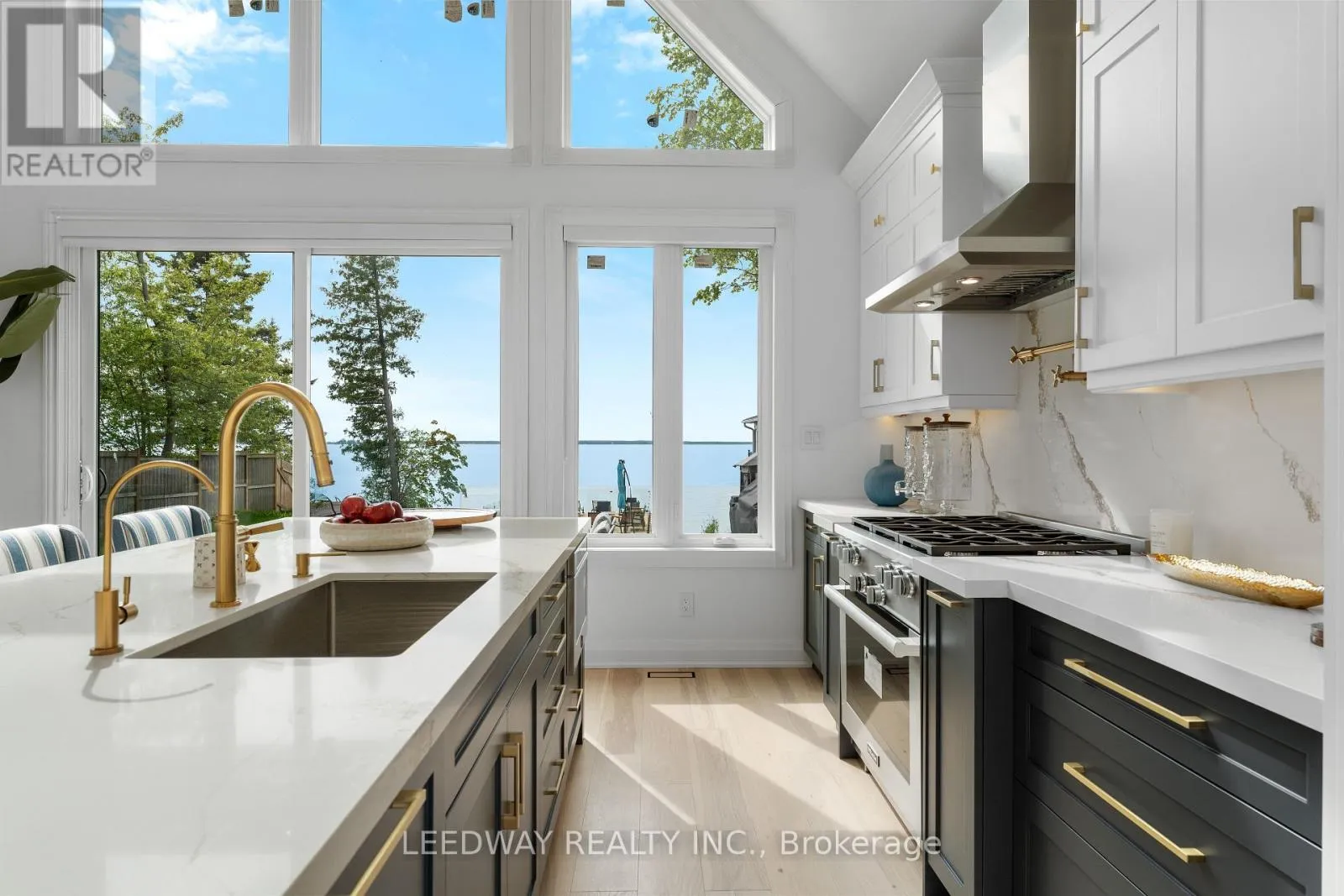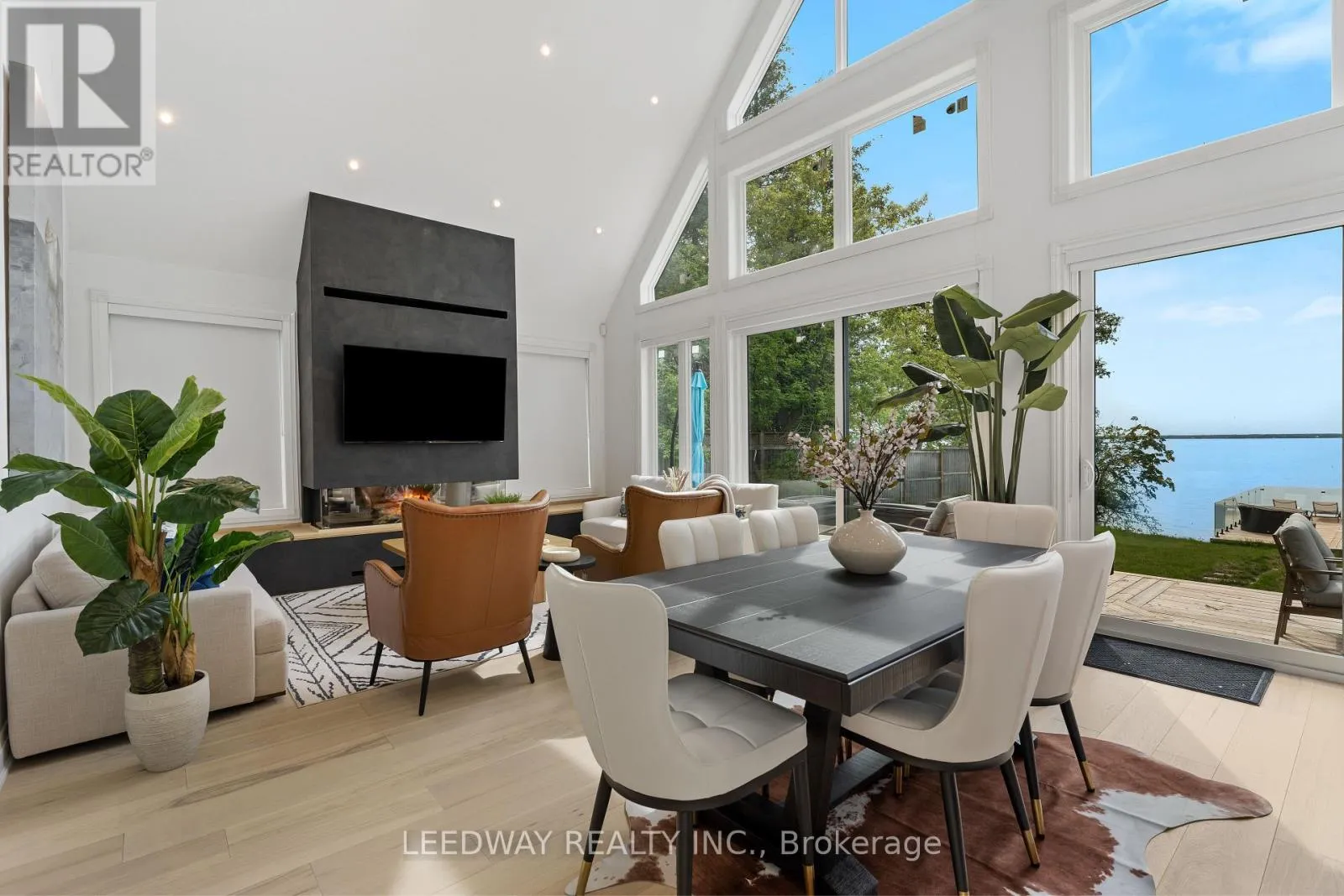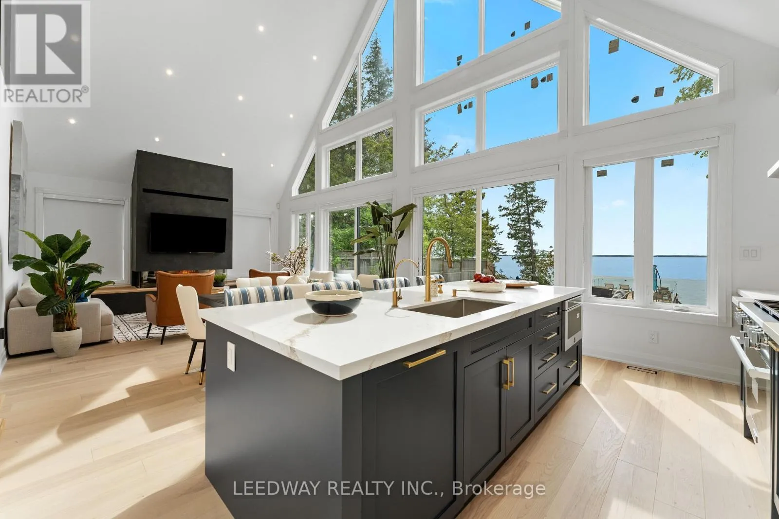 Cross Streets: Durham 23 to Thorah Park Blvd. ** Directions: Proceed on HWY 48 to HWY 23 north and exit onto Thorah Park Blvd. Looking for a waterfront property to lease? Don't miss out on this one-of-a-kind Custom-built waterfront property with boathouse! Walk through the beautifully stained fiberglass front door into the spacious foyer accented by 48" porcelain tiles. The Foyer opens out to the awe-inspiring great room/kitchen combo filled with natural sunlight pouring through the floor-to-ceiling high windows. Great room boasts soaring 24ft vaulted ceiling and wood cladded ridge beam! A 3-sided 5ft Marquis fireplace dressed in Marrakesh Wall paint complements the great room. Chef's custom kitchen boasts high quality quartz counters and backsplash, high-end appliances, large 4x9ft center island, and a slide-out and a walk-in pantry. Main floor offers 2 ample sized bedrooms, laundry, spa-inspired 4pc washroom & access to garage. Principal bedroom is equipped with a luxurious 5pc ensuite, walk-in closet with French doors and custom closet organizer. The second bedroom has a 3pc ensuite. Both the bedrooms have huge custom designed glass panes offering magnificent views of the lake! Walking out of the great room 8' tall sliding doors, you are greeted with a massive deck with a diamond insignia. The deck is equipped with a built-in gas BBQ with an outdoor fridge. A set of cascading stairs takes you down to the lush back yard and second massive diamond deck. The second deck sits atop the 16'x30' dry boathouse which has a massive 11' high door and a 60-amp subpanel. The boathouse is drywalled and finished. The fully finished basement includes an entertainment room and an exercise room. Other notable highlights: electric car charger rough-in in garage, water treatment equipment, water softener, pot lights throughout, high end Riobel plumbing fixtures, smart thermostat, alarm system (monitored option), and a camera surveillance system. (id:27476)
