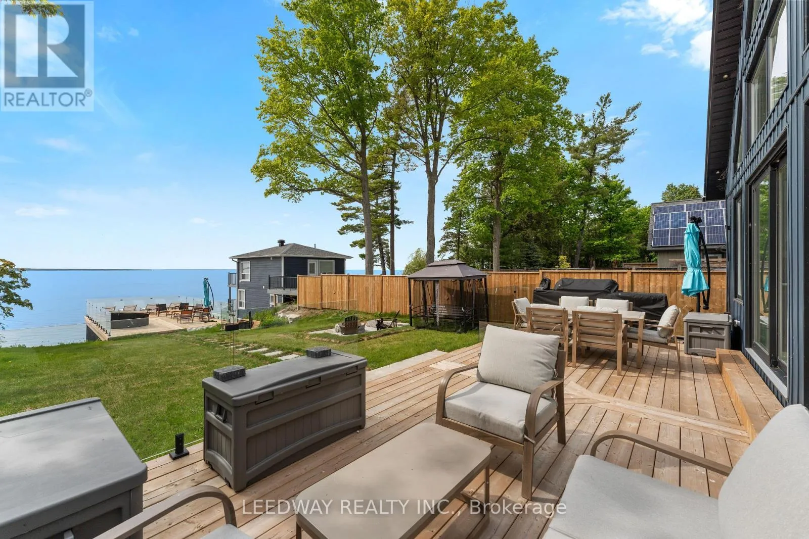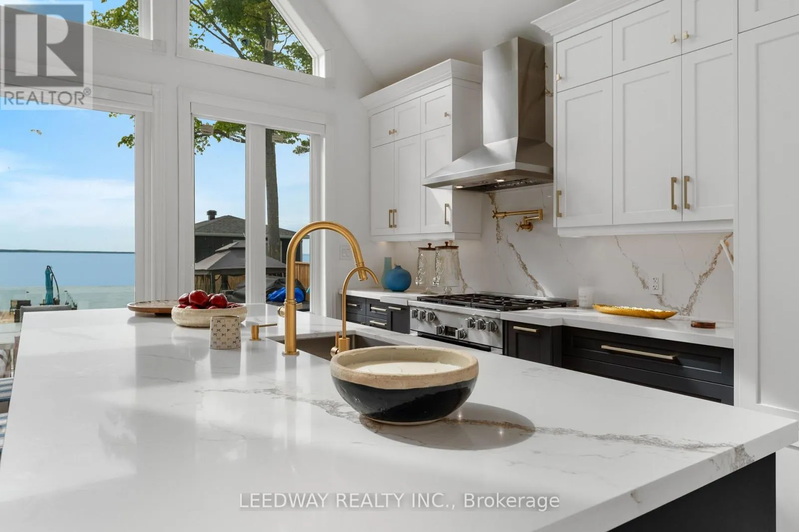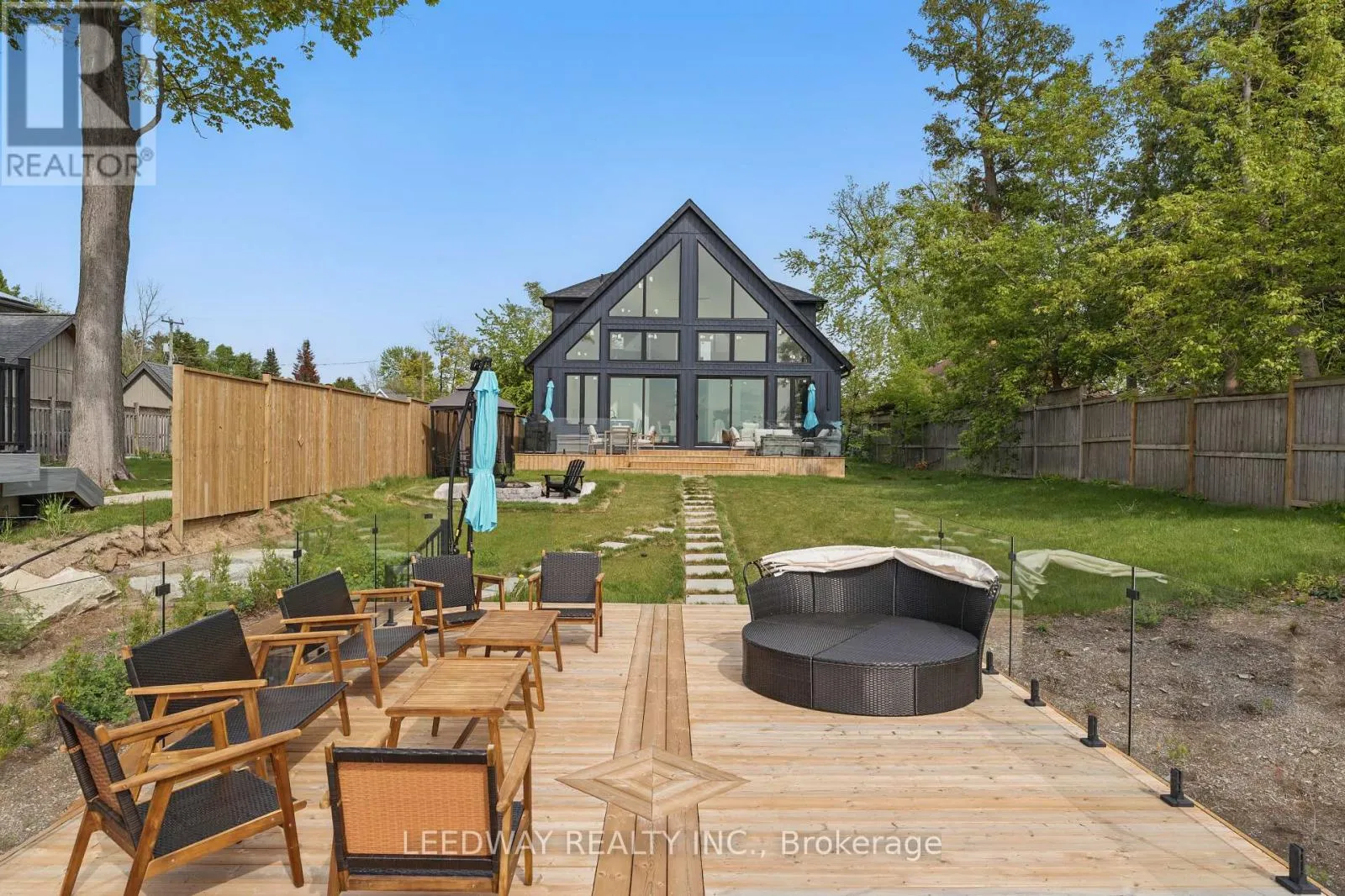 Cross Streets: Durham 23 to Thorah Park Blvd. ** Directions: Proceed on HWY 48 to HWY 23 north and exit onto Thorah Park Blvd. Looking for a waterfront property to lease? Don't miss out on this one-of-a-kind Custom-built waterfront property with boathouse! Walk through the beautifully stained fiberglass front door into the spacious foyer accented by 48" porcelain tiles. The Foyer opens out to the awe-inspiring great room/kitchen combo filled with natural sunlight pouring through the floor-to-ceiling high windows. Great room boasts soaring 24ft vaulted ceiling and wood cladded ridge beam! A 3-sided 5ft Marquis fireplace dressed in Marrakesh Wall paint complements the great room. Chef's custom kitchen boasts high quality quartz counters and backsplash, high-end appliances, large 4x9ft center island, and a slide-out and a walk-in pantry. Main floor offers 2 ample sized bedrooms, laundry, spa-inspired 4pc washroom & access to garage. Principal bedroom is equipped with a luxurious 5pc ensuite, walk-in closet with French doors and custom closet organizer. The second bedroom has a 3pc ensuite. Both the bedrooms have huge custom designed glass panes offering magnificent views of the lake! Walking out of the great room 8' tall sliding doors, you are greeted with a massive deck with a diamond insignia. The deck is equipped with a built-in gas BBQ with an outdoor fridge. A set of cascading stairs takes you down to the lush back yard and second massive diamond deck. The second deck sits atop the 16'x30' dry boathouse which has a massive 11' high door and a 60-amp subpanel. The boathouse is drywalled and finished. The fully finished basement includes an entertainment room and an exercise room. Other notable highlights: electric car charger rough-in in garage, water treatment equipment, water softener, pot lights throughout, high end Riobel plumbing fixtures, smart thermostat, alarm system (monitored option), and a camera surveillance system. (id:27476)