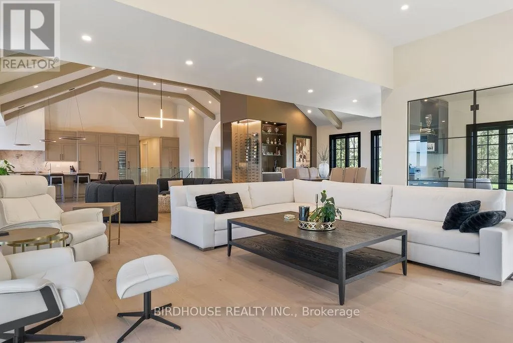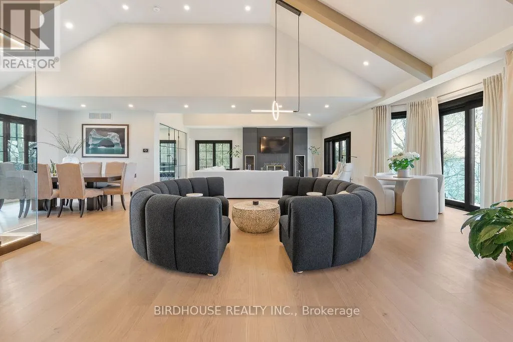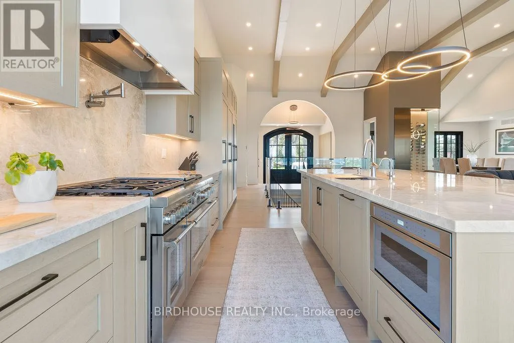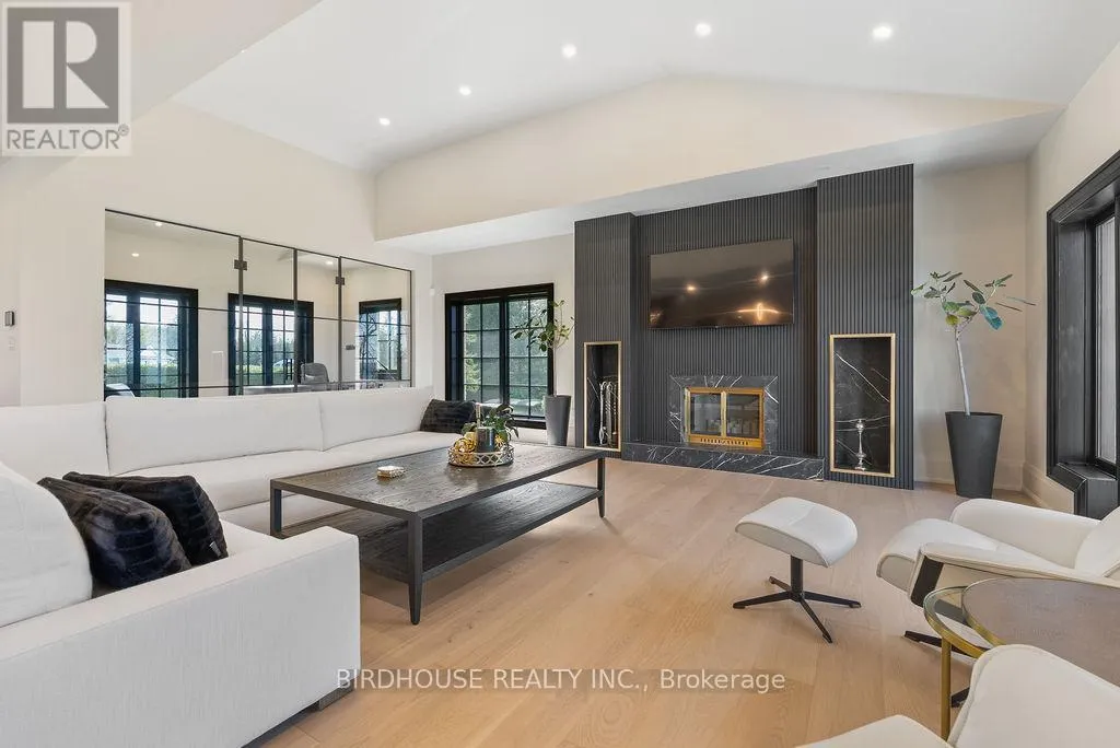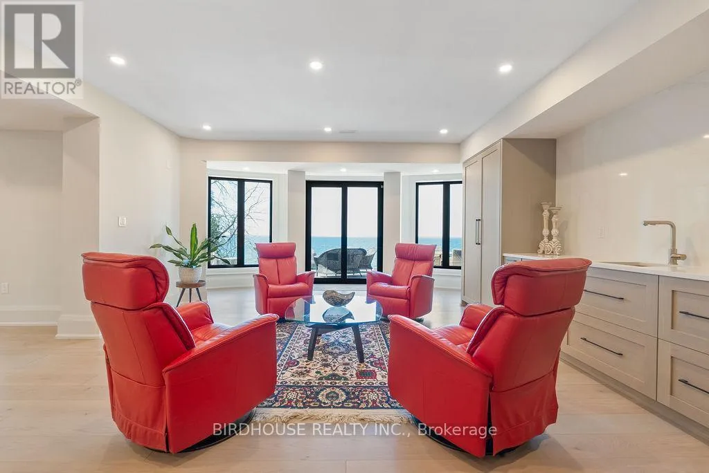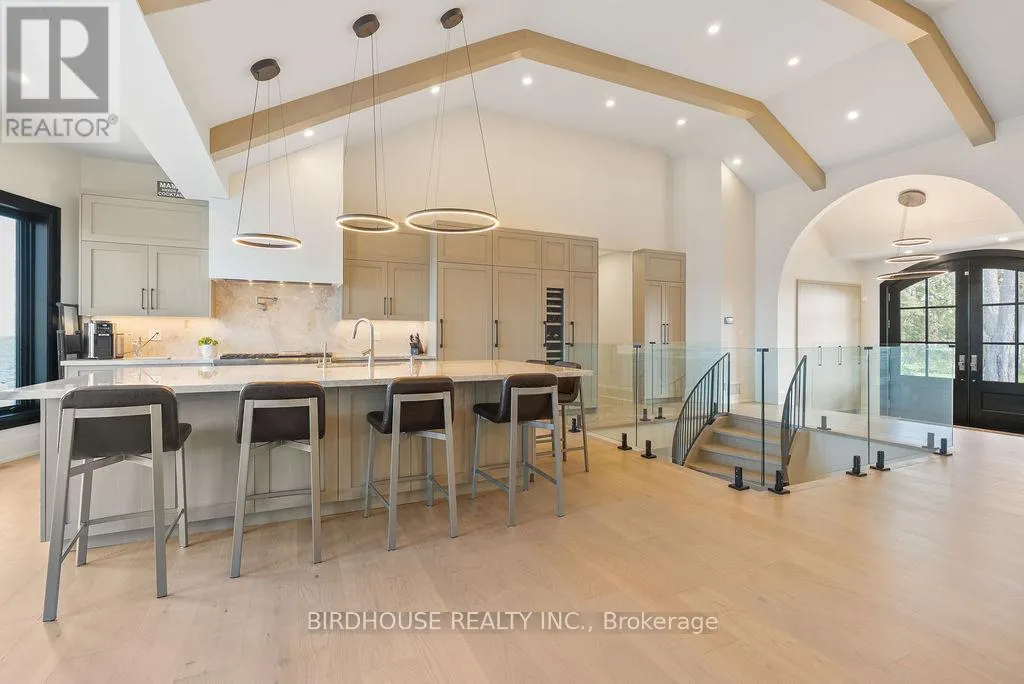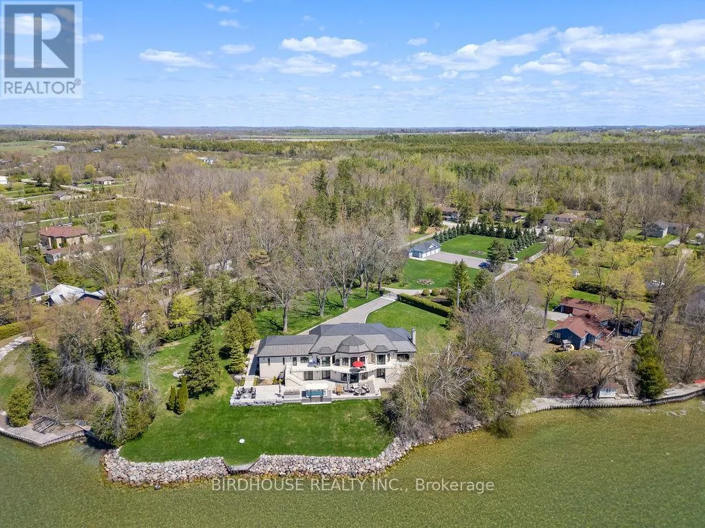 Maple Beach Road & Garden Gate Exquisite waterfront estate with 174 ft of frontage on Lake Simcoe. Stunning panoramic sunset views! Masterfully renovated in 2023, this French country-style bungalow boasts over 6000 sq ft of finished living space, 5 bedrooms, 6 bathrooms & an oversized attached garage. Designer interior finishes such as custom oak swept staircase & oak beams, complete Thermador appliance package, gorgeous amberwood exterior doors, marble kitchen countertops & backsplash, Napa Valley kitchen & bath cabinets plus white oak engineered hardwood flooring throughout! The exterior landscaping is expansive & thoughtful including a wrought iron security entry gate & outdoor LED lighting. Complete privacy & year-round living. (id:27476)