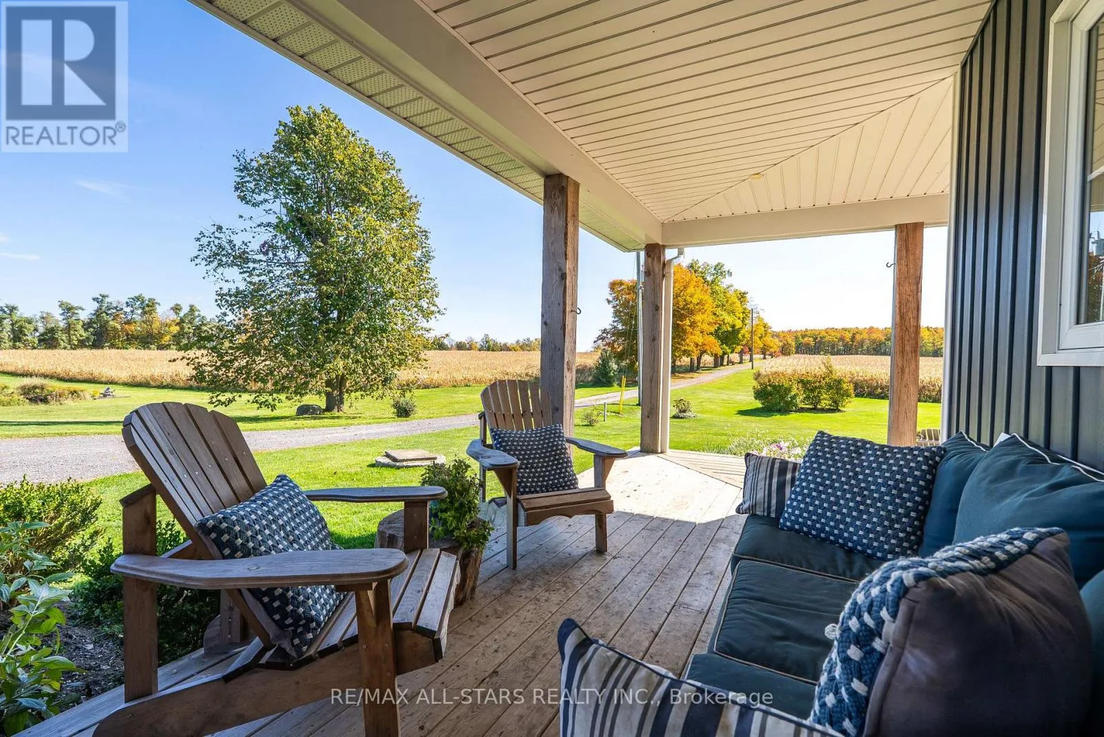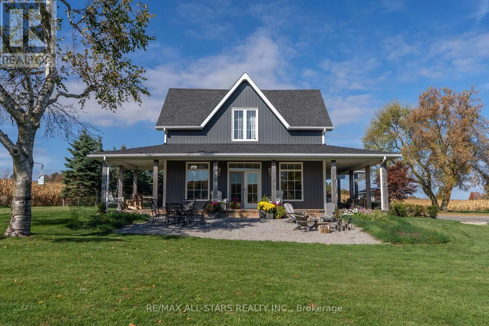 Cross Streets: Highway 12 and Durham 13. ** Directions: North on Hwy 12, East on RR13. Welcome to The Hideout - The renovated 4 Bedroom farmhouse of your dreams w/ attached 1 Bedroom suite! Tucked away just outside of Uxbridge and Port Perry, this fully renovated 19th Century farmhouse sits on 1.91 Acres (per MPAC) w/ sweeping views. Watch sunrise to sunset through oversized windows (2018*) and feel immersed in a private, tranquil retreat setting - especially when the crops rise and The Hideout truly earns its name. Expertly finished, this 3,620 sqft (per MPAC) home is relaxed, inviting to match the effortless ease of the countryside surrounding it while still providing stylish and luxurious finishes. Enter into a spacious foyer w/ heated tile flooring, attached to a self-contained mudroom/dogroom - perfect for kids cubbies, sports gear or other multi-use purposes. A versatile, comfortable country kitchen combines the perfect balance of classic design, contemporary aesthetics and functionality w/ quartz counters and a large centre island overlooking the dining space. The open concept 17 ft x 21 ft living room overlooks the wraparound porch and property including expansive views of the nearby pond, fields and maple lined laneway. A cozy den offers flexible use as a family room, library, office or main floor primary suite w/ a walkout to the fully fenced side yard. Upstairs, the primary bedroom offers stunning East, South, and West views, along w/ an ensuite with heated tile flooring. All bedrooms are generously sized, each offering its own unique view of the peaceful surrounding countryside. A private, self-contained addition serves as a legal accessory dwelling unit ideal for in-laws, young adults starting out or long term guests - perfect for those who will enjoy the close, yet separate, living quarters and the full basement offers untapped potential - expand the main house or enlarge the in-law suite. Outside, enjoy the pea gravel patio, rows of peonies and the 1,000 sqft wraparound porch. Updates: 200 AMP (2019*), Roof (2015*) *Per prior Listing (id:27476)