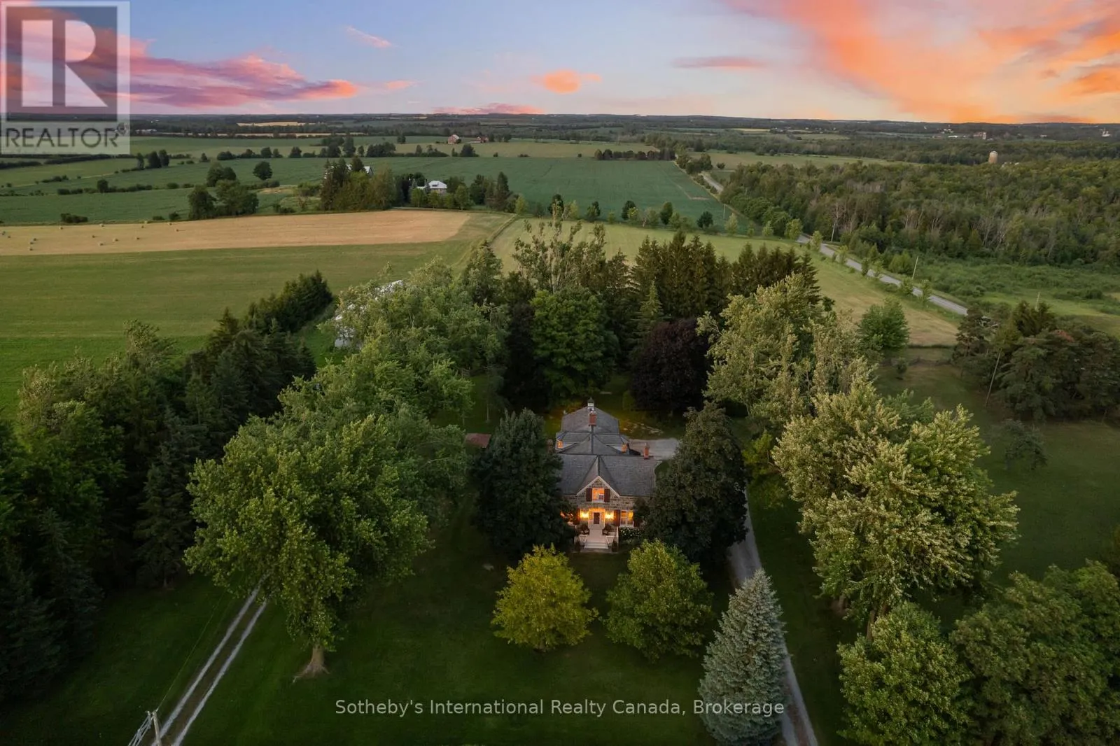 Cross Streets: Brock Road & Brock Con 9. ** Directions: Go east from Lake Ridge Rd on Brock Concession Rd 9. Turn North (left) on Brock Rd. First driveway on your right. Welcome to Stonecroft Farm a rare and storied estate where history, architecture, and natural beauty converge in timeless harmony. Built in 1861 by the master stonemasons who crafted the Rideau Canal, this exquisite Ashlar Stone farmhouse is a living work of art. The home's restoration was the final project of renowned Canadian heritage architect Peter John Stokes, who thoughtfully reimagined the chimneys, Scotts Bay dormers, front porch, and crown mouldings to honour its origins with enduring elegance. Set on just over 50 acres of rolling countryside with 39 acres currently under cultivation, Stonecroft offers both income potential and rural serenity. Just minutes to the charming communities of Sunderland and Uxbridge, you're close to amenities while tucked into a world of your own. With 4+1 bedrooms and 2 bathrooms, the residence exudes character and peace. The dormered upper bedroom, once two rooms, is flooded with natural light and treetop views. Each window frames breathtaking scenes, fruit trees, lush hedges, and uninterrupted vistas. The handcrafted black walnut staircase railing, sourced from a tree once rooted on the land, is just one of many bespoke details that speak to the soul of the home. Surrounded by 12-foot privacy hedges and expansive gardens, this is a retreat for those who crave stillness, tradition, and natural wonder. Have morning coffee on the side porch, as the seasons shift and wildlife stirs, is nothing short of a gift. Stonecroft has borne witness to a legacy of memories: children born within its walls, brides descending the grand staircase, winter sleigh rides, and carefree summers chasing kites through fields. With original millwork, a classic cedar shake roof, copper eaves & downspouts, wide-plank wooden floors, and ingenious storage spaces throughout, this heritage home offers not just space but a sense of provenance. Stonecroft doesn't just hold memories it welcomes you into its lineage. A home where you don't just live, you belong. (id:27476)