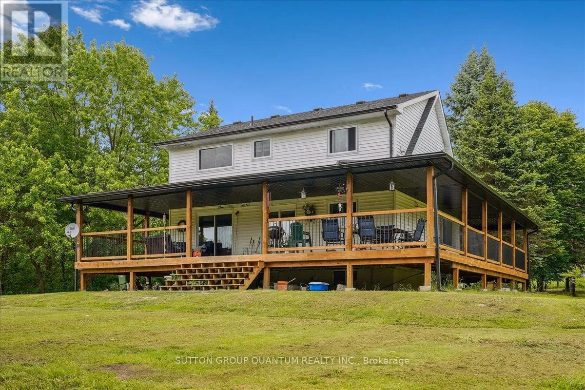 Hwy 12 / Reg Rd 13 Charming 10-Acre Country Escape Awaits! Escape the hustle and bustle of city life and discover this beautiful 10-acre hobby farm, offering eastfacing exposure on a year-round accessible road. This country home features an inviting wrap-around covered deck, perfect for enjoying peaceful mornings and relaxing evenings. Inside, the spacious living and dining area boasts hardwood floors and blinds for added privacy. The large eat-in kitchen, complete with a sliding door walkout, seamlessly blends indoor and outdoor living. Working from home is a breeze with the main floor den, providing a quiet space to focus. Upstairs, you'll find three bedrooms, one of which is currently utilized as a laundry room for added convenience. The basement presents the possibility of a fourth bedroom along with a recreation room, ideal for entertaining or unwinding. The level yard offers ample opportunities for gardening whether you want to plant your favorite flowers or start a vegetable garden and is perfect for pets to roam freely. Set back from the road, this property provides privacy and seclusion, making it the perfect retreat from city life. Don't miss your chance to own this charming property! (id:27476)