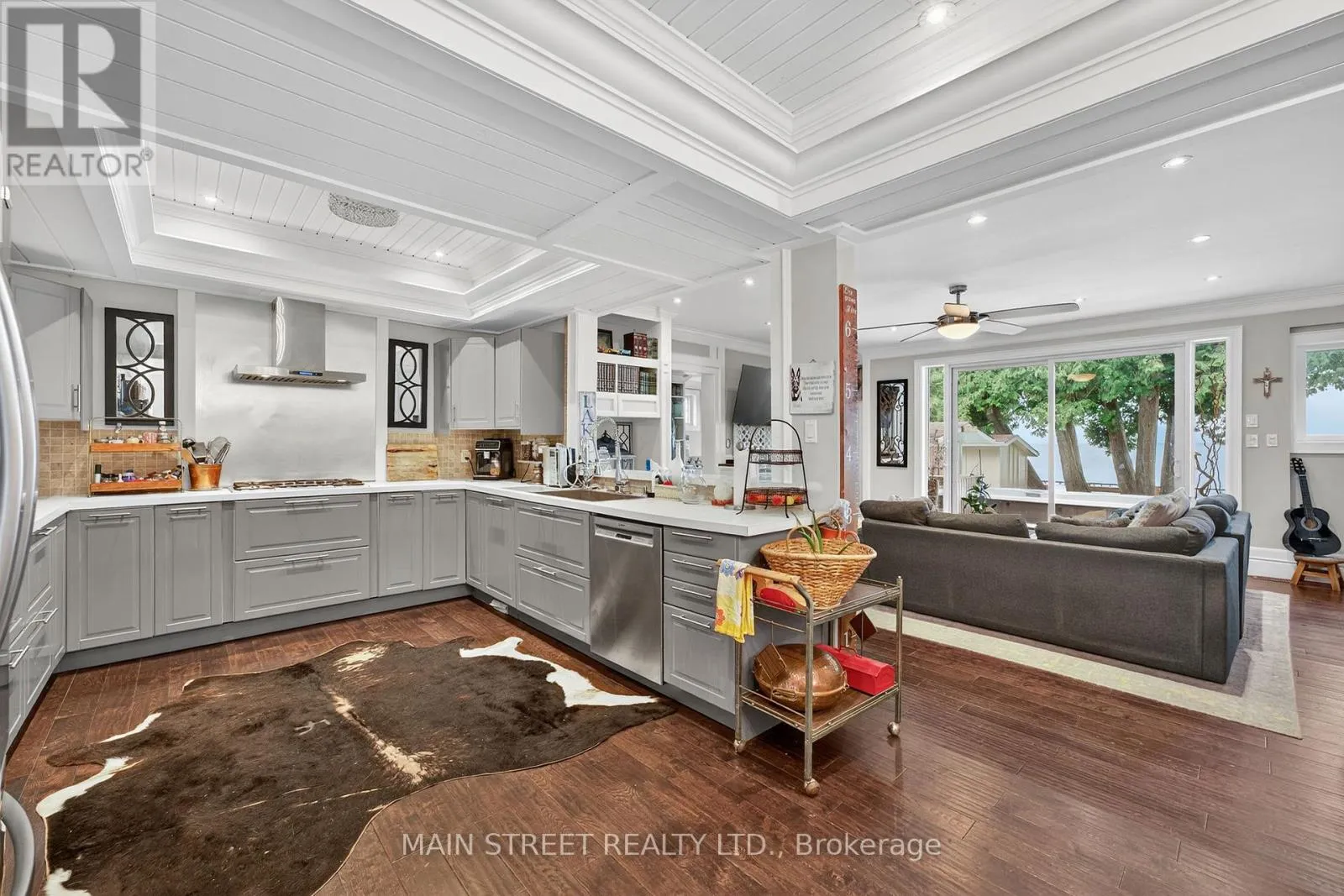Cross Streets: Conc 5 And Cedar Beach Rd. ** Directions: Turn Onto Cedar Beach Rd from Thorah Concession Rd 5. Located on the Calm Shores of Lake Simcoe, This Stunning Turnkey Home Offers 3 Bedrooms & 2 Full Baths, Thoughtfully Renovated w/ Many Modern Finishes! Enter Into Your Fully Fenced Yard w/ Private Lawns, Garage & Shed, Oversized Front Deck Perfect for Morning Coffee & Sunrises! Spacious Main Foyer, Cedared Ceiling Living Room w/ Gas Fireplace & Large Windows! Chef's Kitchen Overlooks Stunning Lake Simcoe & Open Concept Family/Dining Room, Quartz Counters, Crown Moldings, S/S Appliances, Pull-outs and More! Main Floor Laundry w/ Access to Backyard & 3 pc. Bath. Floating Staircase Invites You to 2nd Floor Serenity w/ Oversized Primary Floor! Features Private Deck & Sitting Room, Bonus Nursery/or Soon to be Walk-in Closet w/ Incredible 6pc. Ensuite w/ Double Sinks, Stand Alone Tub & Shower, Bidet & More! Backyard is a Complete Masterpiece w/ Custom Deckings, Swim Spa w/Built-in Swim-up Bar, Sep. Sauna, Treed 2 Tiered Deck w/ Stairs Down to Beach & 100ft. Dock w/ Large Patio & Slide, Sandy Walkout & Great Fishing! Custom Exterior Lighting Sets The Evening Ambiance, While Enjoying Daily Sunsets Over the Lake! Loads of Upgrades & Custom Finishes! Close to Town, School, Shopping, Restaurants & More! (id:27476)