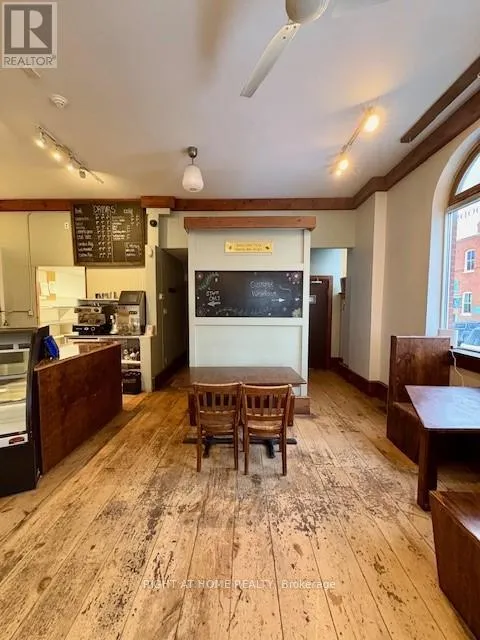 Cross Streets: Cameron St & Laidlaw St. ** Directions: Heading north on Highway 12, go east (right) on Regional Road 12 (it becomes Cameron St. once you get into the town of Cannington. If heading north on Highway 2 (Simcoe), go west (left) on Regional Road 12. Highly visible street-level space at Cannington's main downtown intersection, ideal for caf, food, or service-oriented businesses seeking a turnkey opportunity. Zoned C1, the space supports a wide range of permitted uses, with existing restaurant/caf equipment available for tenant use. Approximately 1,120 sq. ft. on the main level, plus exclusive use of the full basement below, offering rarely found and exceptional storage or ancillary space. The building is well maintained and full of character. Strategically positioned to benefit from increased daytime foot traffic driven by the new, large medical facility nearby, creating a strong opportunity for businesses that serve professionals, patients, and visitors alike. An excellent location for operators looking to establish a visible and durable presence in a growing community. Located in the heart of Durham Region, one of Ontario's fastest-growing economic and population corridors, Cannington benefits from increasing migration east and north of the GTA as a result of spillover growth from surrounding urban centres while still offering the character of a smaller downtown core. This is also an excellent opportunity for businesses to establish a presence at a stage when entry costs remain comparatively attractive. (id:27476)
