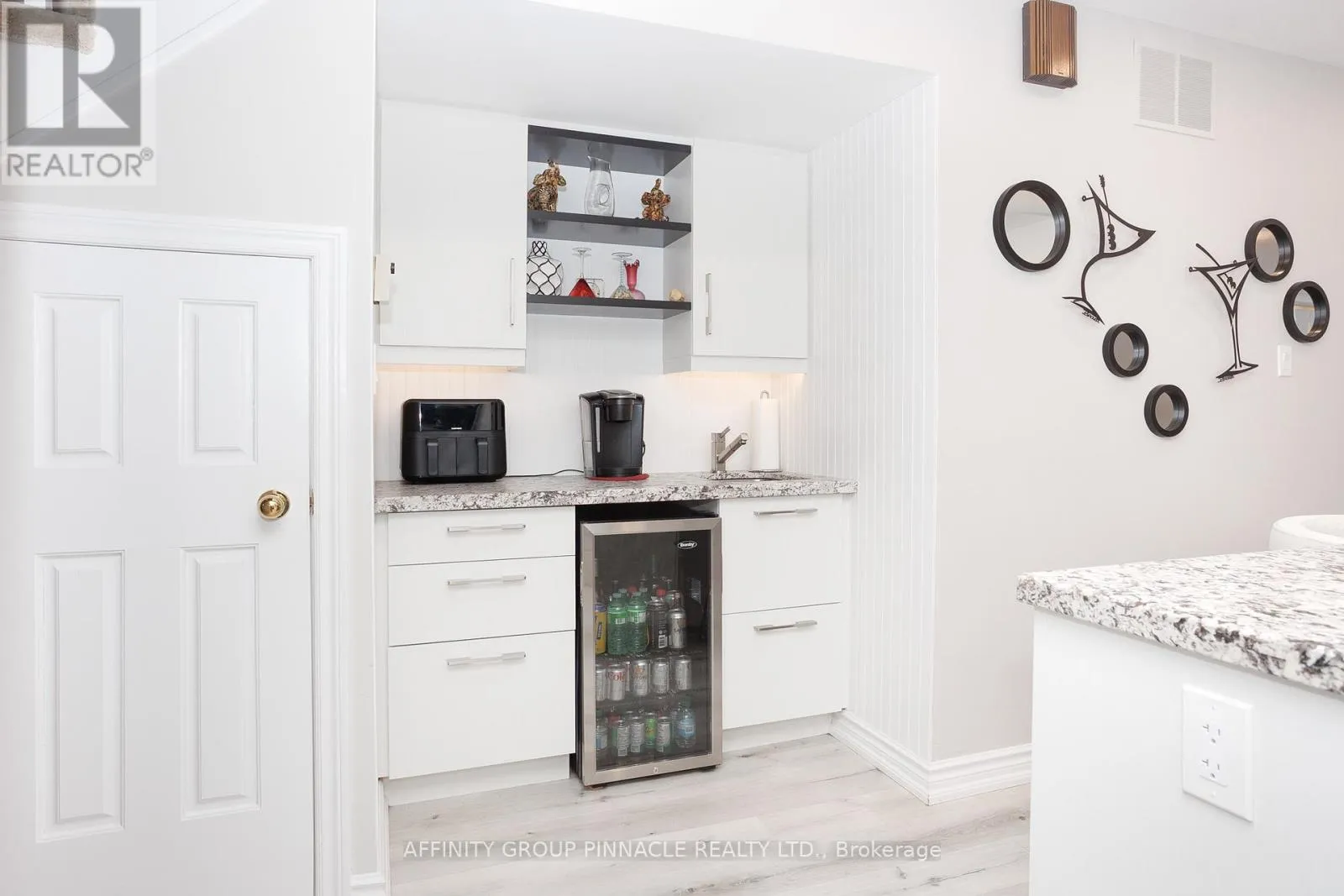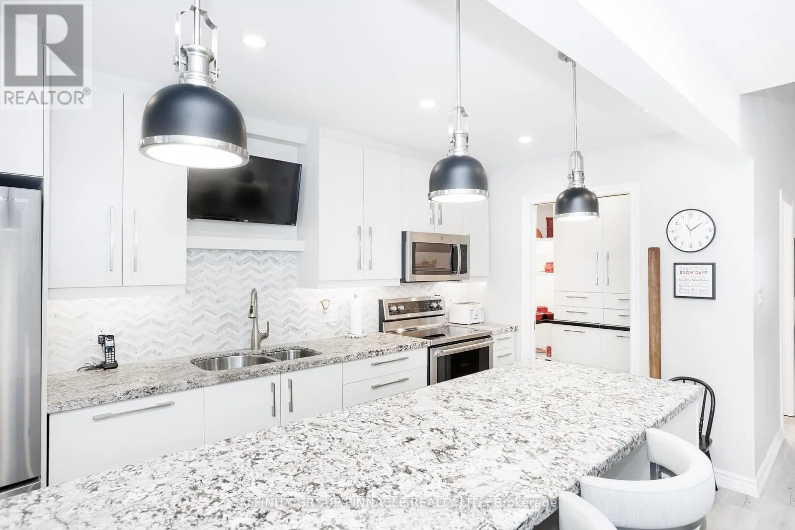 Parklawn/Main St This stunning condo, beautifully renovated in 2019 with no expense spared, offers an exceptional blend of luxury and comfort. The spacious kitchen features leathered granite counters, stainless steel appliances, a large island, custom pantry, and a wet/coffee bar, making it perfect for entertaining or enjoying quiet mornings at home. The main floor provides outstanding living space, while the large master bedroom boasts a walk-in closet, a spa-like five-piece ensuite bath with a walk-in shower, and convenient laundry facilities. Upstairs, you'll find cozy comforts including a third bedroom, a welcoming sitting area, a three-piece bath, and ample storage in a generously sized closet. This well maintained development is designed for those seeking a quiet, peaceful, and carefree lifestyle, with extensive amenities available. Residents can enjoy the waterfront deck and dock, a spacious clubhouse, outdoor heated pool, relaxing saunas, tennis courts, and beautifully manicured green spaces. Located in a luxury active adult lifestyle community on Lake Simcoe, this property is ideal for those who value both relaxation and activity in a picturesque setting. (id:27476)
