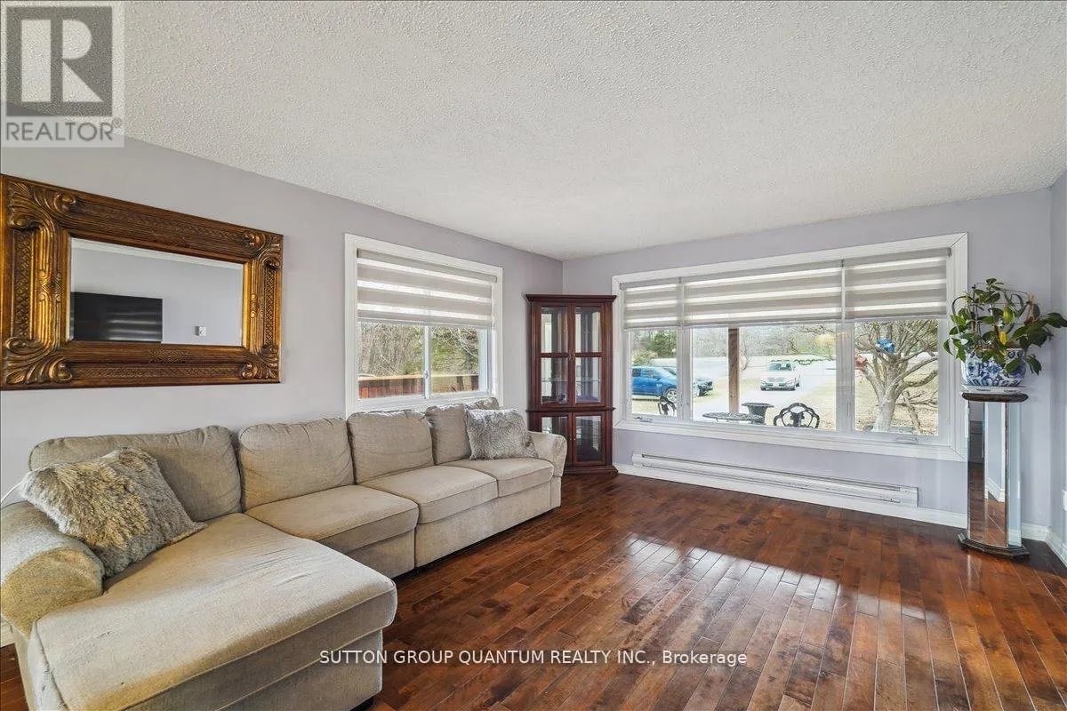 Hwy 12 / Reg Rd 13 Charming 10-Acre Country Escape Awaits! Escape the hustle and bustle of city life and discover this beautiful 10-acre hobby farm, offering eastfacing exposure on a year-round accessible road. This country home features an inviting wrap-around covered deck, perfect for enjoying peaceful mornings and relaxing evenings. Inside, the spacious living and dining area boasts hardwood floors and blinds for added privacy. The large eat-in kitchen, complete with a sliding door walkout, seamlessly blends indoor and outdoor living. Working from home is a breeze with the main floor den, providing a quiet space to focus. Upstairs, you'll find three bedrooms, one of which is currently utilized as a laundry room for added convenience. The basement presents the possibility of a fourth bedroom along with a recreation room, ideal for entertaining or unwinding. The level yard offers ample opportunities for gardening whether you want to plant your favorite flowers or start a vegetable garden and is perfect for pets to roam freely. Set back from the road, this property provides privacy and seclusion, making it the perfect retreat from city life. Don't miss your chance to own this charming property! (id:27476)