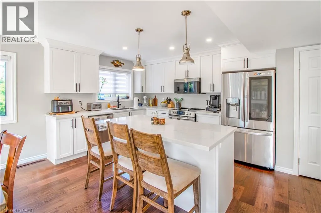 Follow Brock Rd/Durham Regional Rd 1, Hwy 407 E/ON-407 E and Durham Regional Rd 23 to Commodore Rd in Township Of Brock. The mailing address and house number will be B25555 This beautifully maintained 2.5-bath home offers approximately 1,500 sq ft of thoughtfully designed living space, enhanced with modern upgrades throughout. Enjoy LED pot lights inside and out, an HRV fresh-air system, and a whole-home water filtration system complete with sediment, iron, and softener filters for added comfort and peace of mind. The bright, open-concept main floor showcases engineered hardwood flooring, a cozy electric fireplace in the living room, and a stylish centre-island kitchen ideal for both everyday living and entertaining. A double-door walk-in pantry provides exceptional storage, while the large front porch adds inviting curb appeal. Upstairs, the spacious primary retreat features a private ensuite and stunning sunset views over the lake. Additional bedrooms offer convenient ensuite privileges, making the layout perfect for families or guests. The unfinished basement presents a fantastic opportunity to customizeâwhether you envision a home office, gym, or recreation space. Step outside to a backyard patio with outdoor pot lights, offering the perfect spot to relax or entertain. An attached garage and double-wide driveway accommodate up to four vehicles with ease. Situated on a quiet road for added privacy, this move-in-ready home delivers an exceptional blend of comfort, style, and value. (id:27476)