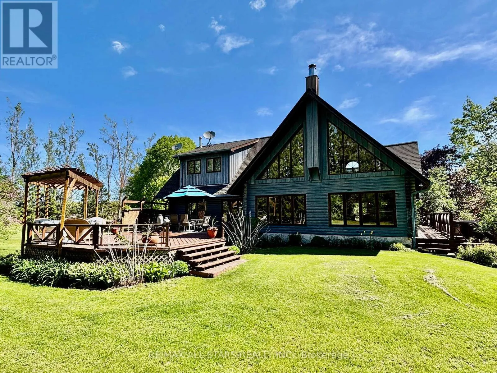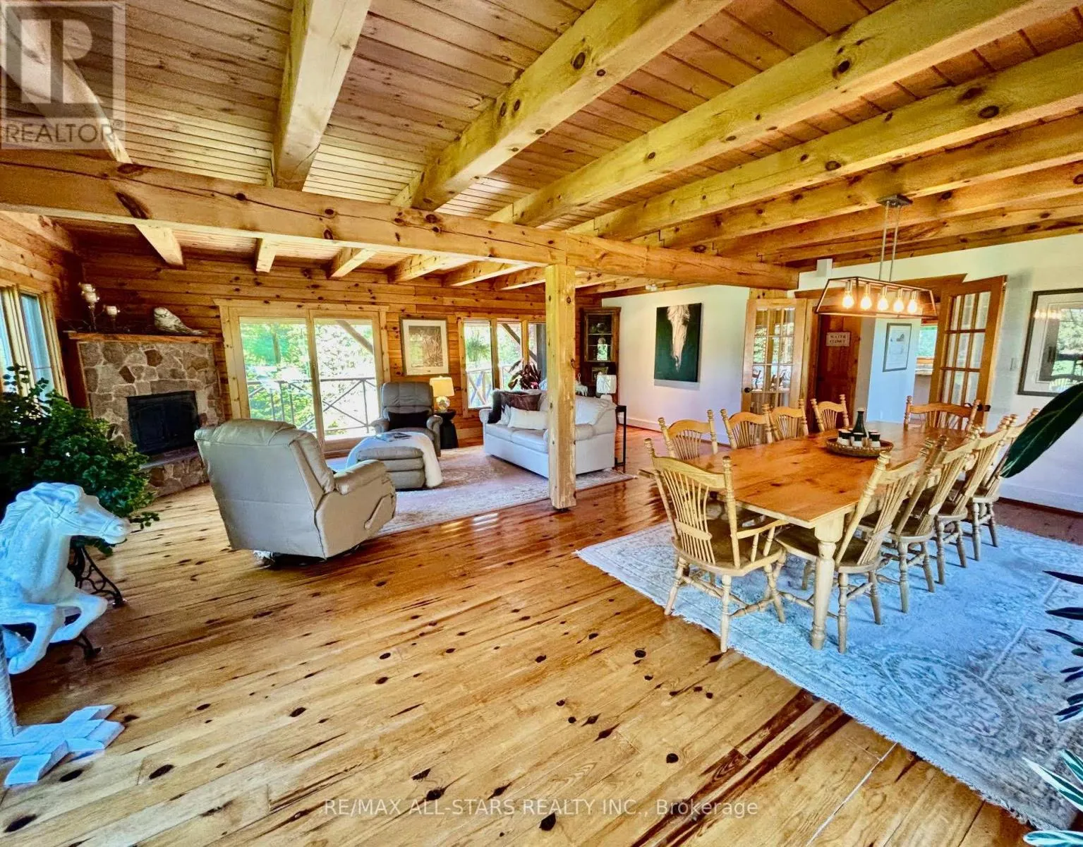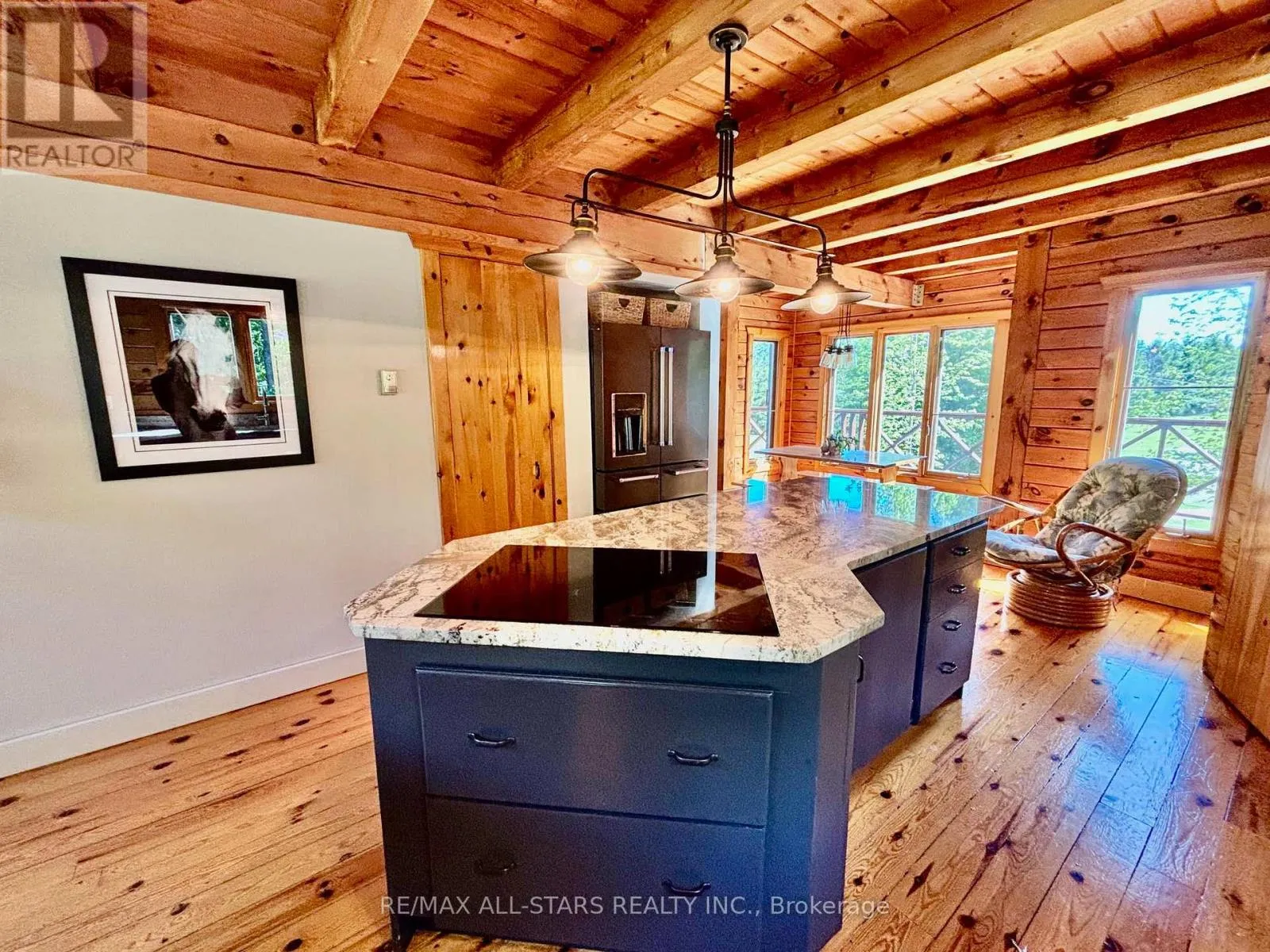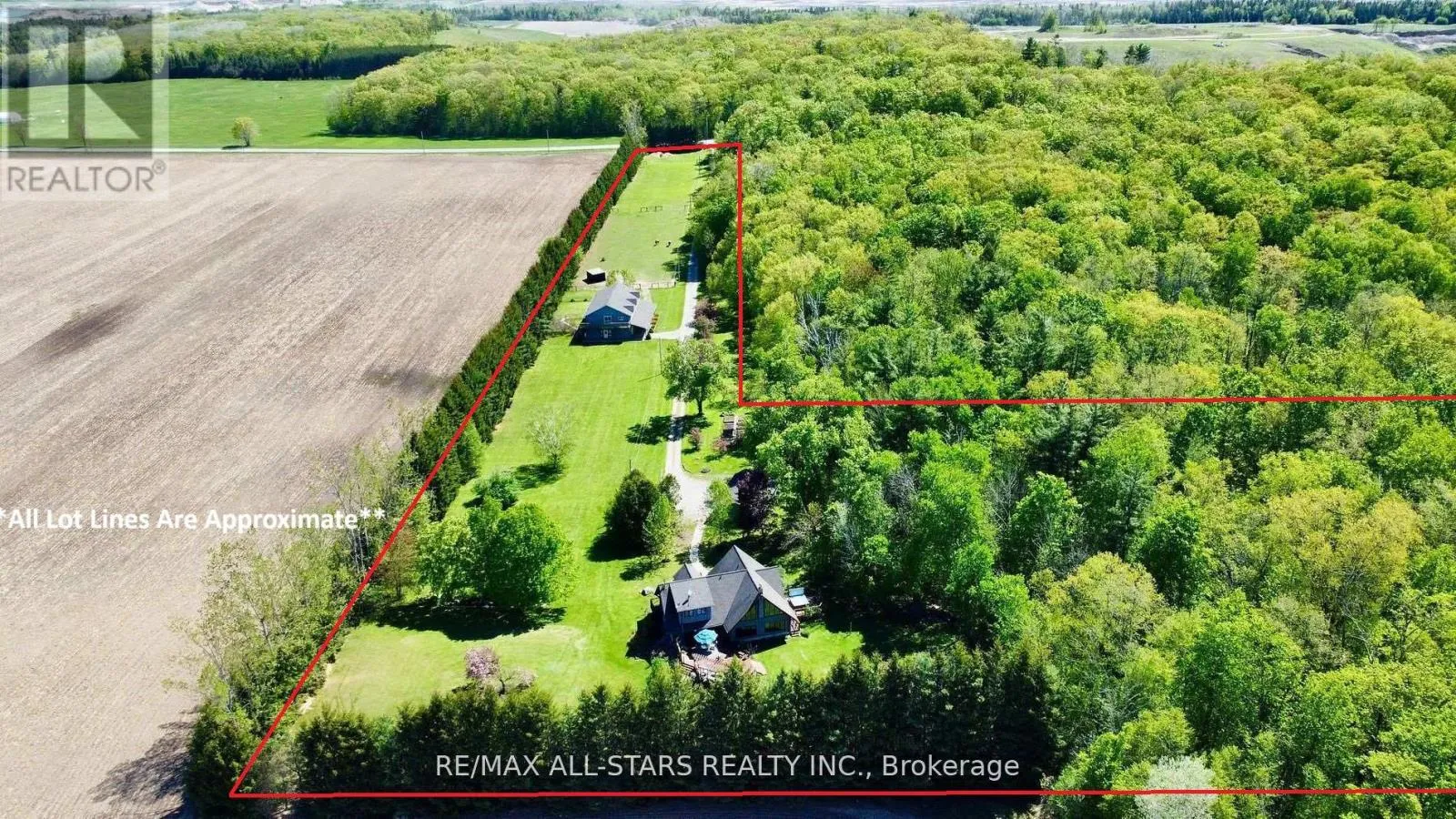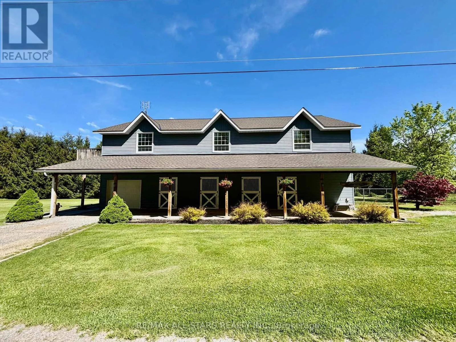 Cross Streets: Lakeridge & Durham 13. ** Directions: East on Durham 13 from Lakeridge then North onto Side road 17. Situated on a quiet country road and surrounded by nature, this custom log home offers a rare combination of rustic charm and refined living on a breathtaking 9-acre estate. Located just minutes north of Uxbridge and conveniently close to Lakeridge Rd for quick 407 access, this property is the perfect rural retreat with urban convenience. As you enter the property, you're welcomed by a stunning 3,900 sq. ft. barn, designed for both function and beauty. Featuring six spacious hemlock stalls with automatic waterers and easy-access feeders, the barn also includes a heated tack room, 2-piece bathroom, laundry, and separate hay storage. The second floor offers a bright, partially finished space with two private entrances and walkout decksideal for an office, studio, or future guest quarters. Continue along the drive to a detached three-car garage and the main residencea showstopping log home that perfectly balances rustic sophistication with modern comforts. Inside, expansive windows flood the home with natural light and offer panoramic views of the surrounding landscape. The wrap-around decks are perfect for entertaining or enjoying quiet moments, including a spa tub tucked into the trees for year-round relaxation. The heart of the home is the chefs kitchen, complete with a generous island, a cozy breakfast nook, and an open-concept family room warmed by a classic wood stove. Entertain in style with a formal dining and living room featuring a convenient gas fireplace. Upstairs, three inviting bedrooms exude warmth and character, including a primary suite with double walk-in closets and a private ensuite bath. Outside, the beautifully manicured grounds are a true oasis, surrounded by perennial gardens and natural beauty in every direction. Whether you're seeking a full-time residence, hobby farm, or multi-use estate, this one-of-a-kind property delivers on every level. Fiber optic available. (id:27476)