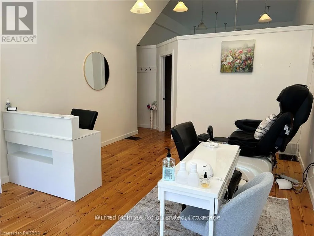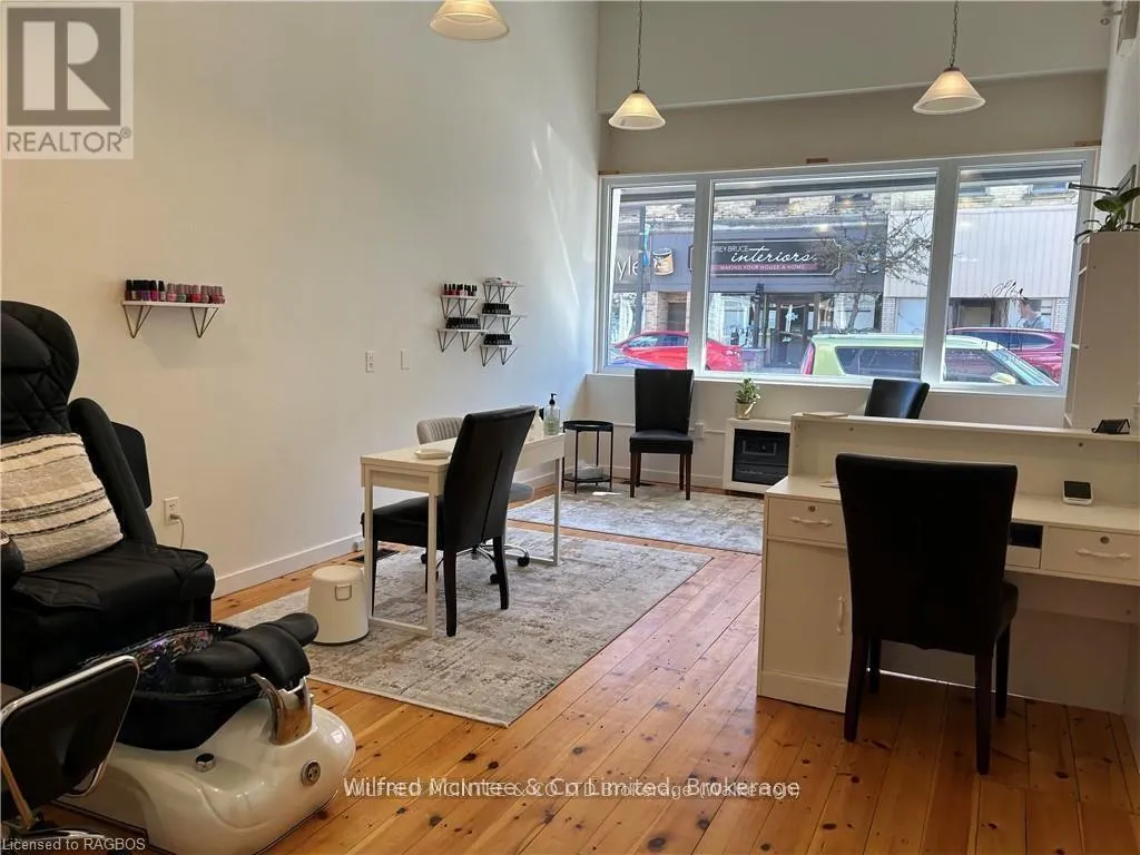 Cross Streets: Victoria St and Colborne St. ** Directions: On the east end of Durham St between Simply Delicious and H&R Block. Are you seeking the perfect location for your next business venture? Look no further! As you step into this bright and airy 650 sq. ft. space, the warm ambiance invites customers and clients alike to experience your business in a welcoming environment ideally situated in bustling heart of Walkerton. Available August 1, this renovated and versatile space offering a myriad of possibilities, is currently set up in 3 rooms but can be tailored to suit your unique needs. Benefit from high foot traffic and excellent visibility surrounded by local shops, cafes, and community amenities. Basement space is included as well as 4 Pc bath, deck and 1 parking space. $1200/month + HST with electricity paid by the tenant. Don't miss out on this remarkable space. Arrange a viewing today to envision how your business can flourish. (id:27476)