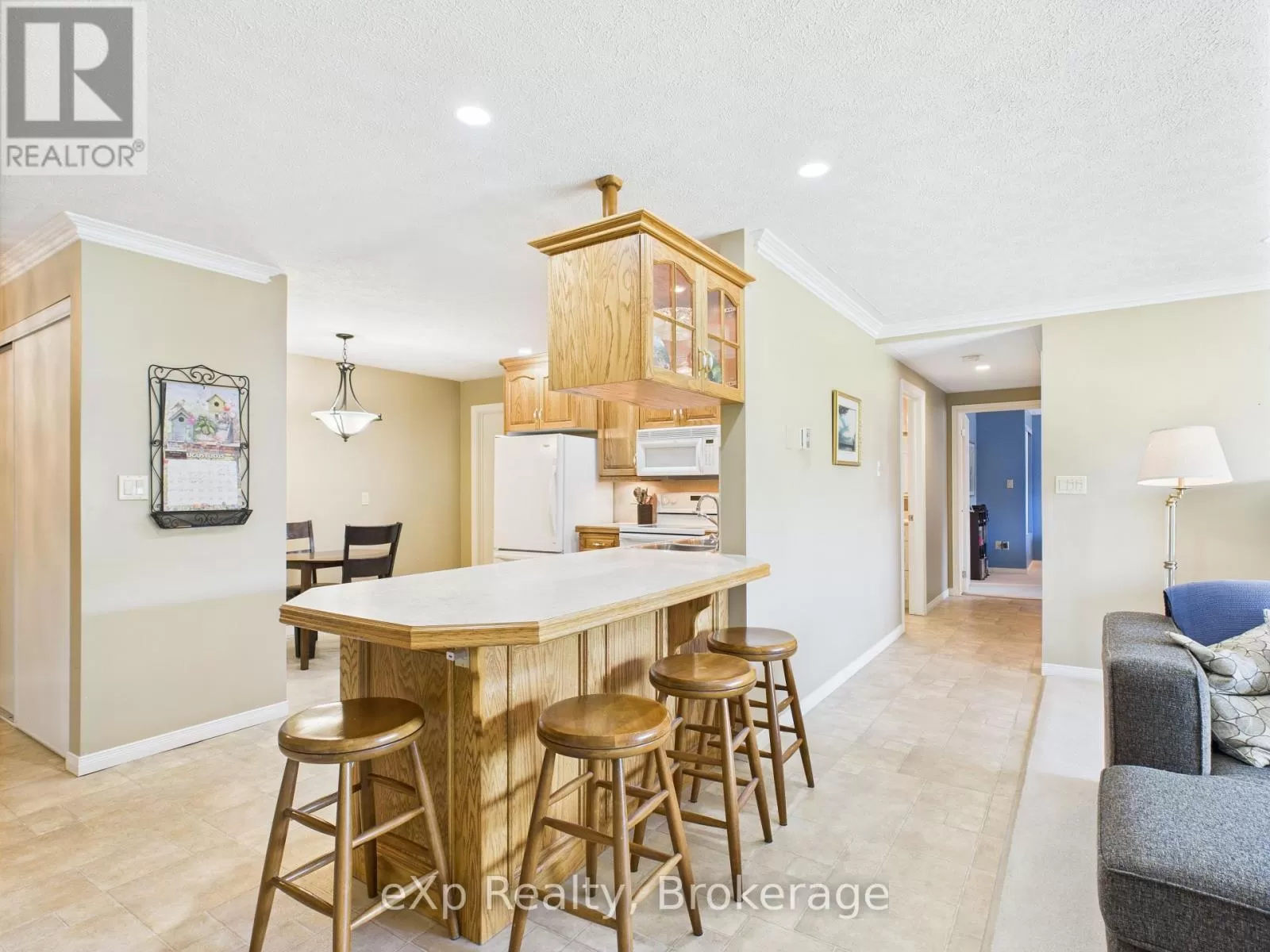 Cross Streets: Durham St. E. ** Directions: Head east on Durham St E/Route 4 toward Victoria St N. Turn left onto William St N. Turn left. Turn left Destination will be on the right. Welcome to riverside condo living in Walkerton! This well-maintained 2-bedroom, 2-bathroom unit offers 1,094 sq. ft. of comfortable living space with an open-concept design. The kitchen features plenty of oak cabinetry, a convenient breakfast bar, and flows seamlessly into the bright living room with walkout to a private balcony overlooking the Saugeen River. The spacious primary bedroom suite includes a walk-through closet and private ensuite, while the second bedroom and full bathroom provide flexibility for guests or a home office. Added conveniences include in-suite laundry, a storage room directly in front of your indoor garage space, and the units prime location across from both the elevator and common room. Built in 2005, this condo is within walking distance to downtown Walkerton, Tim Hortons, and local amenities. Enjoy the peaceful river views and watch the fishing, kayaking, and canoeing right from your balcony. Forced-air gas heat, central air, and appliances (fridge, stove, washer, dryer) are included. An excellent opportunity for carefree condo living in a prime location! (id:27476)