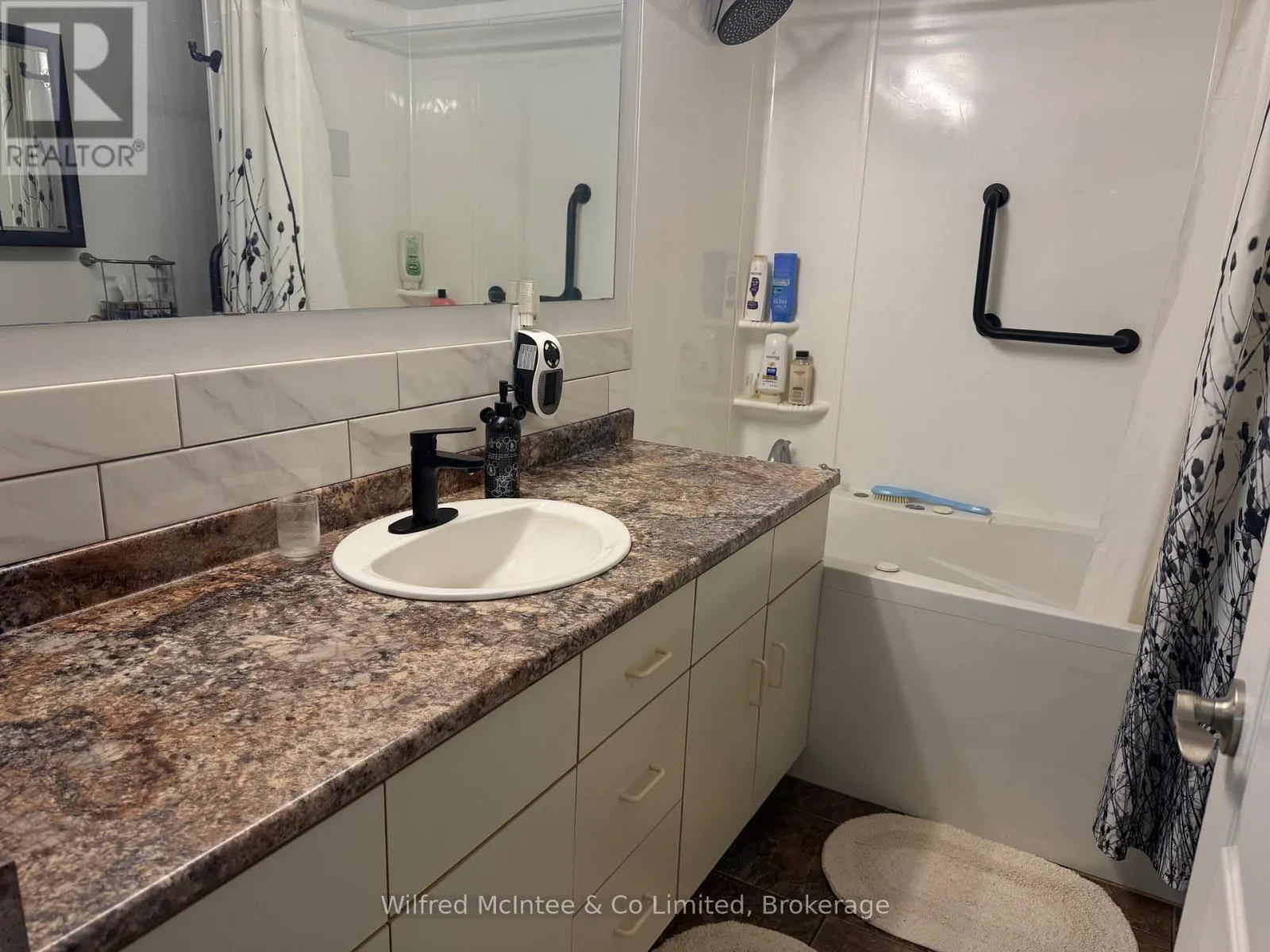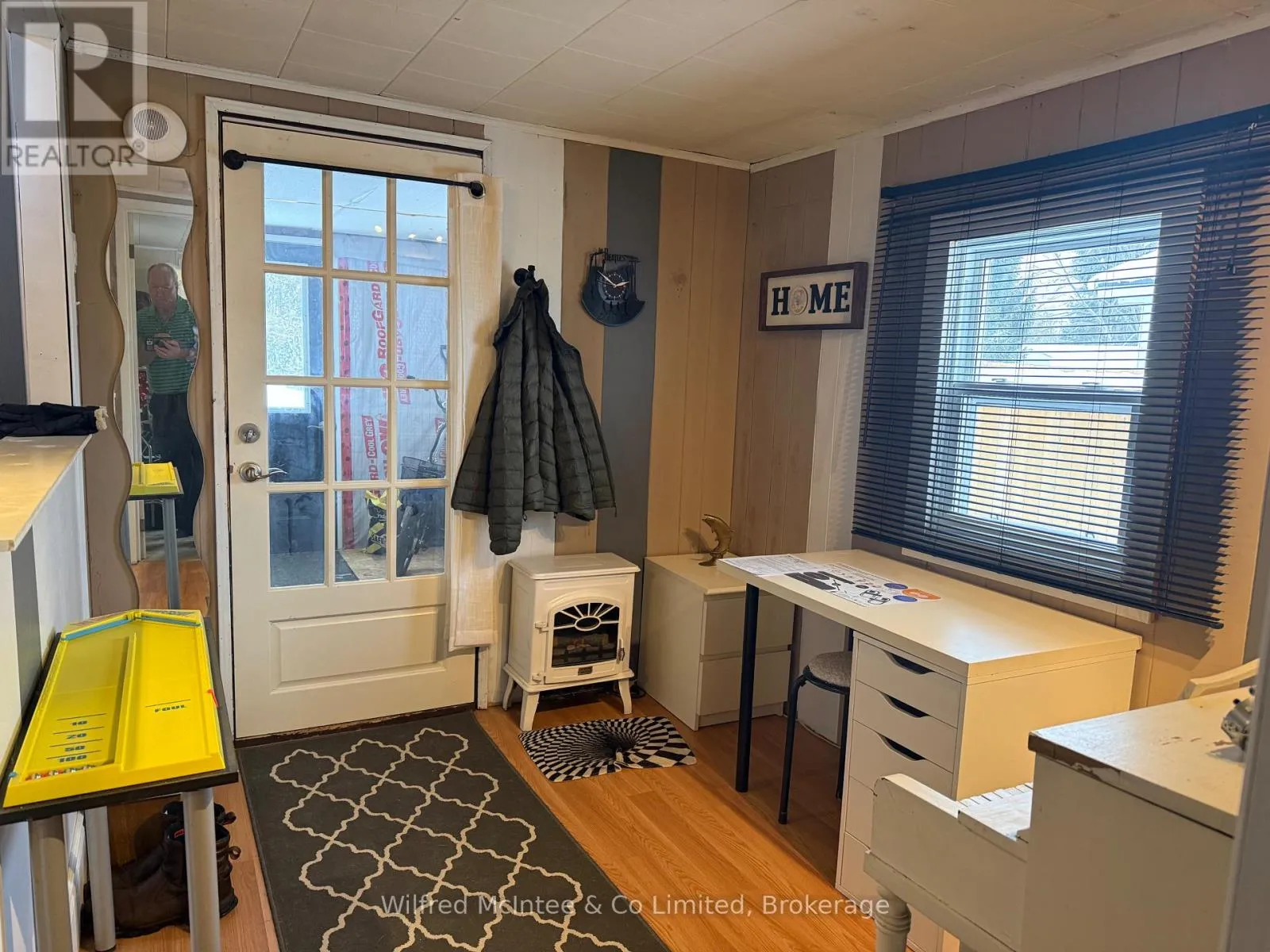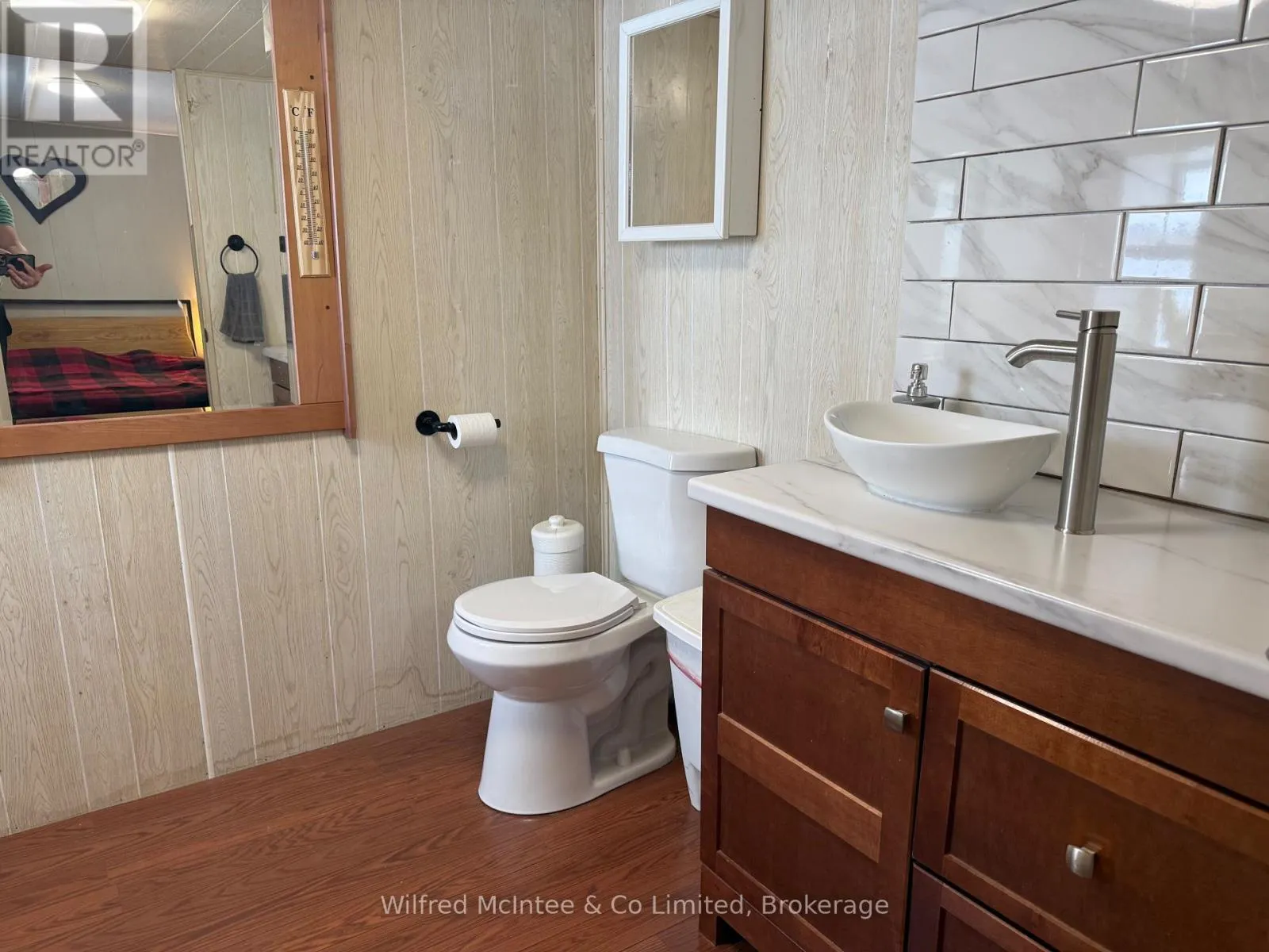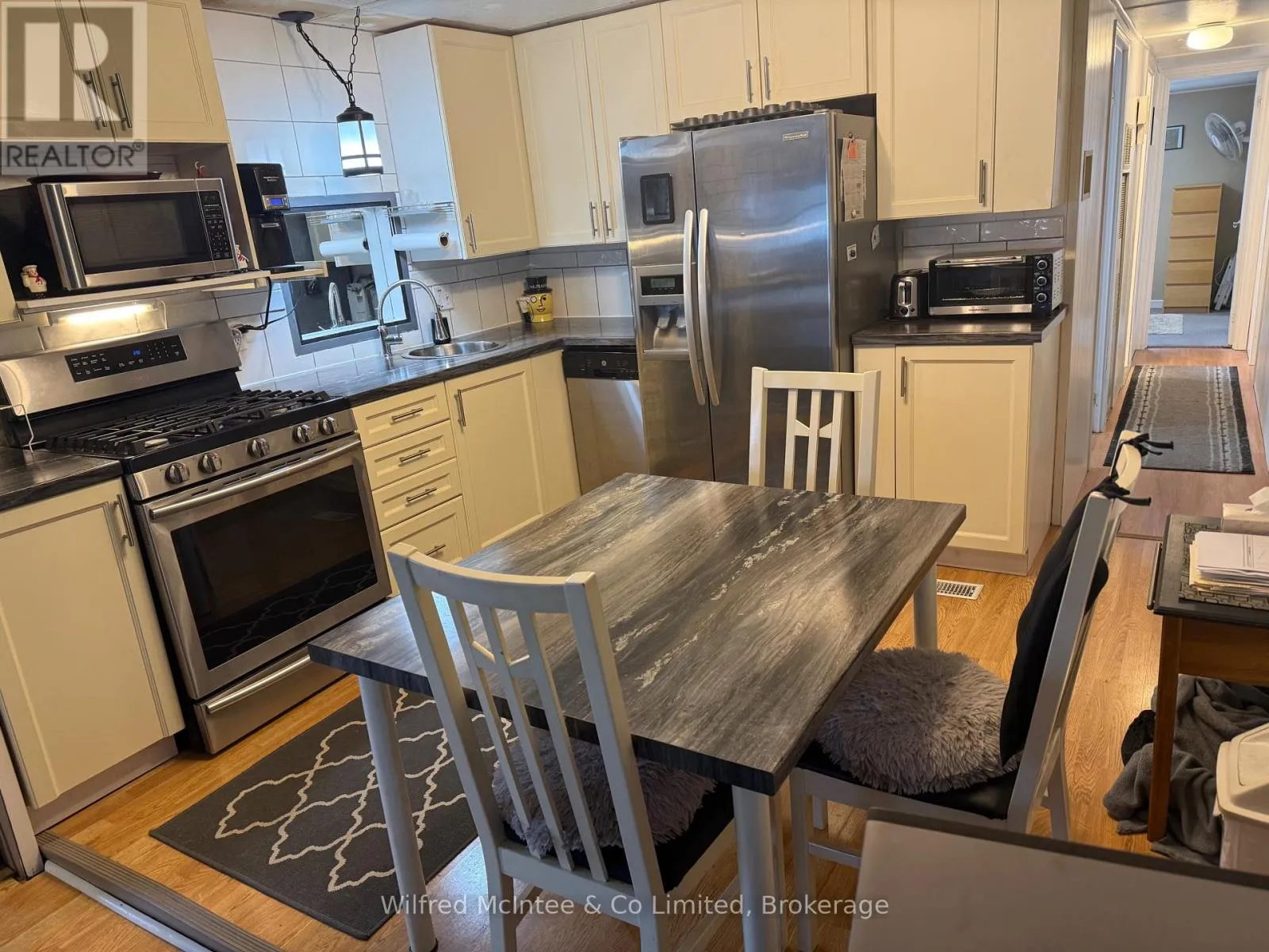 Cross Streets: BCardinal St. ** Directions: Country Village Park, West of Hanover- #23 Bluejay Court. Discover comfortable, affordable living in this spacious bungalow-style mobile home in Country Village Mobile Home Park, backing onto an open field with peaceful views and no rear neighbours. Enjoy a private, maturely landscaped yard, new exterior lighting, patio stone pads for outdoor living, and a welcoming enclosed front porch. Larger than it appears, the home features an inviting foyer, open-concept kitchen and living area, and a layout ideal for retirees or young families.The home offers 2 bedrooms plus addition space, 2 bathrooms including a 2-pc ensuite, walk-in closets, and blackout curtains in bedrooms. The fully renovated kitchen includes new countertops, Blanco sink, soft-close cabinetry, in-cabinet garbage/recycling, stainless steel appliances, and gas stove. Added heat in the front room ensures year-round comfort. Main bath features new backsplash and toilet, and the laundry room has updated sink and cabinetry with soft-close drawers.Mechanical includes two furnaces (one dedicated to the heated single-car garage), owned hot water heater, under-sink hot water heater in kitchen, water softener, attic and plumbing venting, and bathroom exhaust fan. Low monthly utilities average approx. $68 gas and $75 hydro.Exterior improvements include heated attached garage with bonus workshop/storage area, large rear storage structure, privacy fencing, landscaped cedars and spruce, new front door, ramp access, replaced windows and a double-wide concrete driveway with ample parking.Move-in ready with room to personalize, just minutes to Hanover and a short drive to Walkerton, offering affordability, comfort, and peaceful country-style living.Lease fees: $408/month (water included) + $25 water testing + $40 taxes = $473/month total payable to park. (id:27476)
