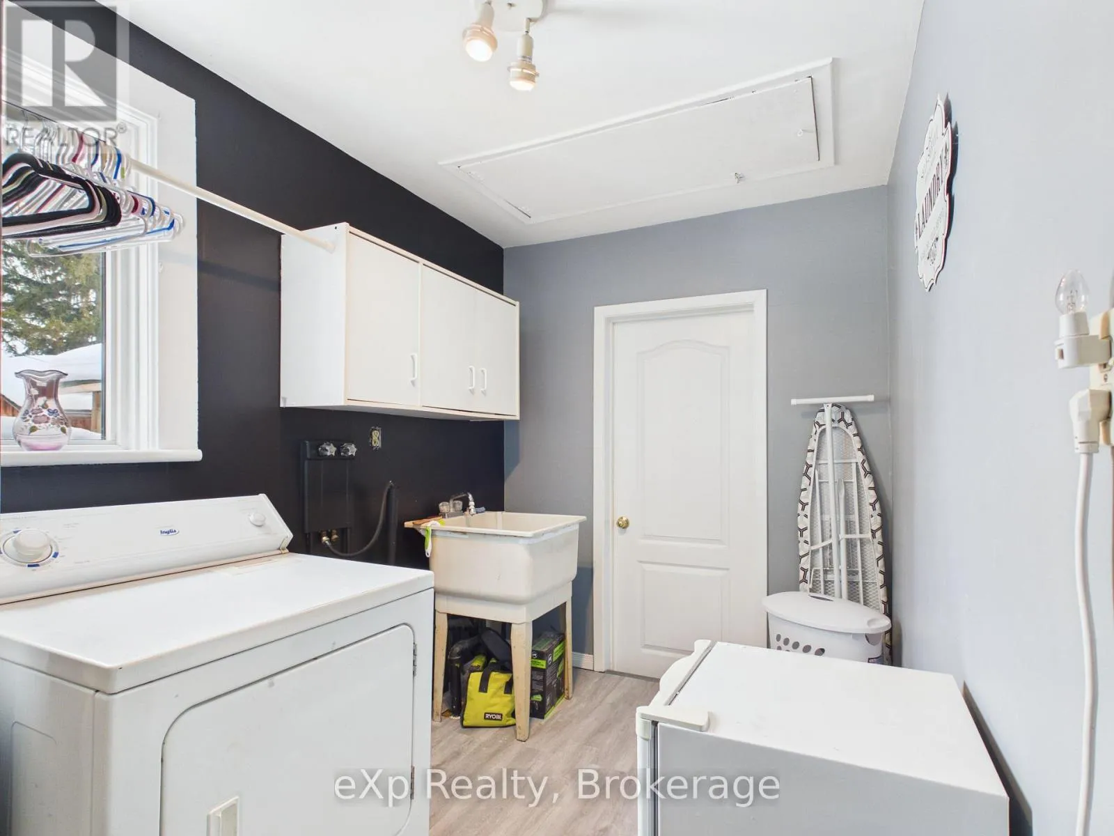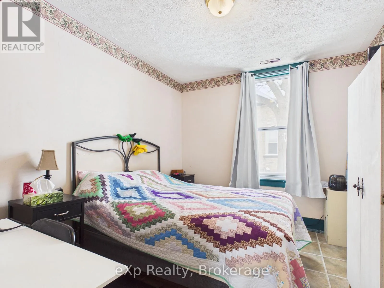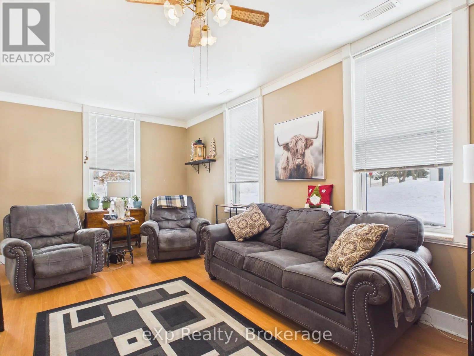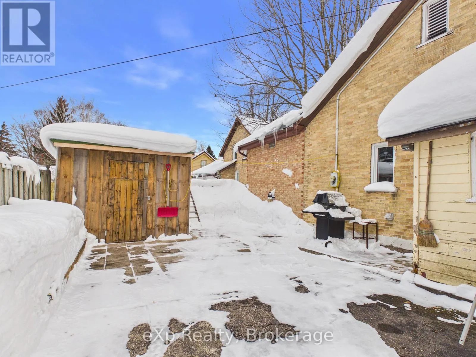 Cross Streets: Alma St. & Amelia St. ** Directions: Heading west on Durham St., turn south on Almas St. House is on the corner of Alma St and Amelia St. Looking for an affordable bungalow in Walkerton close to downtown amenities? Welcome to 110 Amelia Street. A charming 3 bedroom, 1 bathroom brick home sitting proudly on a generous 66.06 x 82.59 corner lot in a family oriented neighbourhood just steps from everything that makes Walkerton special.Built in 1910, this well maintained one level home blends character and practicality. The exterior features classic brick with board and batten accents, mature trees, a private patio area perfect for summer evenings, and a storage shed for added functionality. The yard is tucked into a quiet residential pocket ideal for retirees, first time buyers, or investors seeking an entry level Bruce County property.Inside, you will find approximately 1,000 square feet of main level living with three bedrooms and a full bathroom all on one floor. The partial unfinished basement provides additional storage space. Forced air gas heating ensures efficient comfort through Ontario winters. The roof was replaced in 2015 offering added peace of mind.Location matters,this home is walking distance to downtown Walkerton, Foodland grocery store, the Walkerton Arena, the Horse Palace, and close to Lobby's Park and the ball diamonds. Enjoy small town living with convenient access to parks, recreation, and local shops without needing to drive across town. Whether you are downsizing in Walkerton, buying your first home in Bruce County, or adding a rental property near downtown amenities, 110 Amelia Street offers value, location, and long term potential at $399,900. (id:27476)