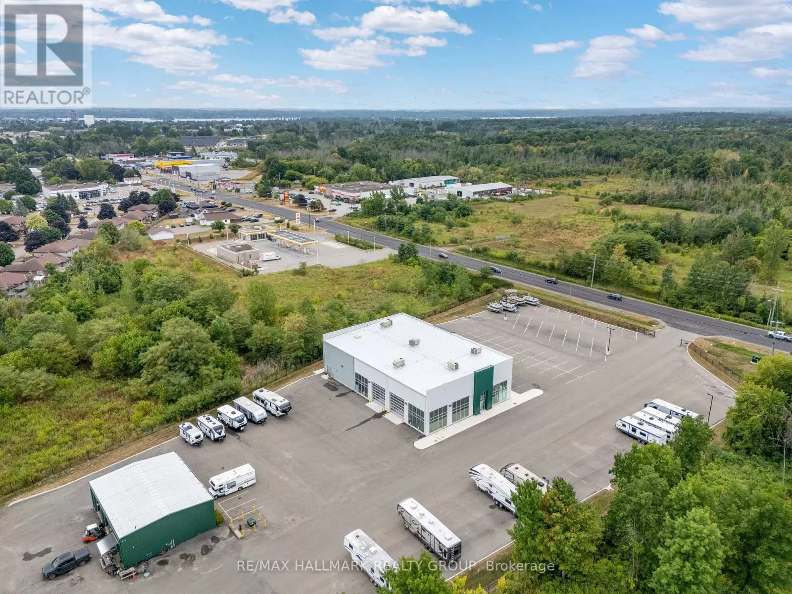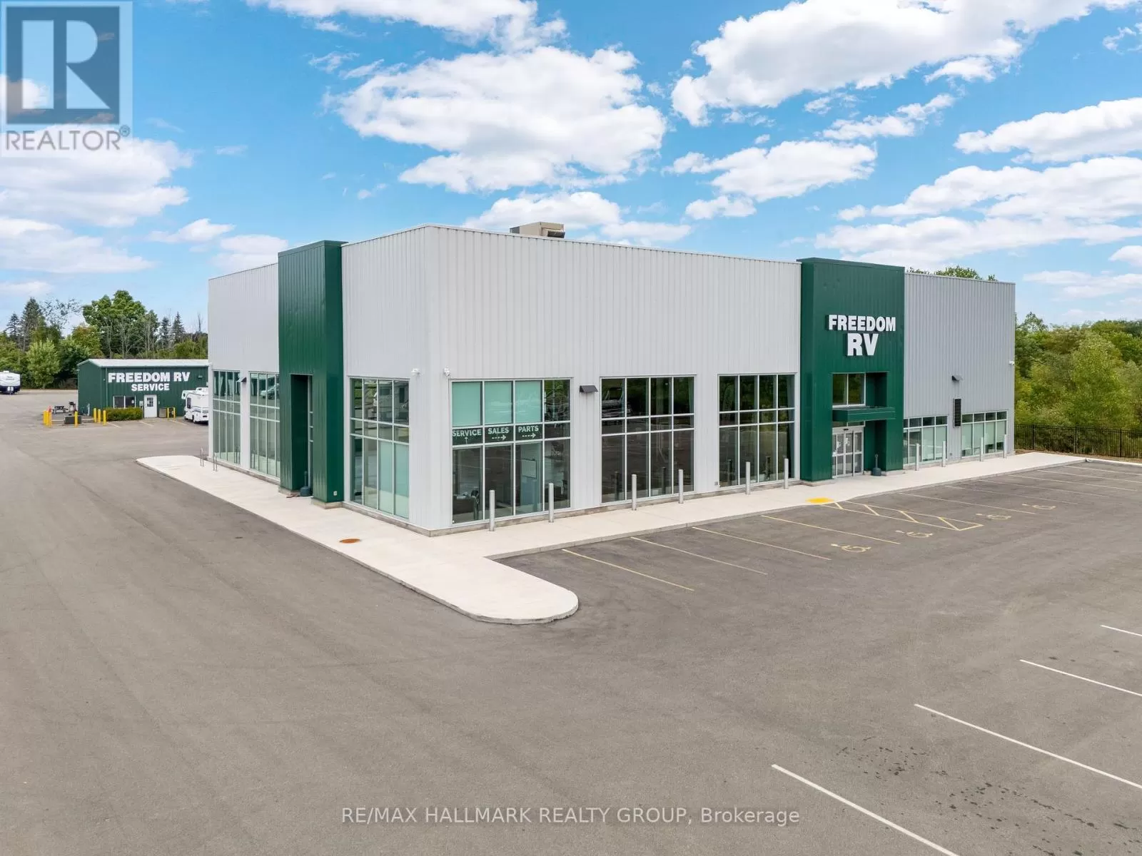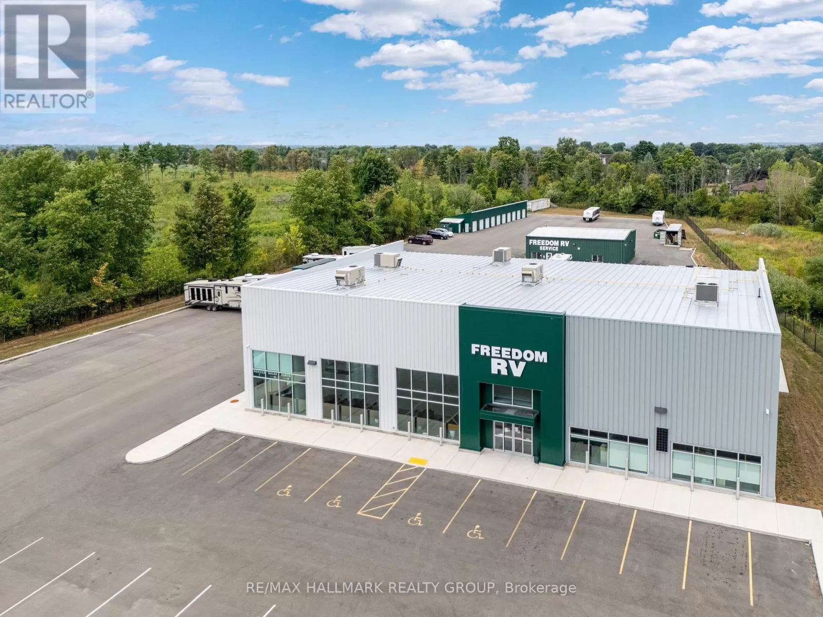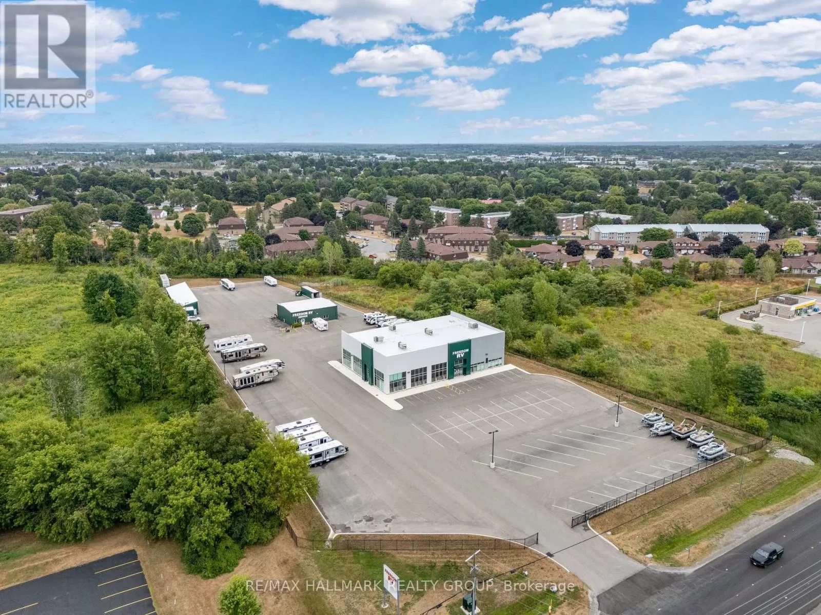 Cross Streets: Hwy 401, Stewart Blv. ** Directions: North from Hwy 401, on Stewart Blvd/ Hwy 29 approx 2 km. Property is on the east side (right) just past Shell gas station. 25,000 Vehicles/Day pass by this Exceptional 4 Acre Commercial Property with Versatile Buildings and 2 Year Old Showroom Space. This well-maintained commercial property offers a unique combination of functional buildings ideal for a variety of business uses. A standout feature is the purpose-built showroom designed for RV or large display. This impressive space offers high ceilings, abundant natural light through perimeter windows and glazed overhead doors, and oversized rear doors for easy access. Mezzanine and 5 well-appointed offices, 2 washrooms, 2 Kitchenettes, and utility areas complete the layout. The building is in excellent condition and ready for immediate use.This is a rare opportunity to acquire a flexible commercial property with strong infrastructure and move-in-ready facilities. There is also a Maintenance Building, with a Reception Area at the Front & a Large Workshop Area at the Rear. There is another Building on a Cement Slab with Ten 8 Ft Wide Garage Doors, with Interior Dimensions of 20 X 12 Ft. Buy Before Values Skyrocket !!! (id:27476)