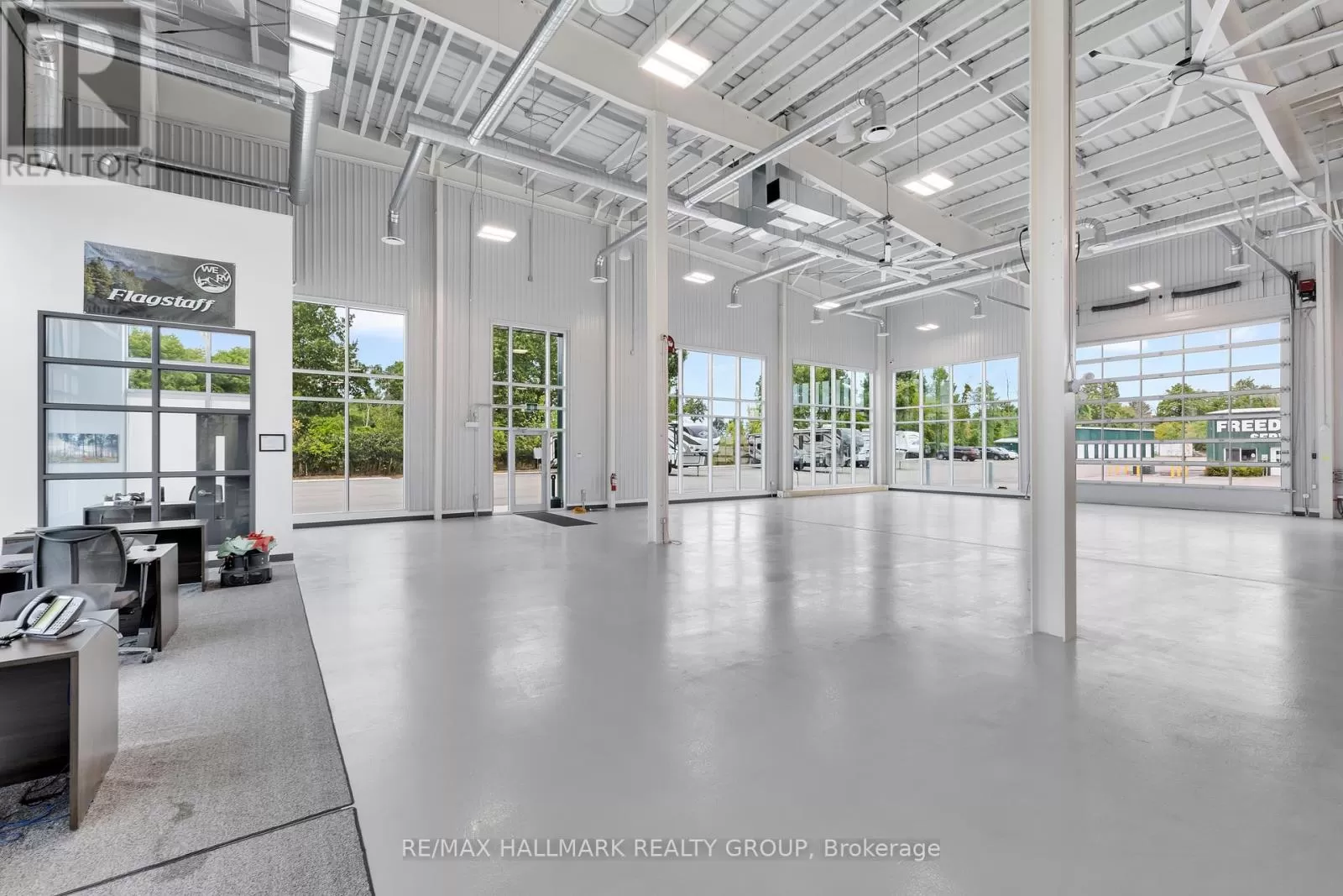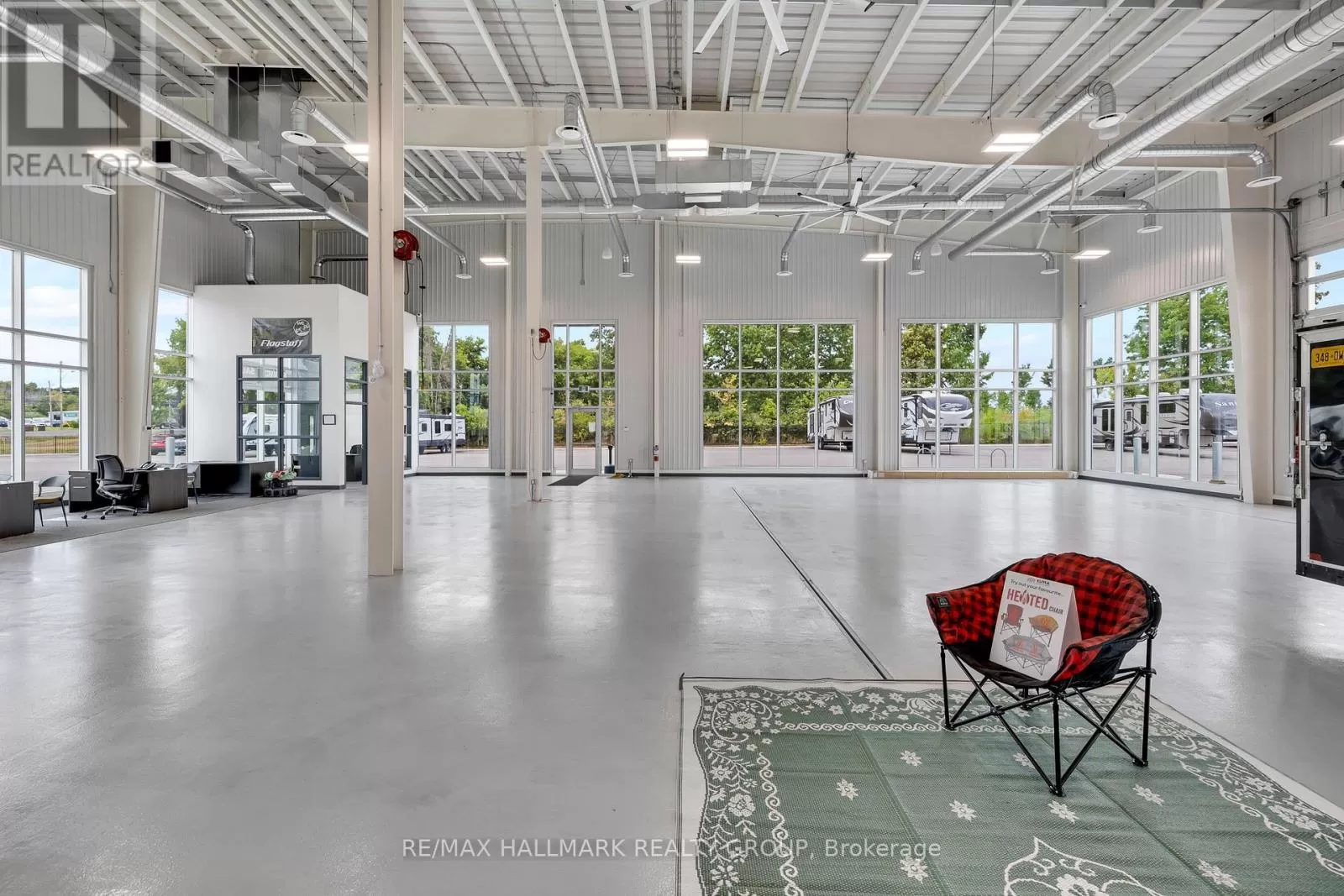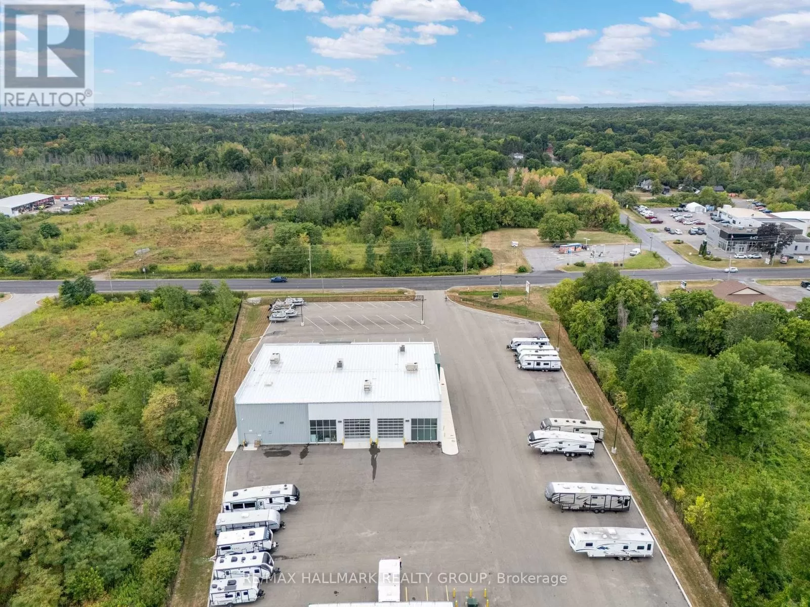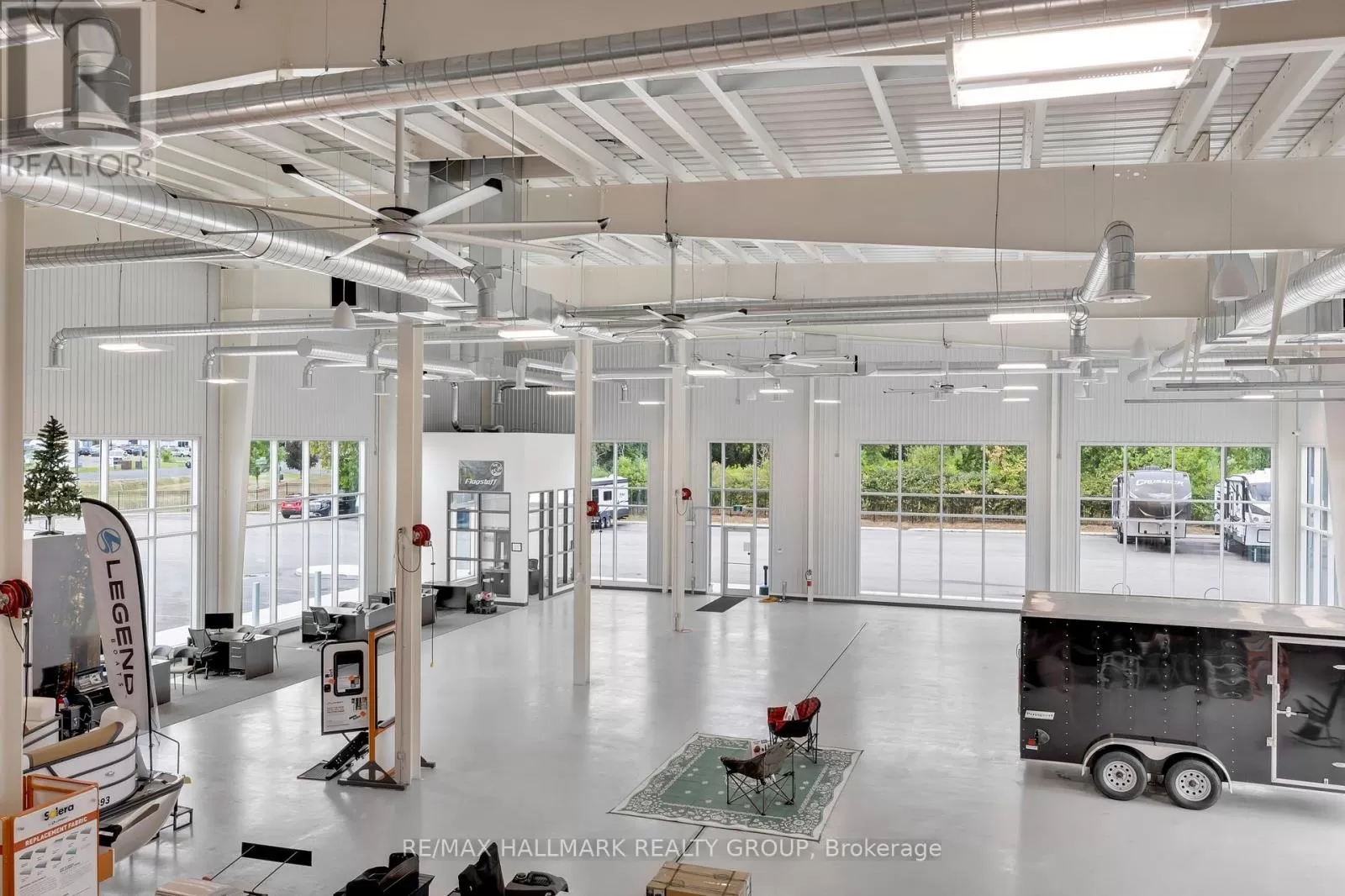 Cross Streets: Hwy 401, Stewart Blv. ** Directions: North from Hwy 401, on Stewart Blvd/ Hwy 29 approx 2 km. Property is on the east side (right) just past Shell gas station. 25,000 Vehicles/Day pass by this Exceptional 4 Acre Commercial Property with Versatile Buildings and 2 Year Old Showroom Space. This well-maintained commercial property offers a unique combination of functional buildings ideal for a variety of business uses. A standout feature is the purpose-built showroom designed for RV or large display. This impressive space offers high ceilings, abundant natural light through perimeter windows and glazed overhead doors, and oversized rear doors for easy access. Mezzanine and 5 well-appointed offices, 2 washrooms, 2 Kitchenettes, and utility areas complete the layout. The building is in excellent condition and ready for immediate use.This is a rare opportunity to acquire a flexible commercial property with strong infrastructure and move-in-ready facilities. There is also a Maintenance Building, with a Reception Area at the Front & a Large Workshop Area at the Rear. There is another Building on a Cement Slab with Ten 8 Ft Wide Garage Doors, with Interior Dimensions of 20 X 12 Ft. Buy Before Values Skyrocket !!! (id:27476)