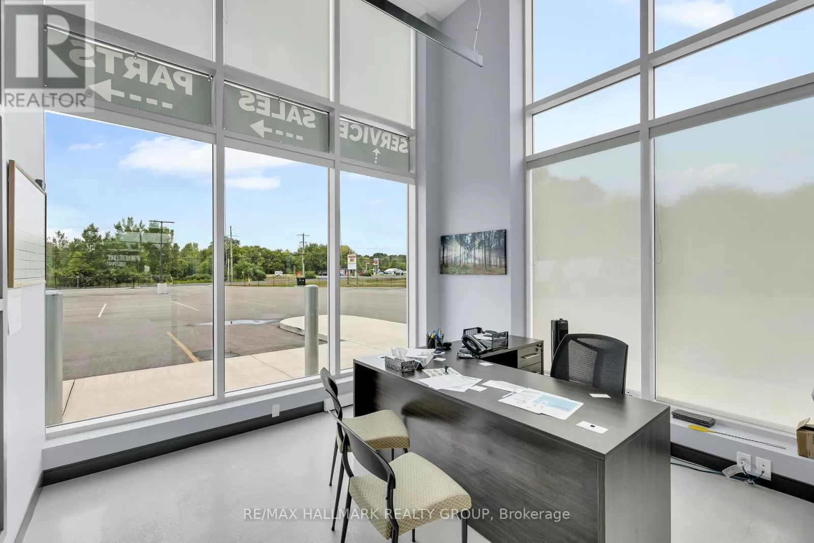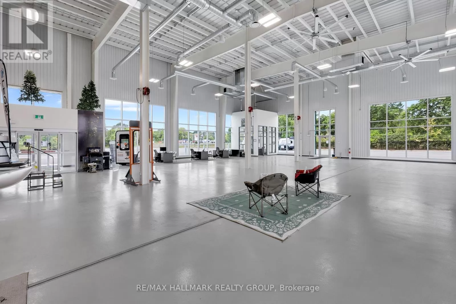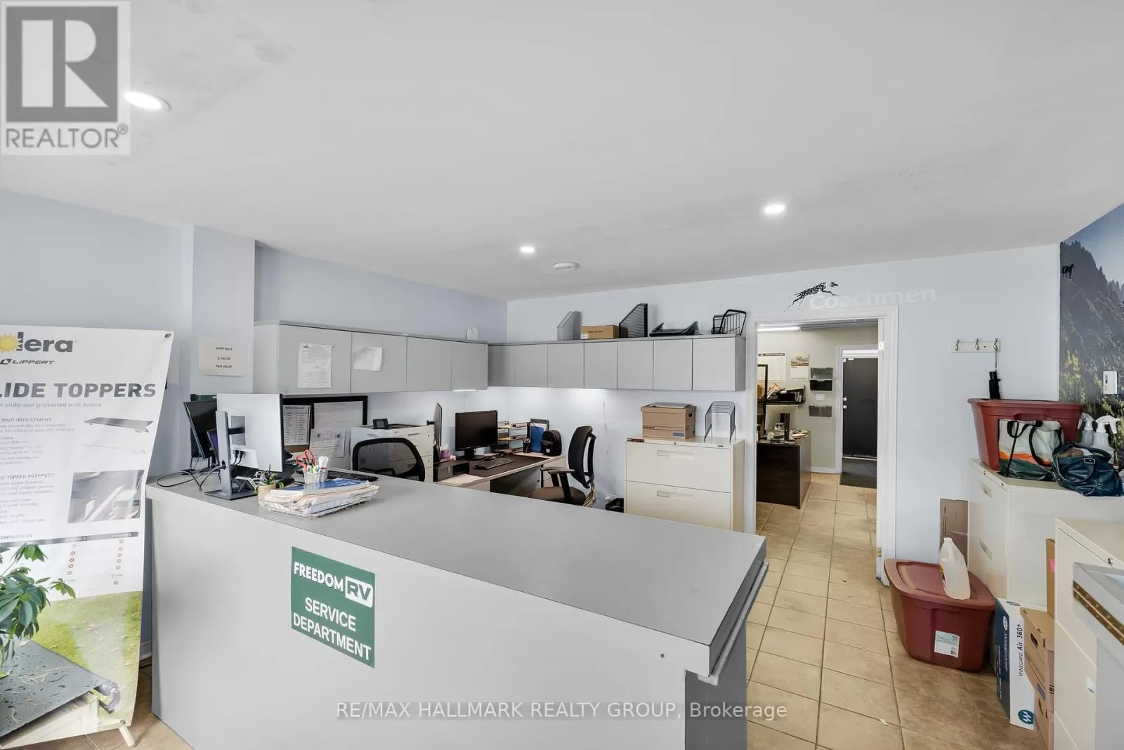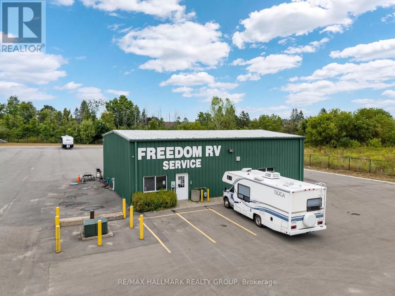 Cross Streets: Hwy 401, Stewart Blv. ** Directions: North from Hwy 401, on Stewart Blvd/ Hwy 29 approx 2 km. Property is on the east side (right) just past Shell gas station. 25,000 Vehicles/Day pass by this Exceptional 4 Acre Commercial Property with Versatile Buildings and 2 Year Old Showroom Space. This well-maintained commercial property offers a unique combination of functional buildings ideal for a variety of business uses. A standout feature is the purpose-built showroom designed for RV or large display. This impressive space offers high ceilings, abundant natural light through perimeter windows and glazed overhead doors, and oversized rear doors for easy access. Mezzanine and 5 well-appointed offices, 2 washrooms, 2 Kitchenettes, and utility areas complete the layout. The building is in excellent condition and ready for immediate use.This is a rare opportunity to acquire a flexible commercial property with strong infrastructure and move-in-ready facilities. There is also a Maintenance Building, with a Reception Area at the Front & a Large Workshop Area at the Rear. There is another Building on a Cement Slab with Ten 8 Ft Wide Garage Doors, with Interior Dimensions of 20 X 12 Ft. Buy Before Values Skyrocket !!! (id:27476)