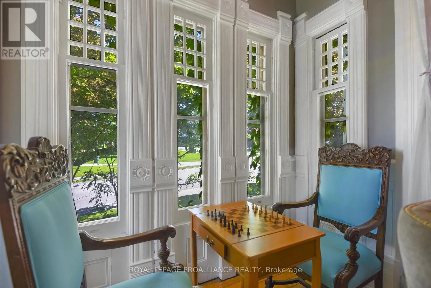 Cross Streets: corner of James Street East and Park Street. ** Directions: From North Augusta Road 401 Exit, head south on North Augusta Road to Pearl Street. Head west onto Pearl. Left onto Park Street. Subject property is one block up , corner of James Street E and Park with signage. This stunning end-unit Victorian town home, circa 1880, blends historic charm with modern comfort and is perfectly situated in the heart of Brockville's desirable Historic District. Designed by Owen Eugene Liston, who specialized in distinctive Queen Anne style "row houses", this residence is a rare opportunity to own a remarkable piece of the city's architectural history. Boasting 2,363 sq. ft. of living space, the home features four spacious bedrooms and four bathrooms, offering exceptional comfort for family or guests. The primary suite includes an original marble fireplace and a private balcony overlooking Victoria Park, creating a peaceful retreat.The main floor showcases 11-foot ceilings with intricate detailing, a grand dining and living room with an original decorative fireplace, and a canted bay window that bathes the space in natural light. Original wood flooring throughout adds warmth and timeless character. Outdoor living is well accommodated with a fenced courtyard, a rear deck ideal for BBQs and entertaining, and a large front yard with charming curb appeal.Recent updates include a high-efficiency gas boiler with hot water on demand (2015) and a new roof (2020), combining peace of mind with classic craftsmanship.This home has most recently been used as an Air'b'n'B, so if you are seeking an investment opportunity, this could be yours ! The stone basement features a walk out to your back yard. Ideally located across from Victoria Park and just a short walk to downtown shops, churches, the St. Lawrence River, and waterfront parks, this property offers both convenience and lifestyle.Don't miss your opportunity to call this historic gem your own. Conveniently located minutes from the 401 for easy commutes. (id:27476)