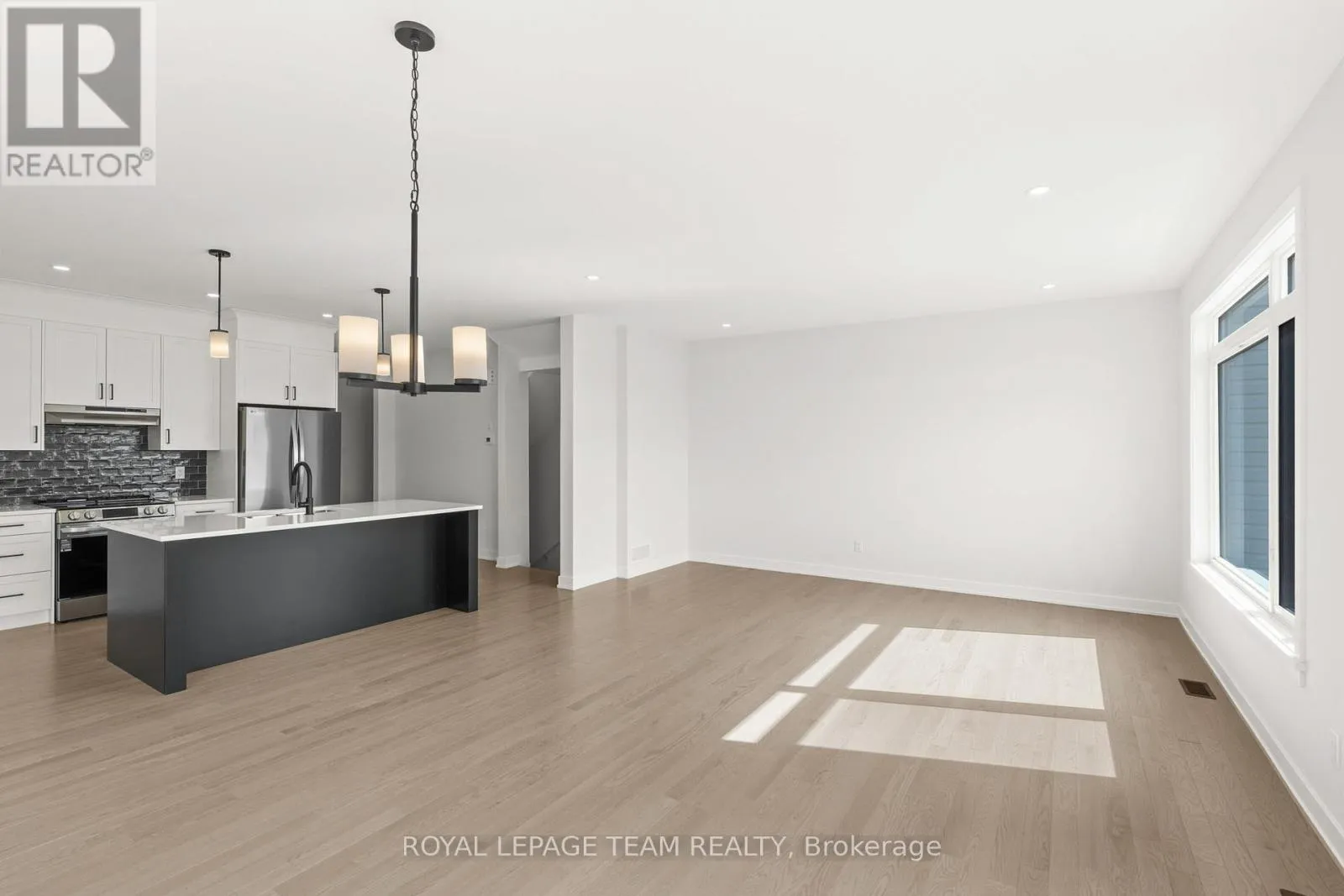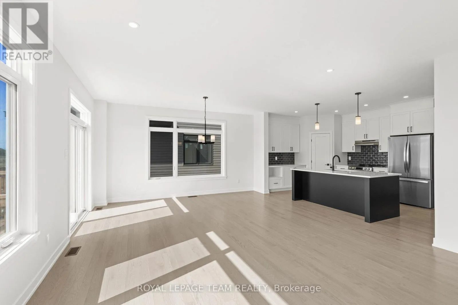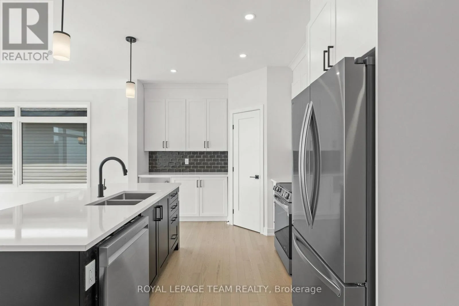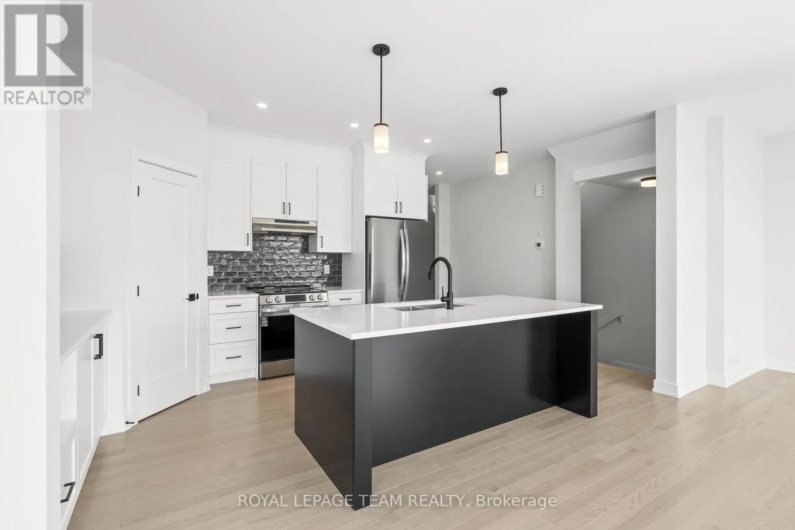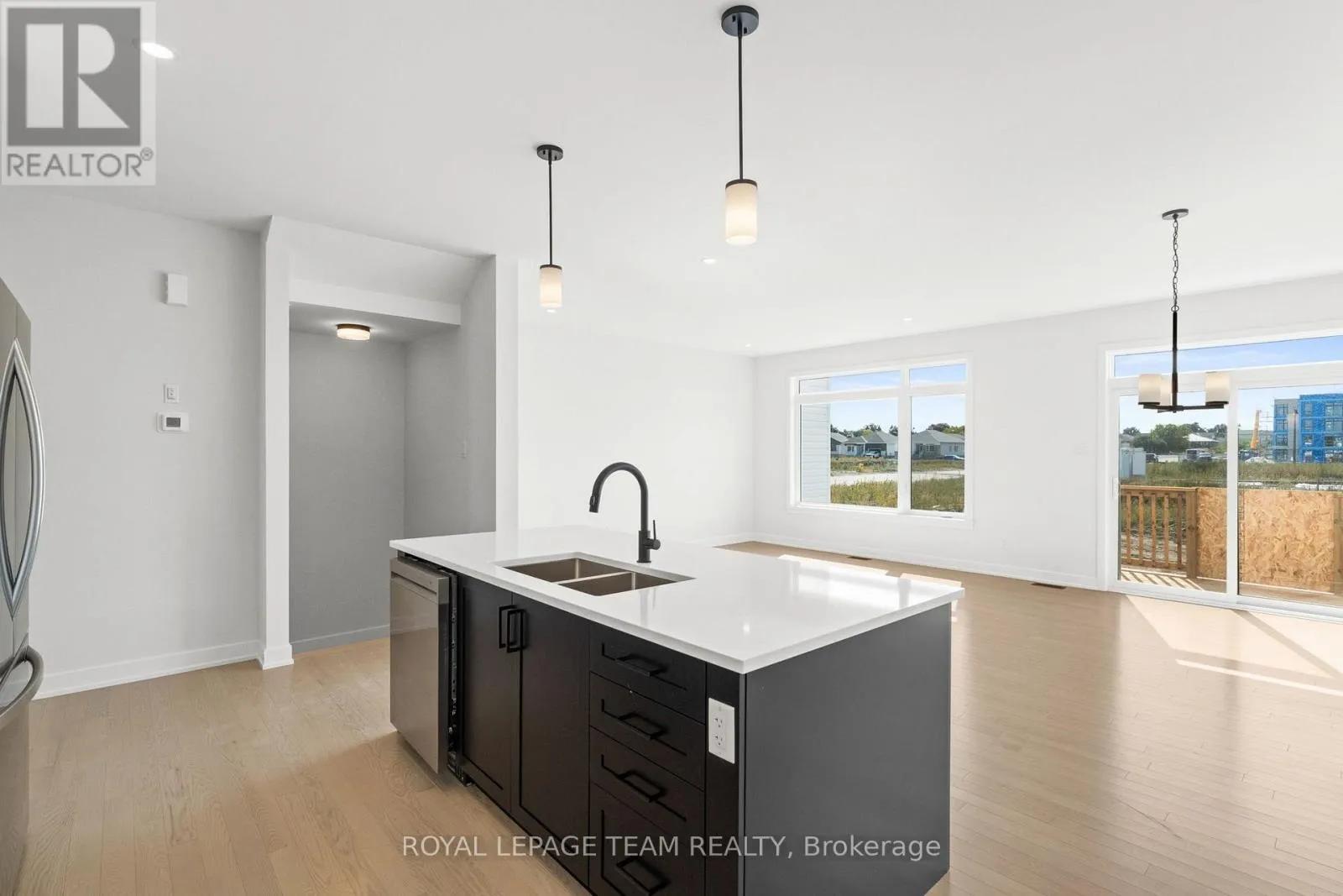 Cross Streets: Shearer Dr. ** Directions: From Shearer Drive, turn onto Dobbie Street. Turn onto Moore Street. Welcome to Stirling Meadows in Brockville. This newly built semi-detached home offers convenient access to Highway 401, as well as nearby shopping, dining, and recreational amenities. The Wellington Model by Mackie Homes provides approximately 2,125 square feet of thoughtfully designed living space, featuring four bedrooms, three bathrooms, and quality finishes throughout. The main level is bright and inviting, enhanced by recessed lighting and transom windows that fill the space with natural light. The kitchen combines style and function with crisp white cabinetry, a striking backsplash, stainless steel appliances, quartz countertops, and a contrasting black island that serves as a central gathering spot for casual meals. The adjoining dining and living areas open to a sun deck, ideal for outdoor enjoyment, while a powder room and interior access to the oversized single garage add convenience on the main floor. Upstairs, the primary bedroom offers a five-piece ensuite that includes a soaker tub, separate shower, and dual sinks. Three additional bedrooms, a full bathroom, and a dedicated laundry room complete the second level. (id:27476)