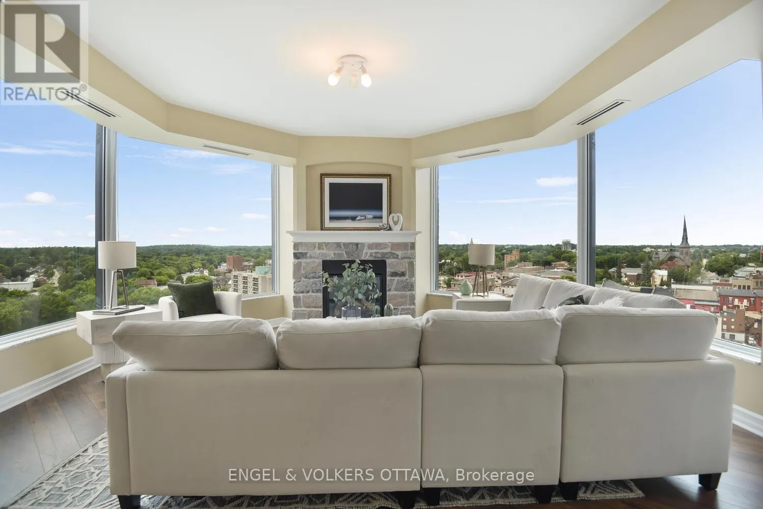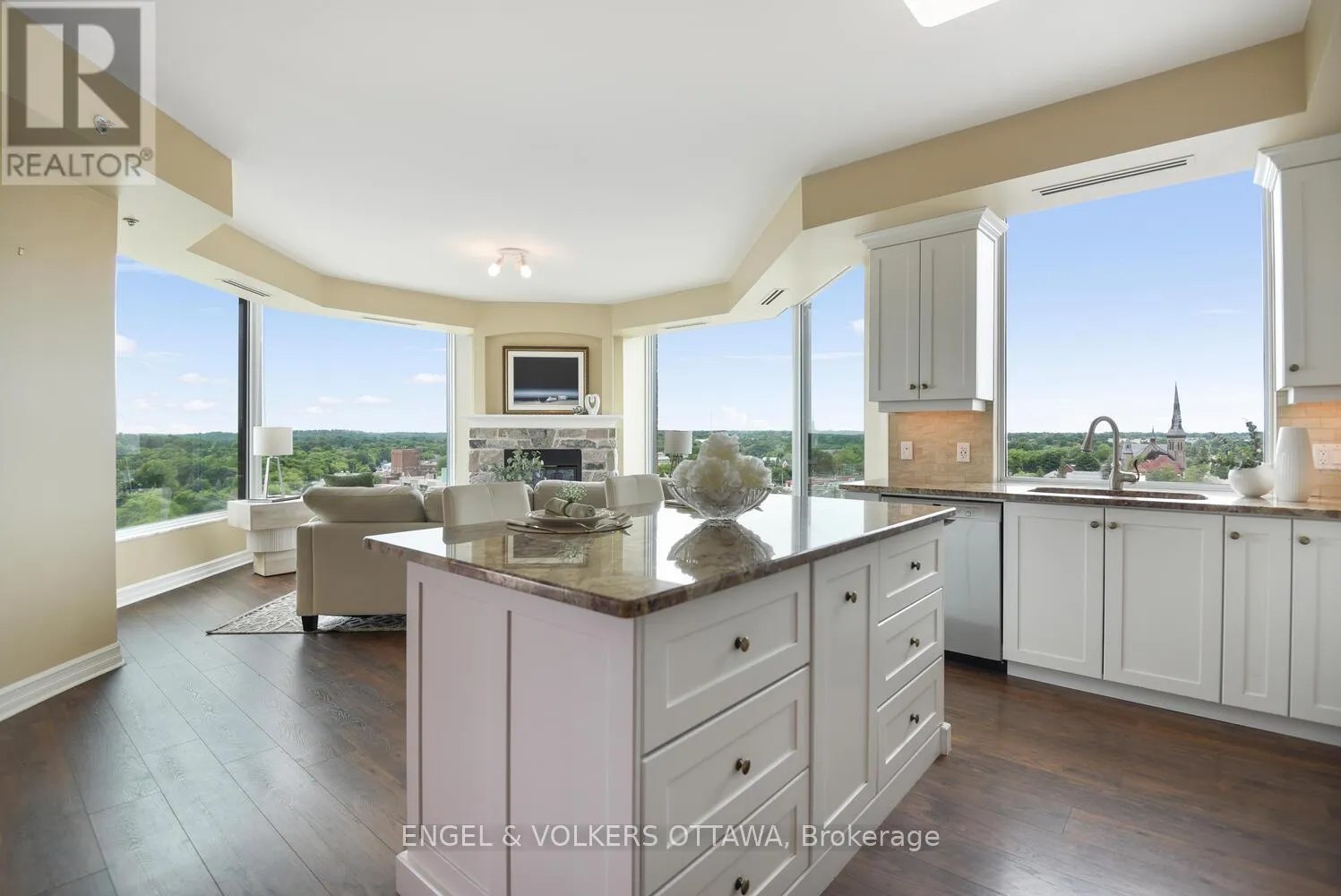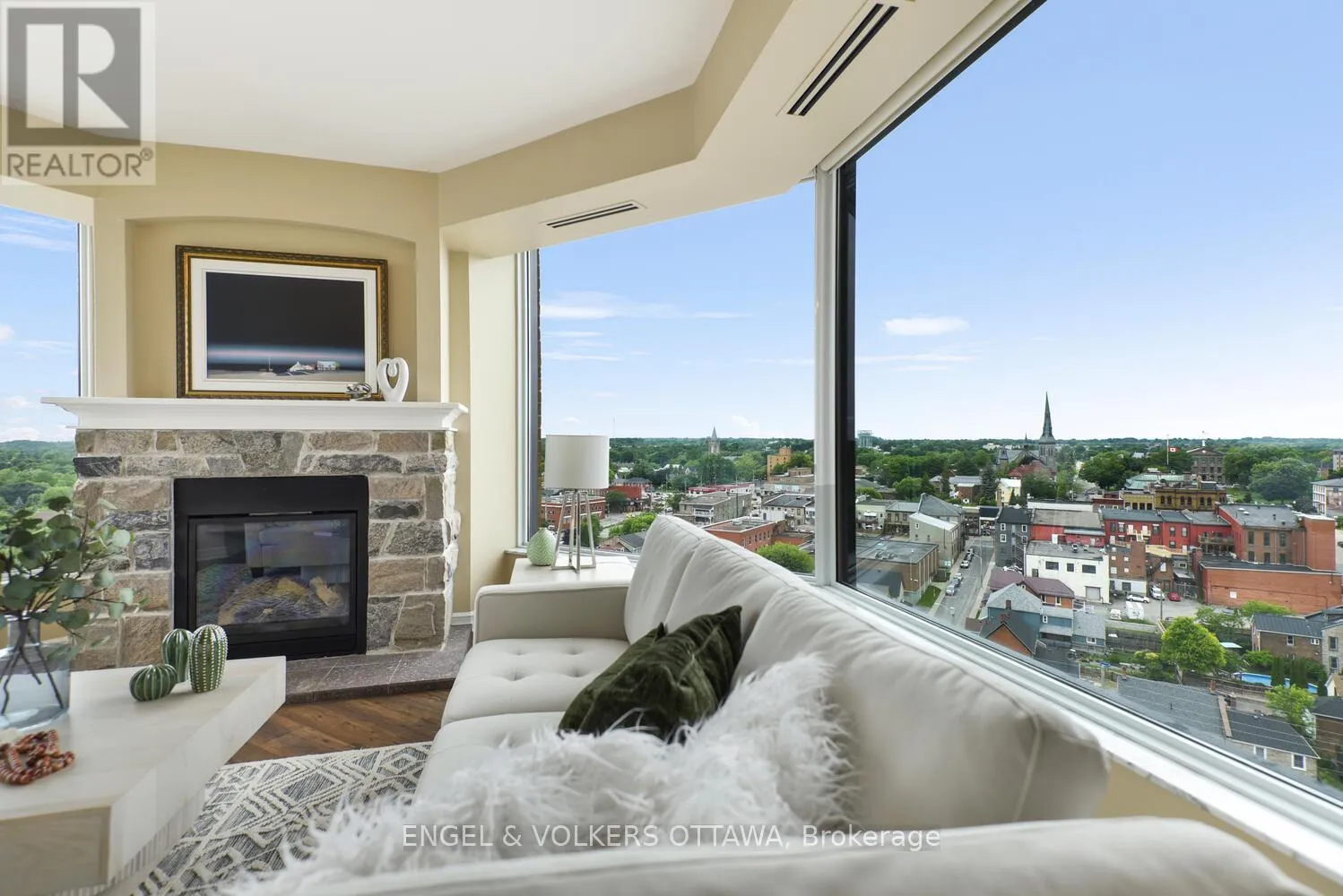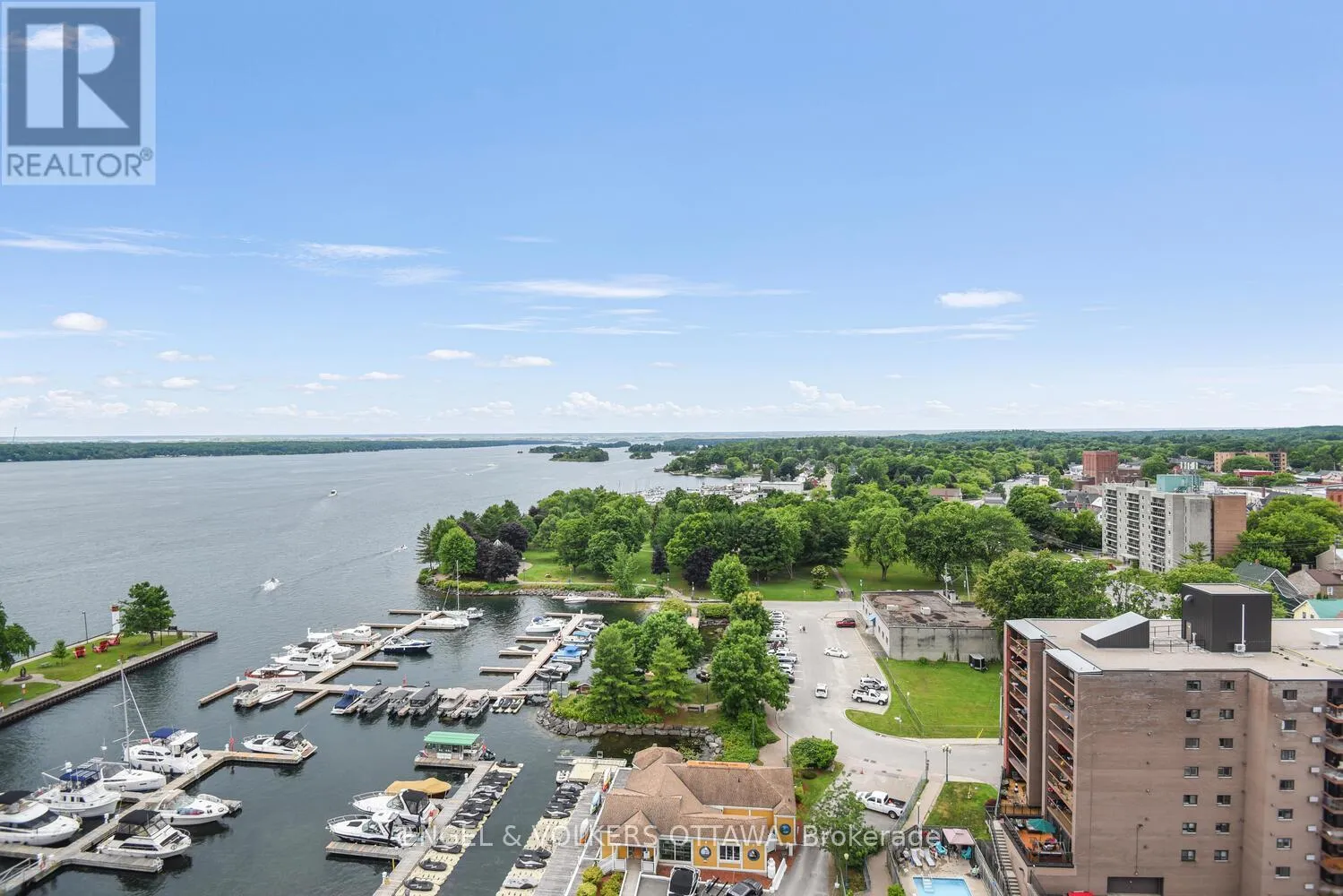 From Highway 401 take the Stewart Blvd exit and travel south on Stewart Blvd which becomes William which becomes Court House Blvd to King Street. Turn right on King St then left on St Andrew. Condo at end of St Andrew St. Rarely offered for sale this northwest facing Tops'l Suite offers outstanding views of the Brockville portion of the 1000 Islands as well as the Brockville skyline. You and your guests will never tire of the views which change seasonally. This suite offers a beautifully portioned great room style anchored by a gas fireplace. The tailored kitchen cabinetry is in classic white with granite countertops. The huge window over the sink lets you keep an eye on the comings and goings of the city below. The spacious primary suite accommodates a king size suite with adjacent 5 piece ensuite and huge walk in closet. The secondary bedroom on the opposite side of the condo provides total privacy for visiting family or guests or makes an excellent office. Wide plank hardwood flooring throughout adds to the sense of space ceramic flooring in the baths, of course. The building amenities are second to none .... huge indoor pool, indoor and outdoor hot tubs, nicely equipped gym, reception rooms, games room, catering kitchen. One indoor parking space is equipped with an EV charger. A must see!!! (id:27476)