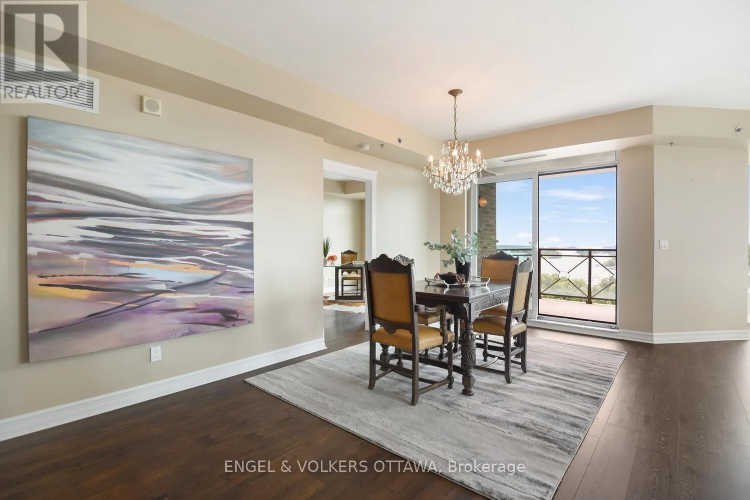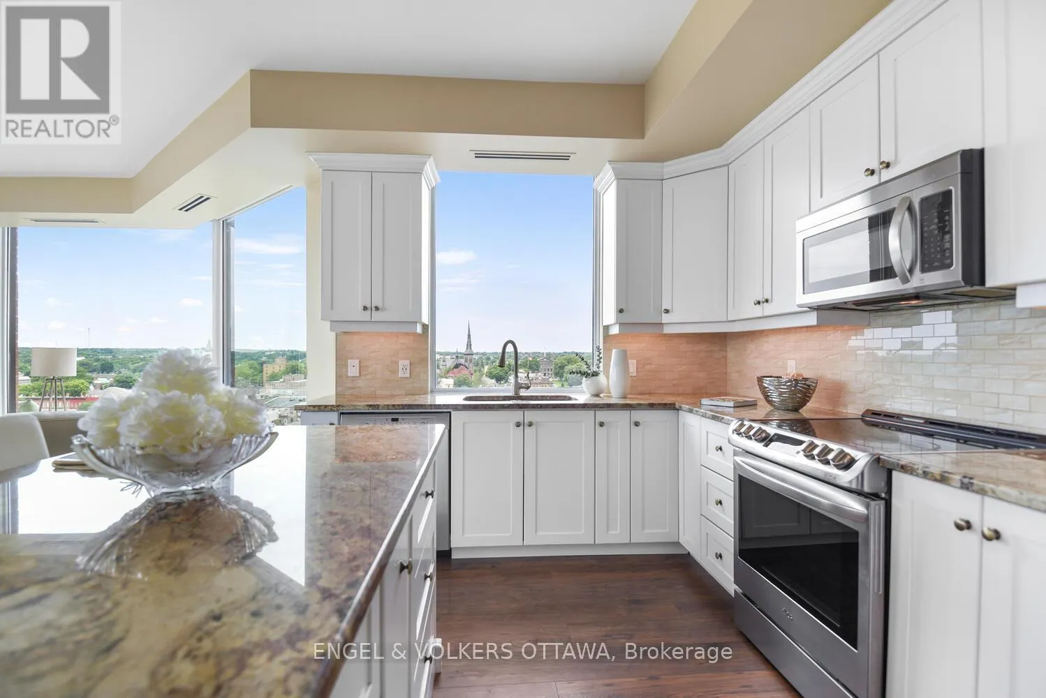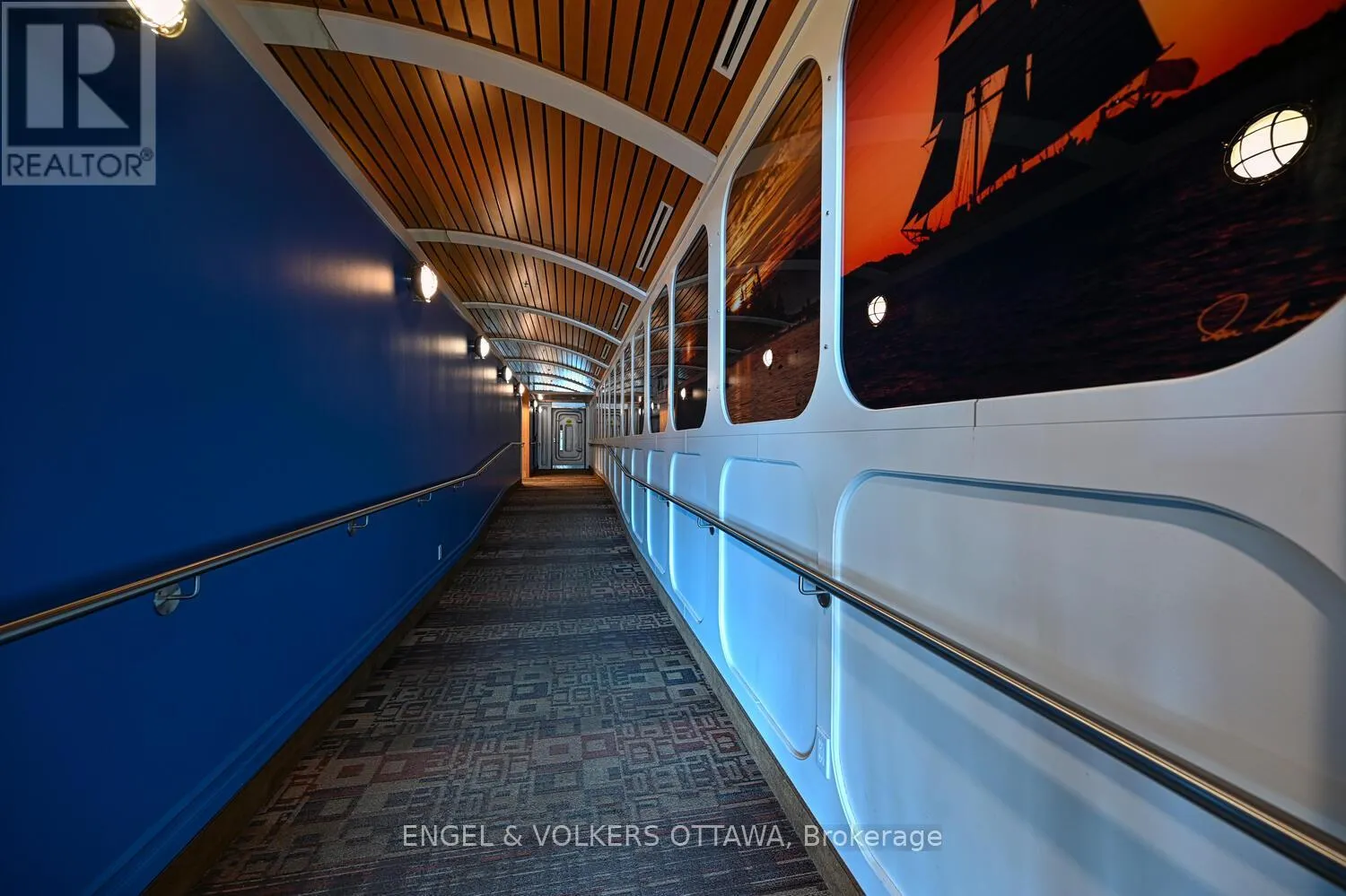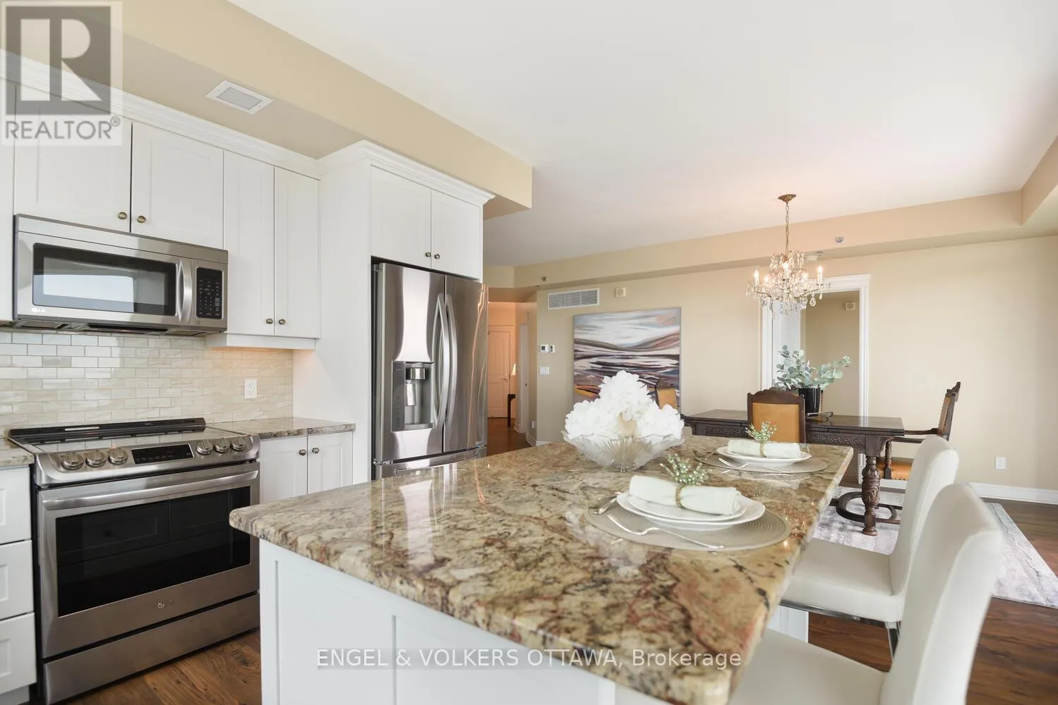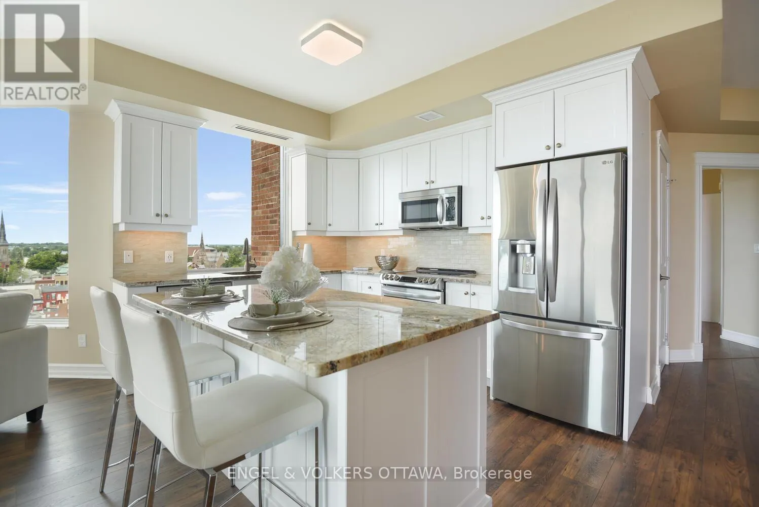 From Highway 401 take the Stewart Blvd exit and travel south on Stewart Blvd which becomes William which becomes Court House Blvd to King Street. Turn right on King St then left on St Andrew. Condo at end of St Andrew St. Rarely offered for sale this northwest facing Tops'l Suite offers outstanding views of the Brockville portion of the 1000 Islands as well as the Brockville skyline. You and your guests will never tire of the views which change seasonally. This suite offers a beautifully portioned great room style anchored by a gas fireplace. The tailored kitchen cabinetry is in classic white with granite countertops. The huge window over the sink lets you keep an eye on the comings and goings of the city below. The spacious primary suite accommodates a king size suite with adjacent 5 piece ensuite and huge walk in closet. The secondary bedroom on the opposite side of the condo provides total privacy for visiting family or guests or makes an excellent office. Wide plank hardwood flooring throughout adds to the sense of space ceramic flooring in the baths, of course. The building amenities are second to none .... huge indoor pool, indoor and outdoor hot tubs, nicely equipped gym, reception rooms, games room, catering kitchen. One indoor parking space is equipped with an EV charger. A must see!!! (id:27476)